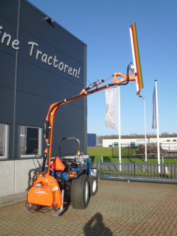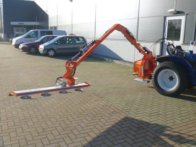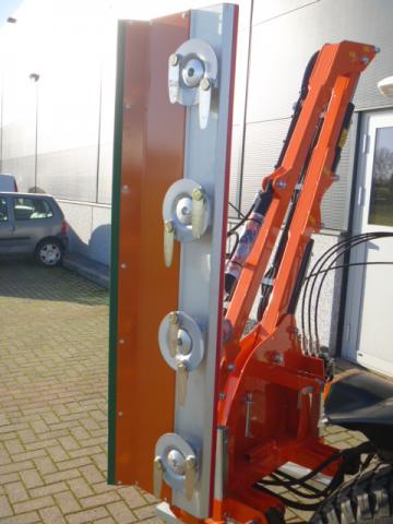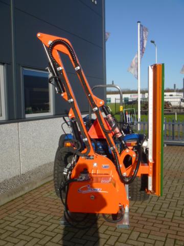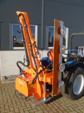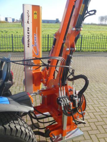 Nieuwe en ongebruikte Cochet Viper maaiarm met Slagmessenunit! Werkbreedte 160cm. Ideale machine voor het knippen (scheren) van de heg, houtwal, taluds, slootkanten, etc. De slagmessenunit kan takken verwerken tot zo’n 35mm! Maximale hoogte ruim 5 meter! Maximaal 350cm zijwaarts. Het unieke aan deze machine is dat ook de (kleinere) heggen en hagen vanaf een zijde aan twee kanten te knippen is! Ideaal als er bijvoorbeeld maar aan een kant langs de heg gereden kan worden. Compleet eigen hydraulische aandrijfunit waardoor de trekker niet behoeft te beschikken over externe hydraulische aansluitingen. Alleen de aftakasaansluiting is voldoende om de machine geheel te kunnen bedienen. Machine wordt geleverd compleet met bedieningspaneel. Machine is door zijn lage eigengewicht al toepasbaar achter tractoren van zo’n 30-70 Pk! Dit is met recht uniek te noemen.