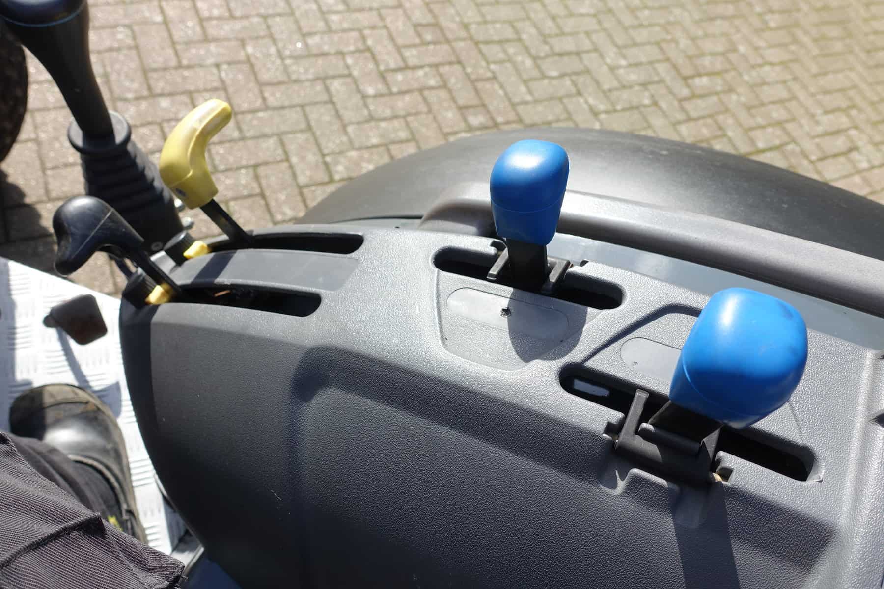 Veiligheidsbeugel. Voorzien van extra brede gazonwielen.