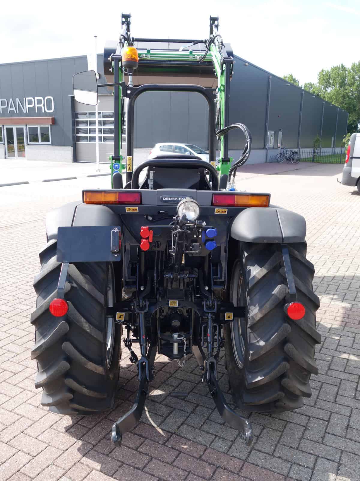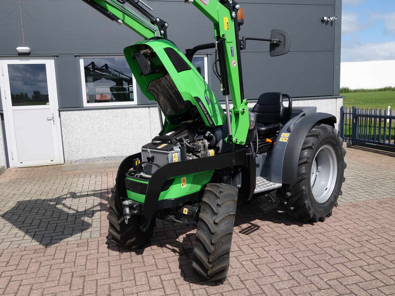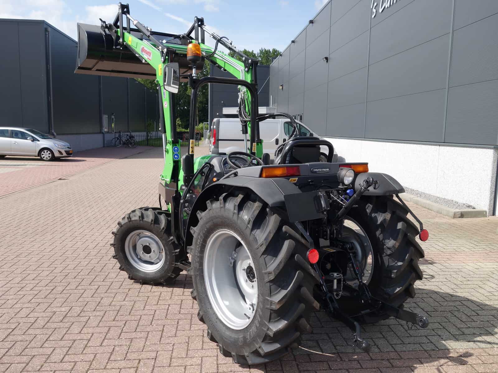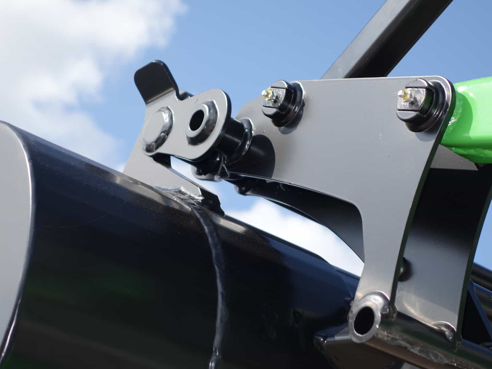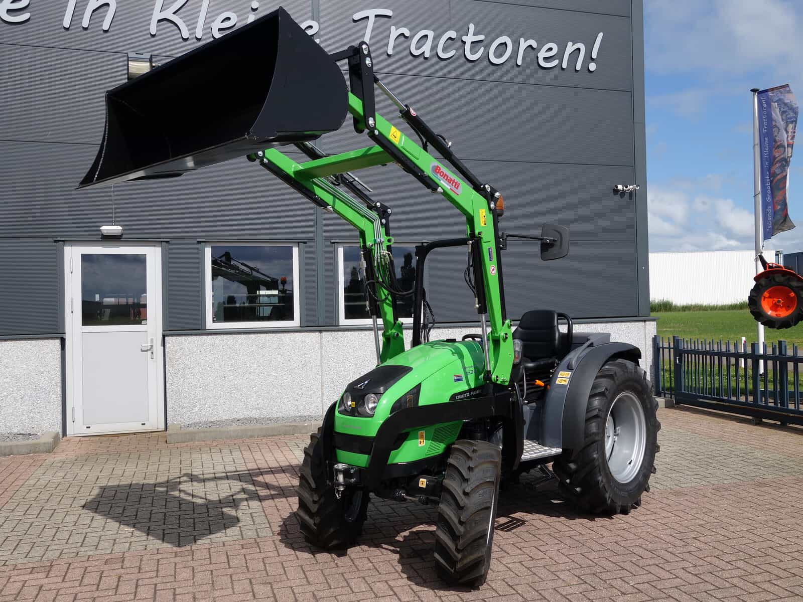 En dan hebben we natuurlijk nog de nieuwe Bonatti voorlader. Ook weer in de meest luxe uitvoering, te weten; Dubbelwerkend systeem (zowel hefkracht als duwkracht), Parallelgeleiding (de bak gaat in dezelfde stand mee omhoog), Snelwisselsysteem op de aanbouwwerktuigen (met een handle zijn de aanbouwdelen eenvoudig te verwisselen), Snelwisselsysteem op de gehele voorlader (de voorlader kan in zijn geheel eenvoudig afgekoppeld worden).