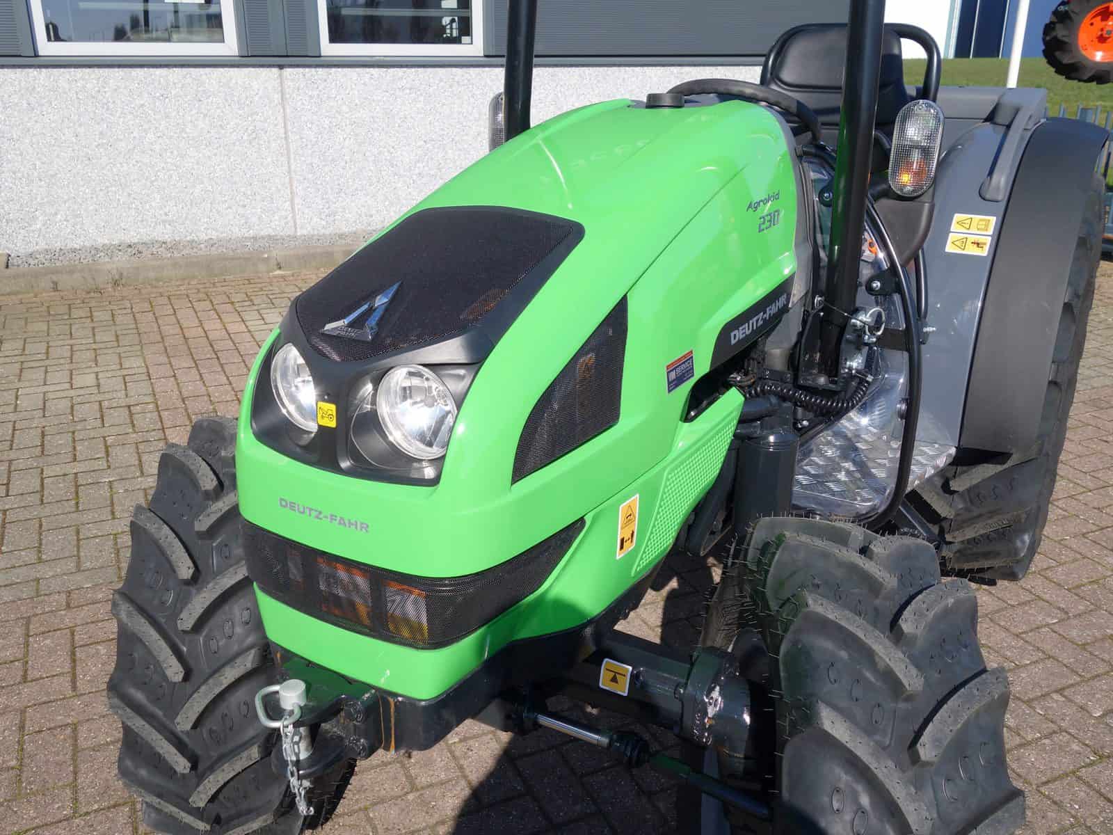 Nieuw, ongebruikt, volledige fabrieksgarantie, een goede investering om nog dit jaar de belastingdruk wat te verlagen. Meest complete uitvoering; Agrokid 230 (zwaarste uitvoering in deze serie) Ruim 50 Pk sterke 4 cilinder dieselmotor. Uitgerust met de 540-1000 toeren aftakas. Omkeerschakeling onder het stuur (vooruit, achteruit schakelen met een handle) 12 versnellingen vooruit en 12 versnellingen achteruit. (drie groepen van vier)! Twee dubbelwerkende externe hydraulische ventielen (vier aansluitingen). Ondertrekhaak, Aftakas, Topstang, Werklamp, 7 polige aanhangwagenverlichtingsstekker, volledige wegverlichting. Fronttrekhaak. Veiligheidsbeugel, Voorspatborden. Voorzien van brede akkerbanden. Geen transportschade of manco’s gewoon een splinternieuwe trekker tegen een scherpe prijs.