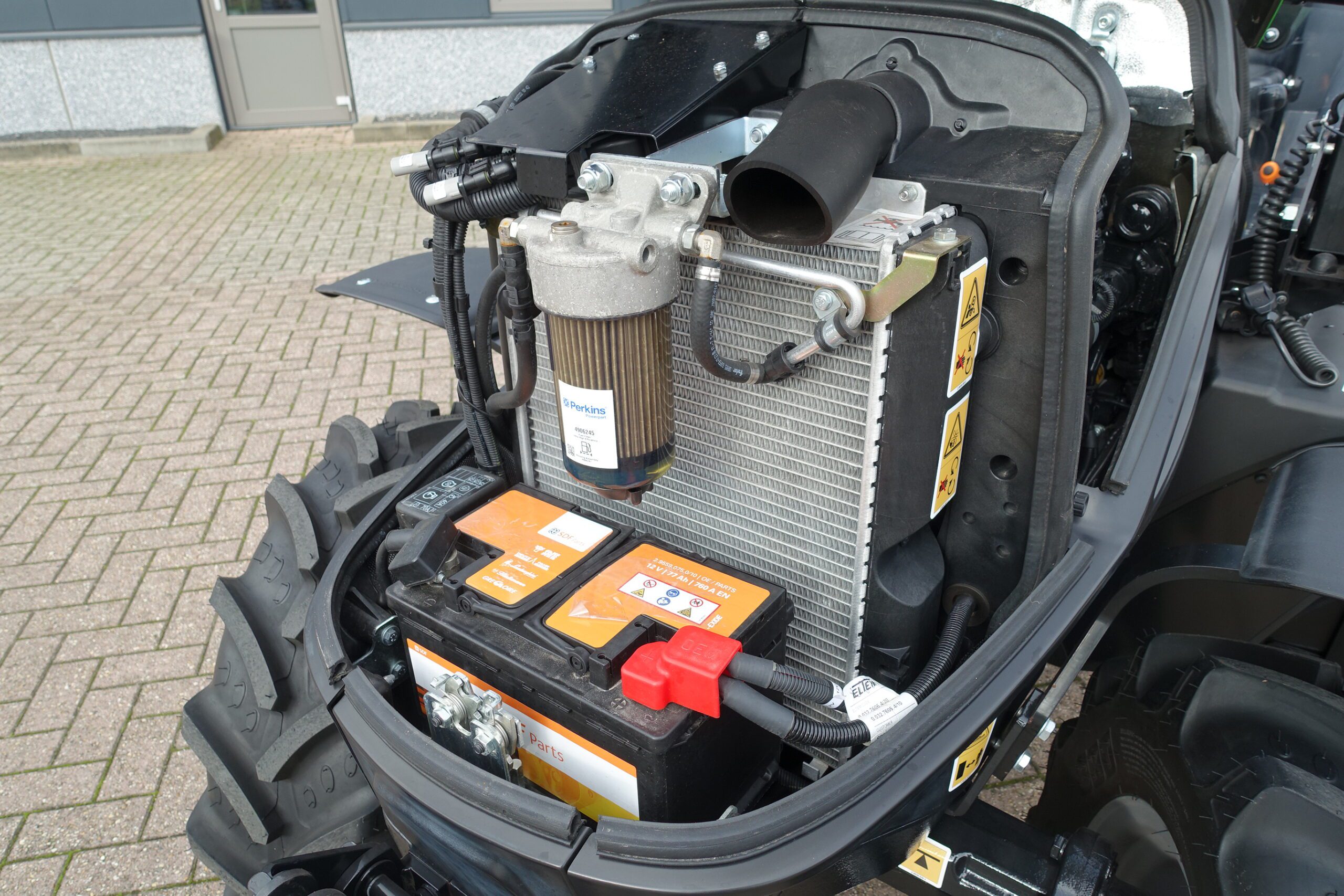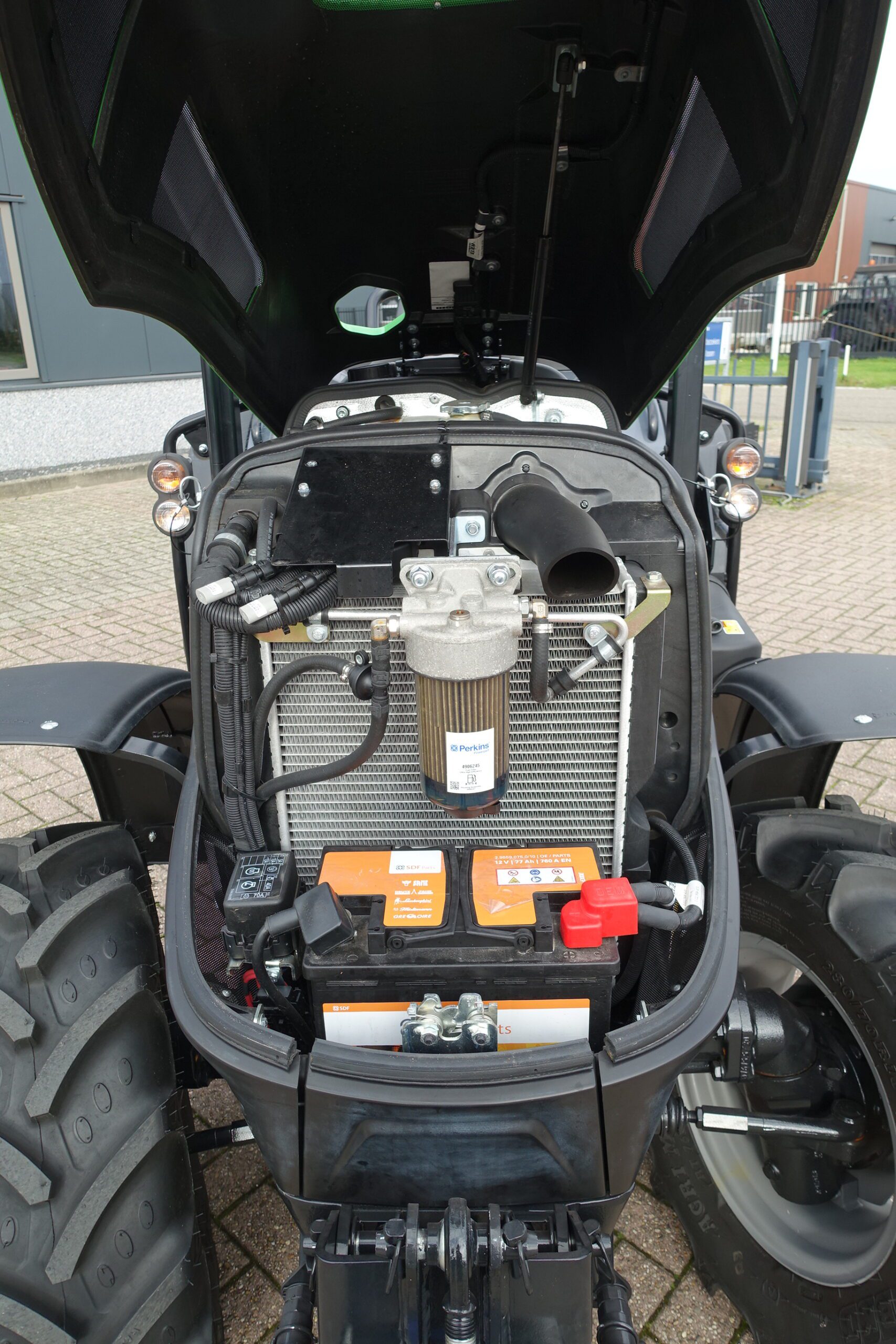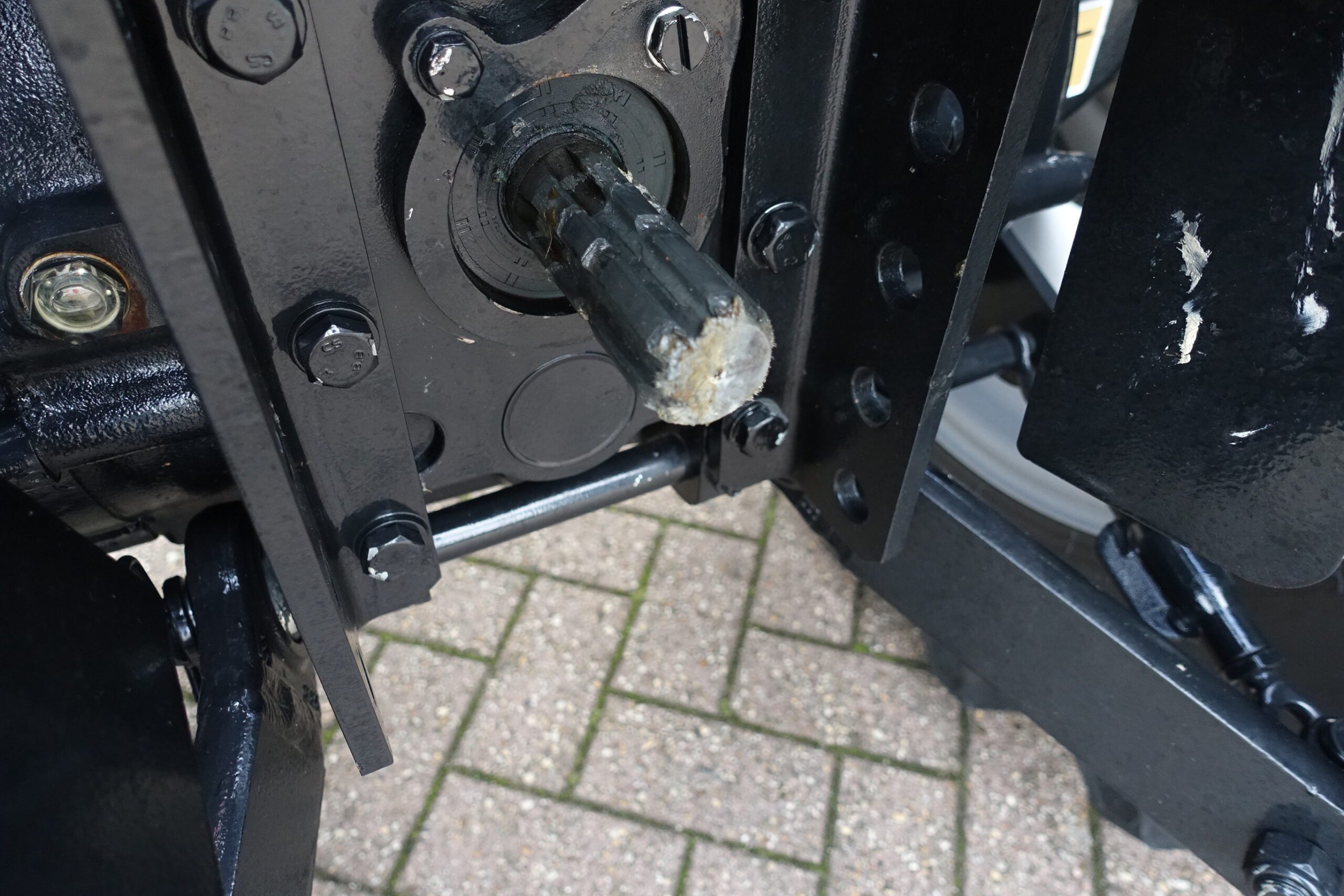 En dan hebben we natuurlijk nog de Hydraulische Fronthef + Frontaftakas. Ook weer in de meest luxe uitvoering, zware hefarmen en dubbelwerkende externe hydraulische functie.