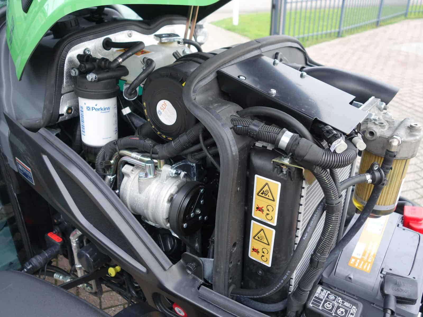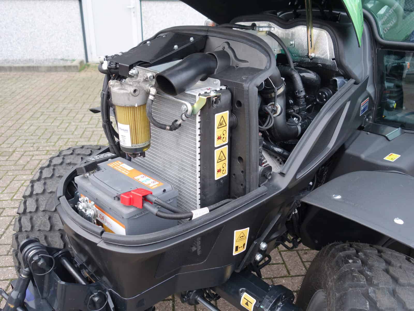 Met de krachtige 4cilinder dieselmotor van 50 Pk prima geschikt voor het zwaardere werk. Uitgerust met extra brede brede gazonwielen.