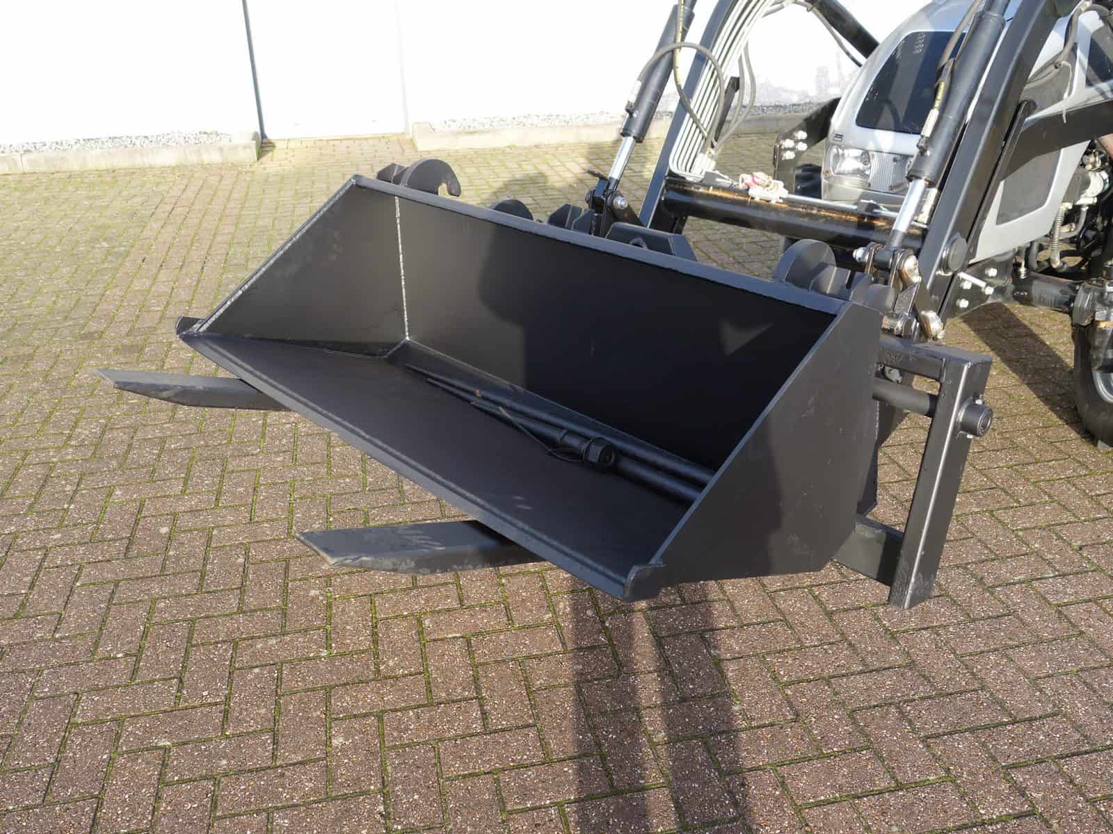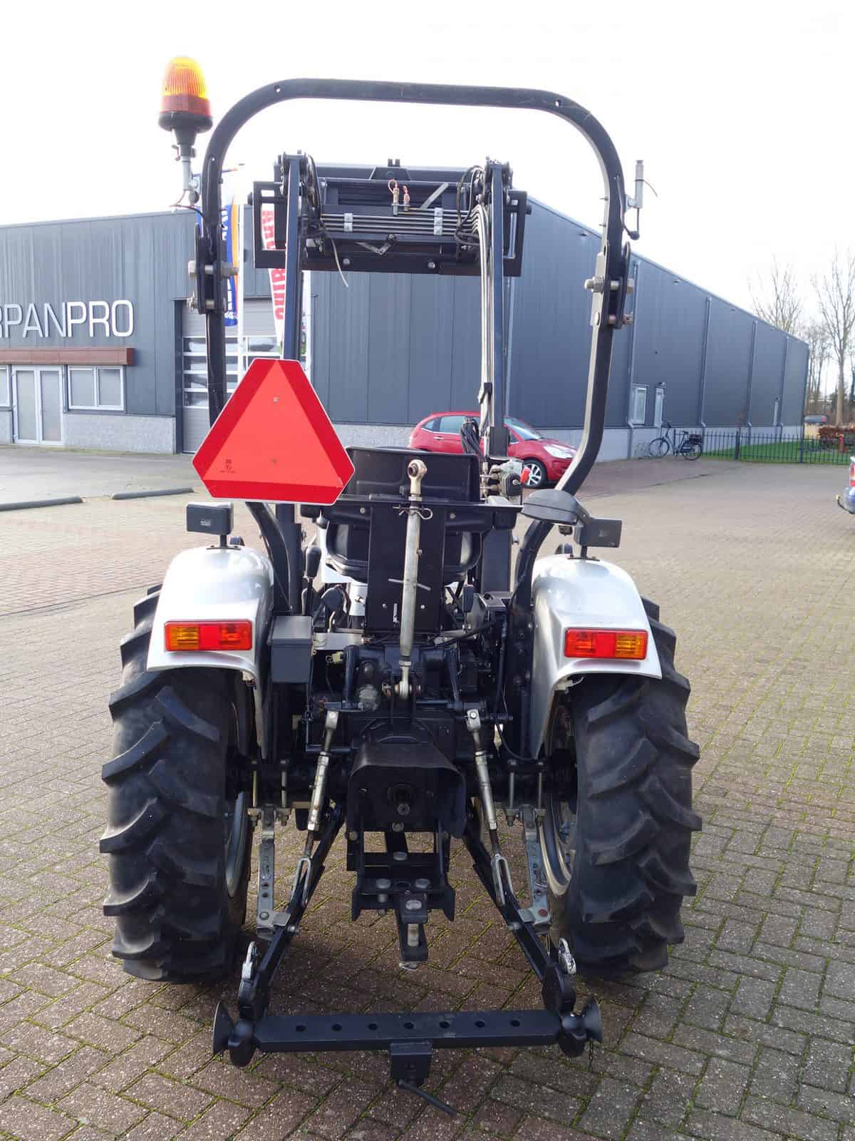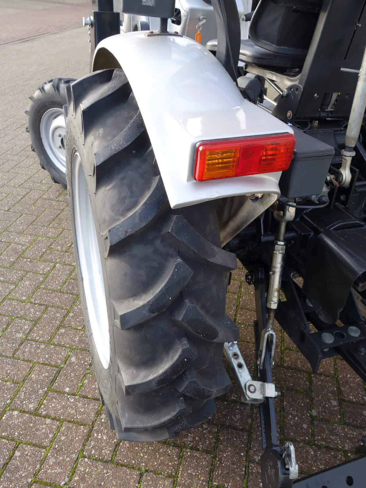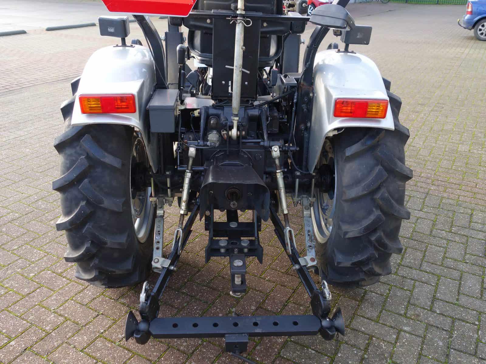 Degelijk gebouwde compacttrekker met een hoog hefvermogen aan de achterzijde.