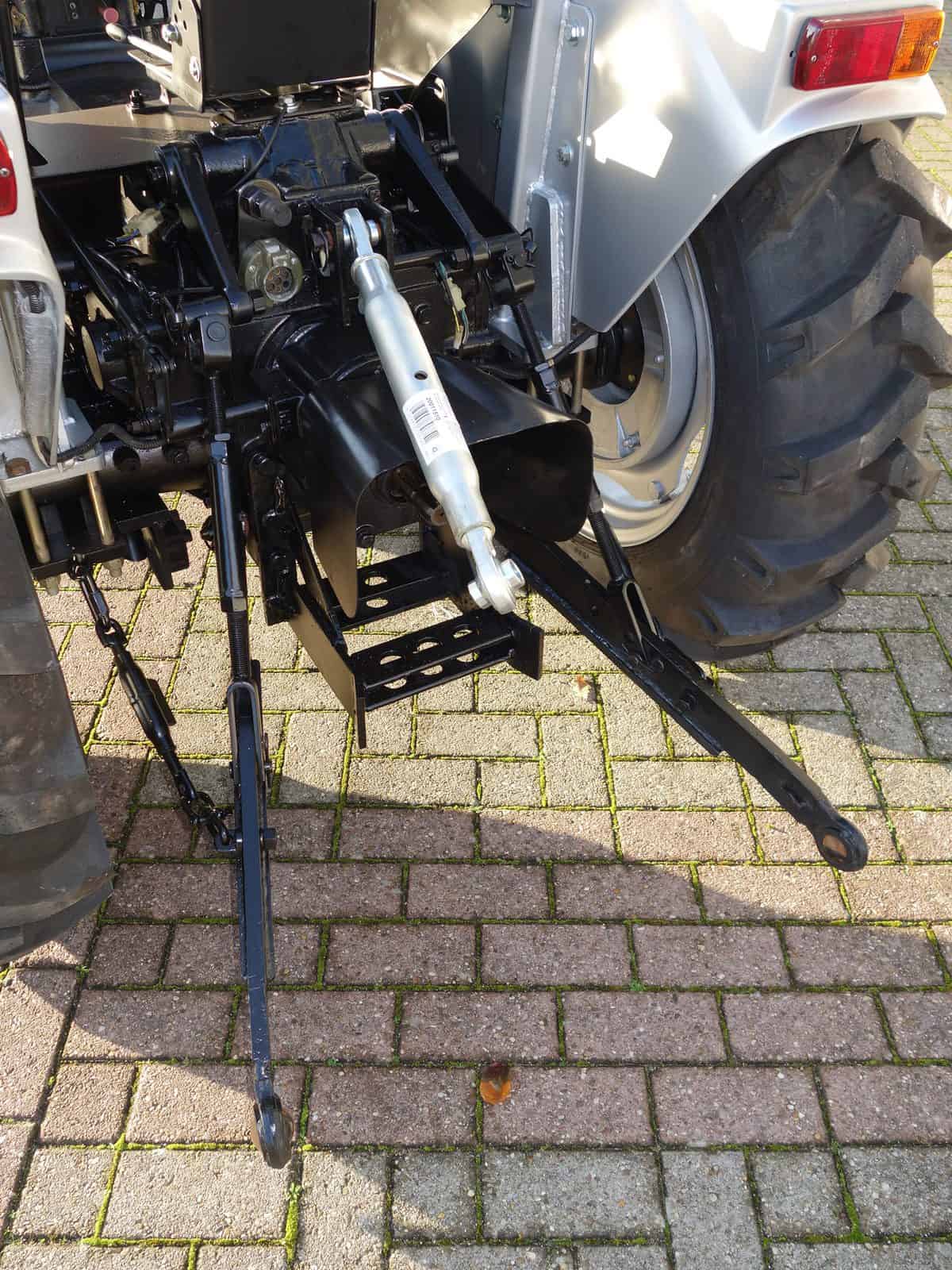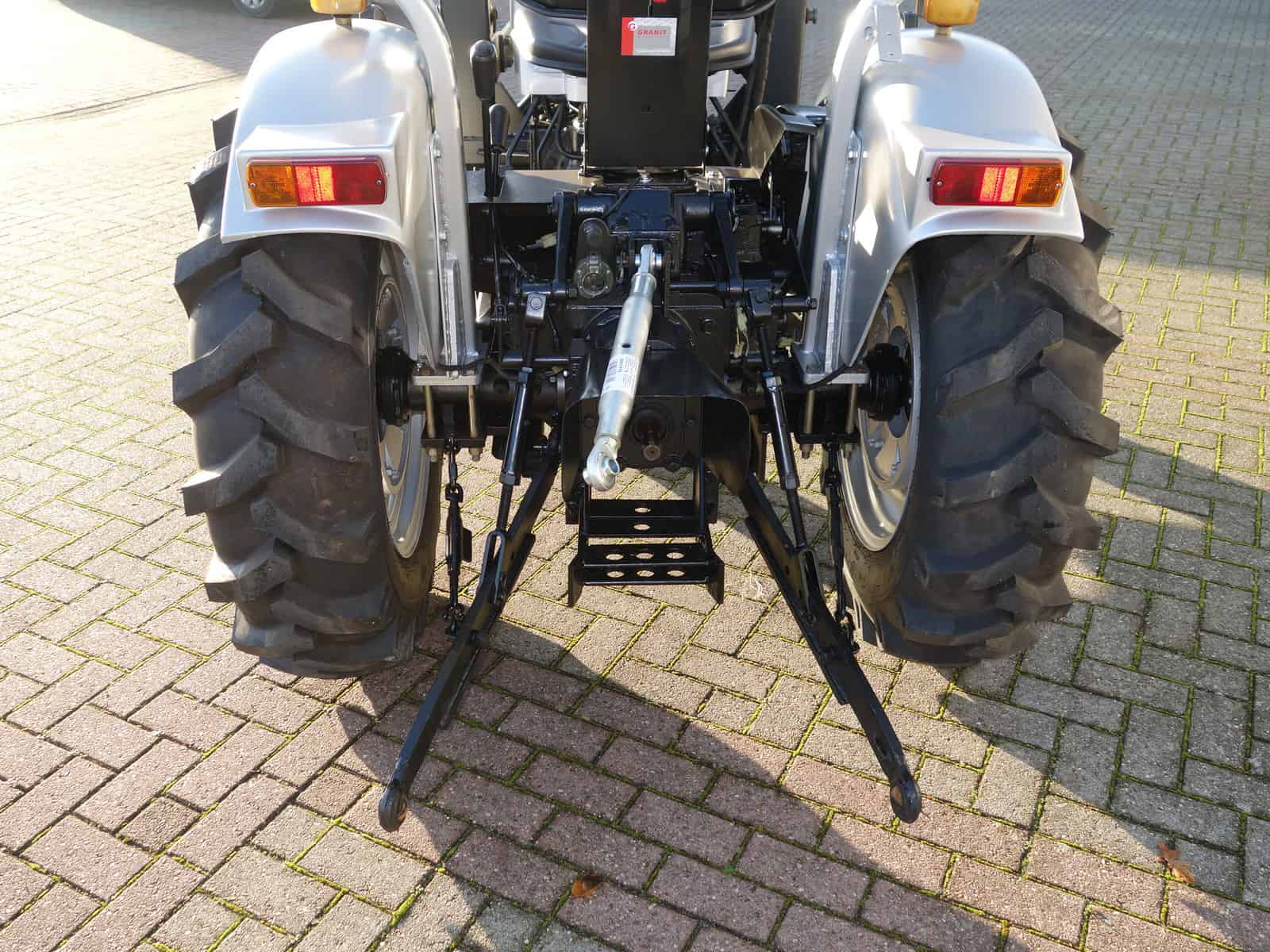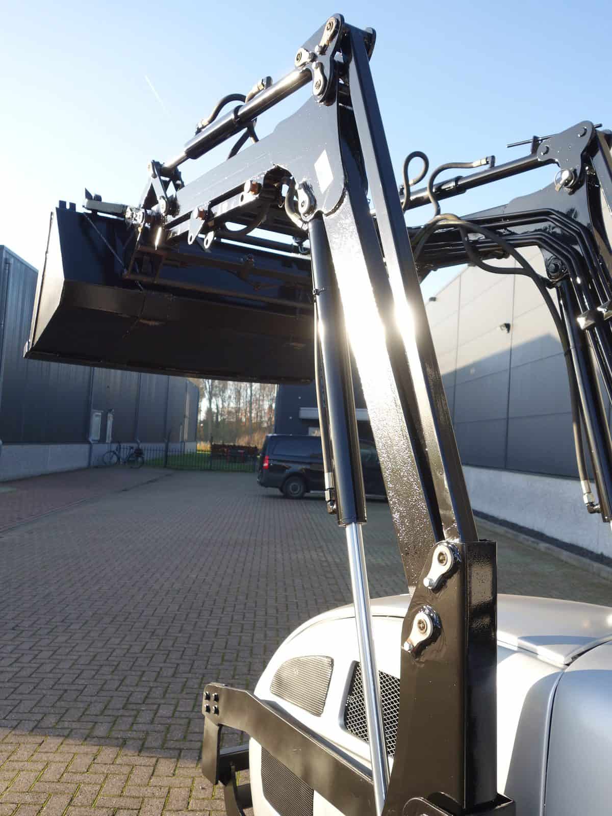 Degelijk gebouwde compacttrekker met een hoog hefvermogen aan de achterzijde.