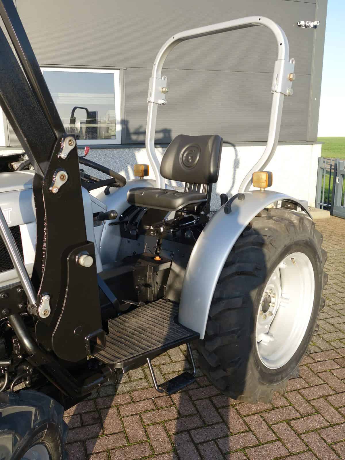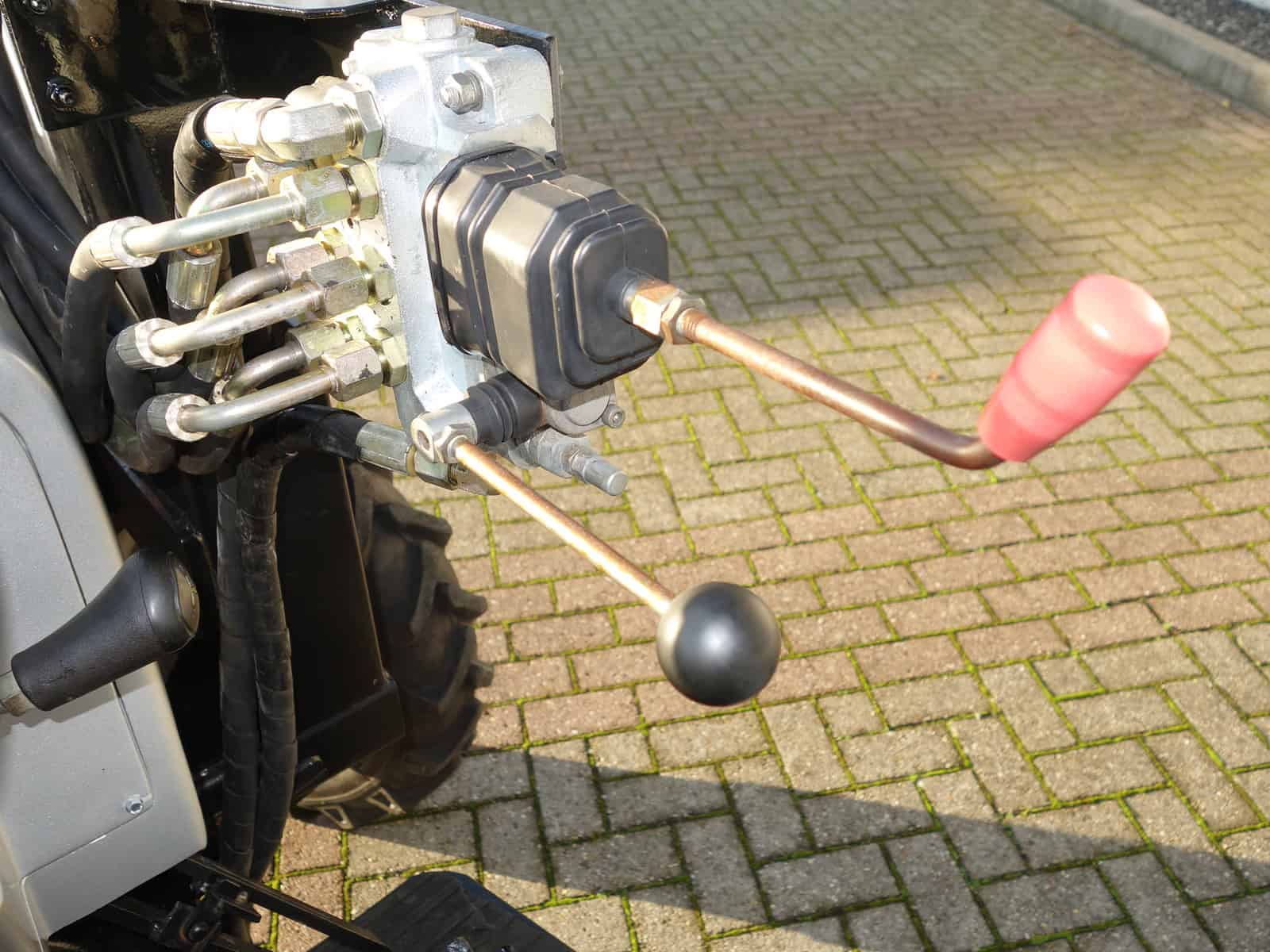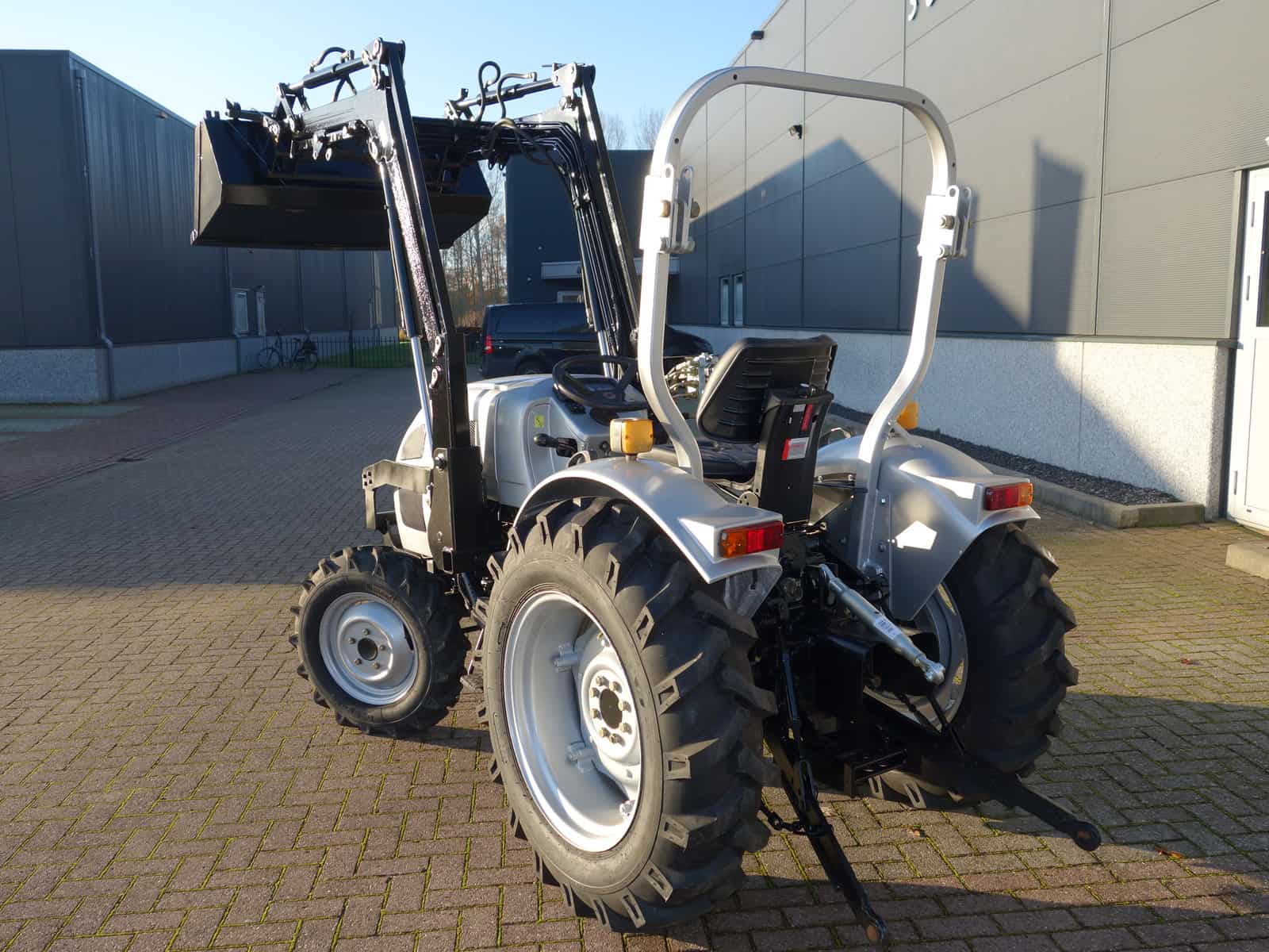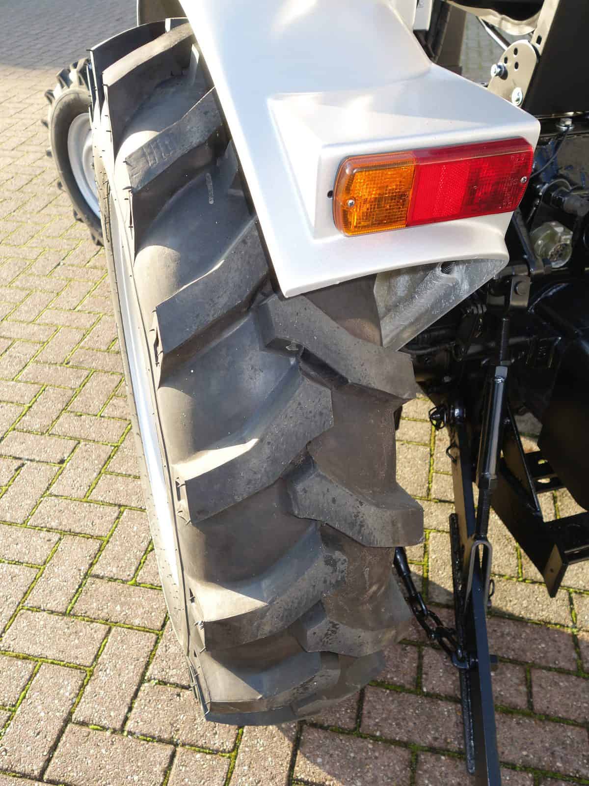 Degelijk gebouwde compacttrekker met een hoog hefvermogen aan de achterzijde.