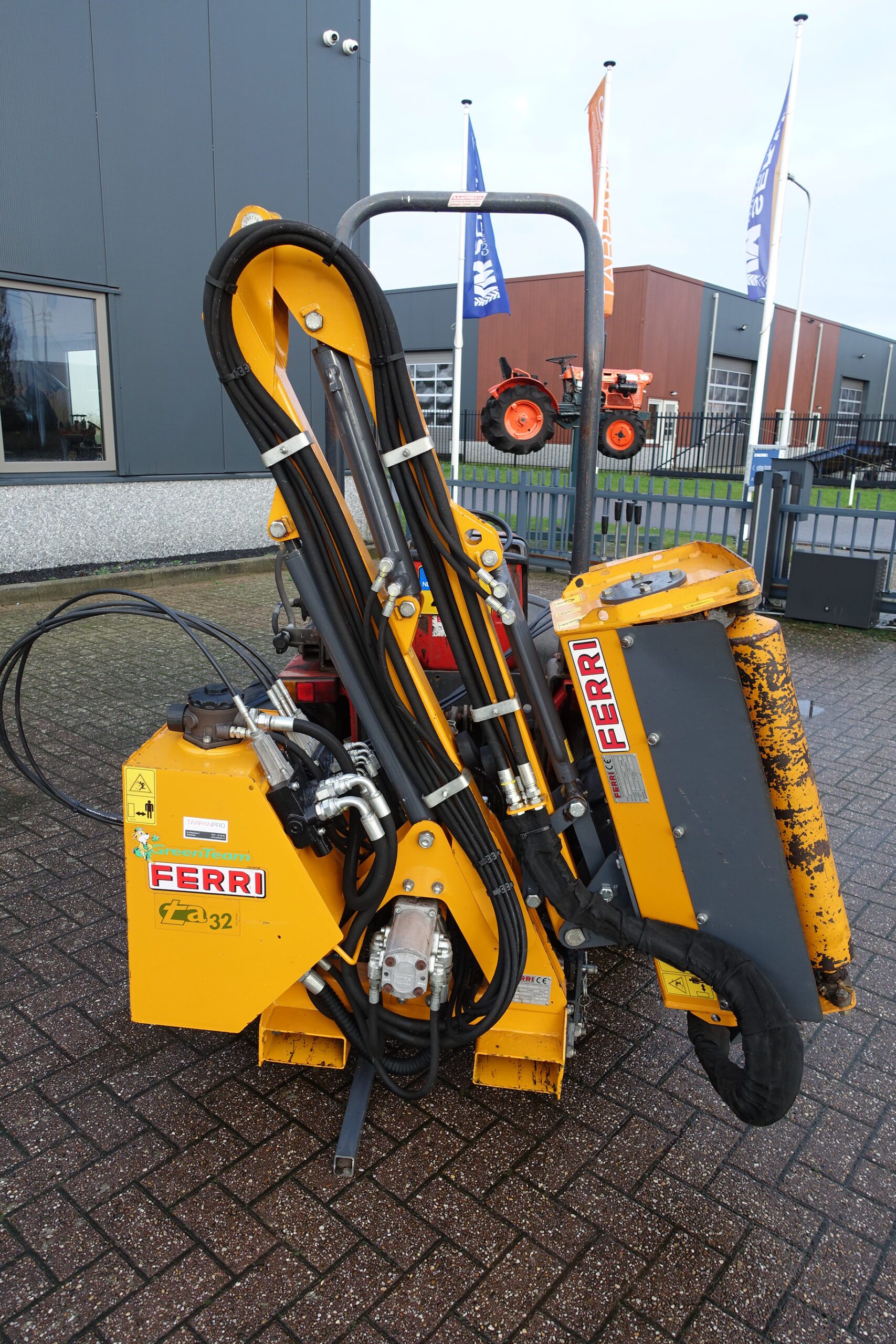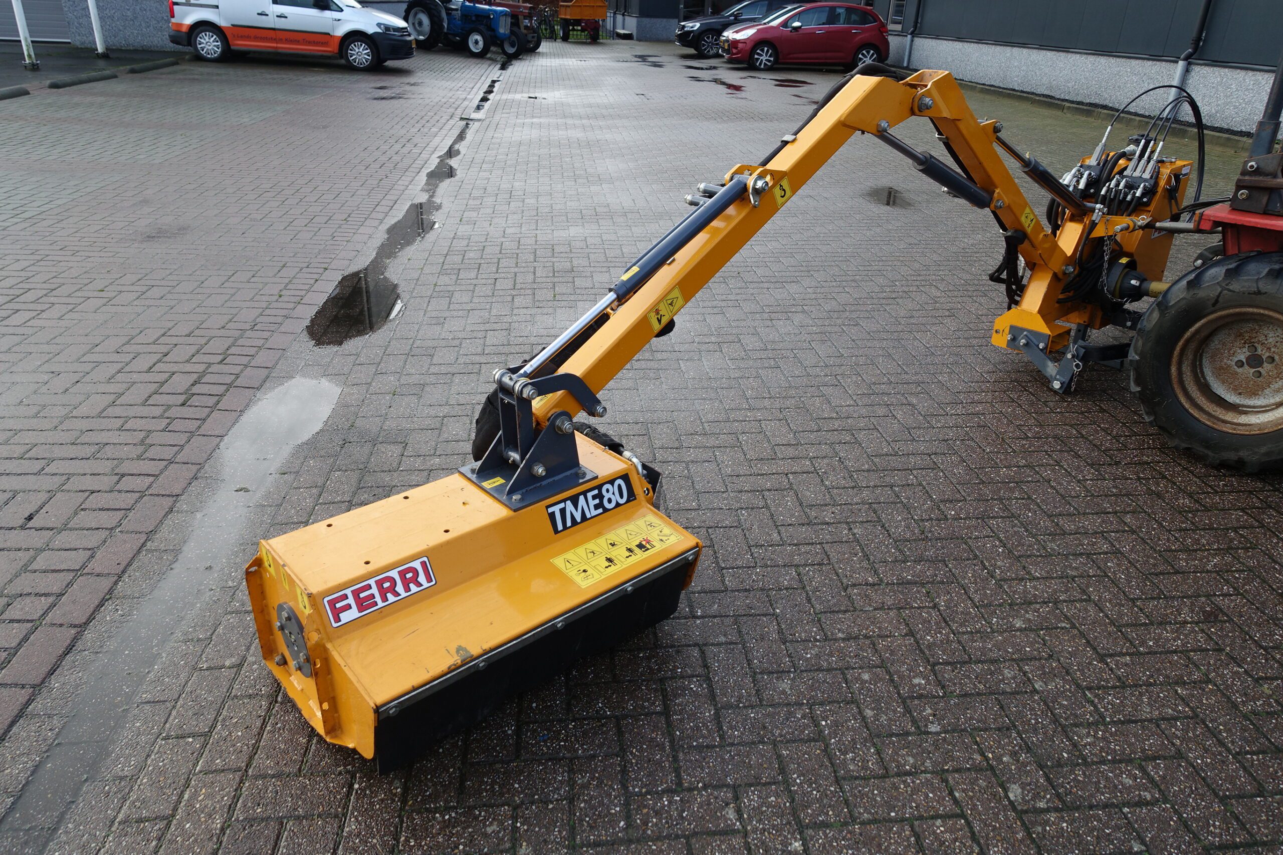 De Ferri TA32 (reikwijdte 320cm) compleet met TME80 klepelbak (werkbreedte 80cm) blinkt uit in o.a. afwerkingsniveau, compactheid, doordachtheid en niet te vergeten de soepele werking van de machine. 80cm klepelbak, kantelbaar over 190 graden! Hierdoor geschikt voor nagenoeg ieder talud, slootkant, heg en wal. Middels de floatfunctie volgt de maaikop de ondergrond moeiteloos. Aanrijbeveiliging middels de instelbare kantelinrichting. Eigen hydraulisch systeem met een inhoud van maar liefst 60 Liter! Door gebruik te maken van hoogwaardige staalkwaliteit is het eigen gewicht van de machine slechts 330 Kg. Hierdoor bij uitstek geschikt om toe te passen achter de compacttractoren. Compleet met bedieningsconsole.