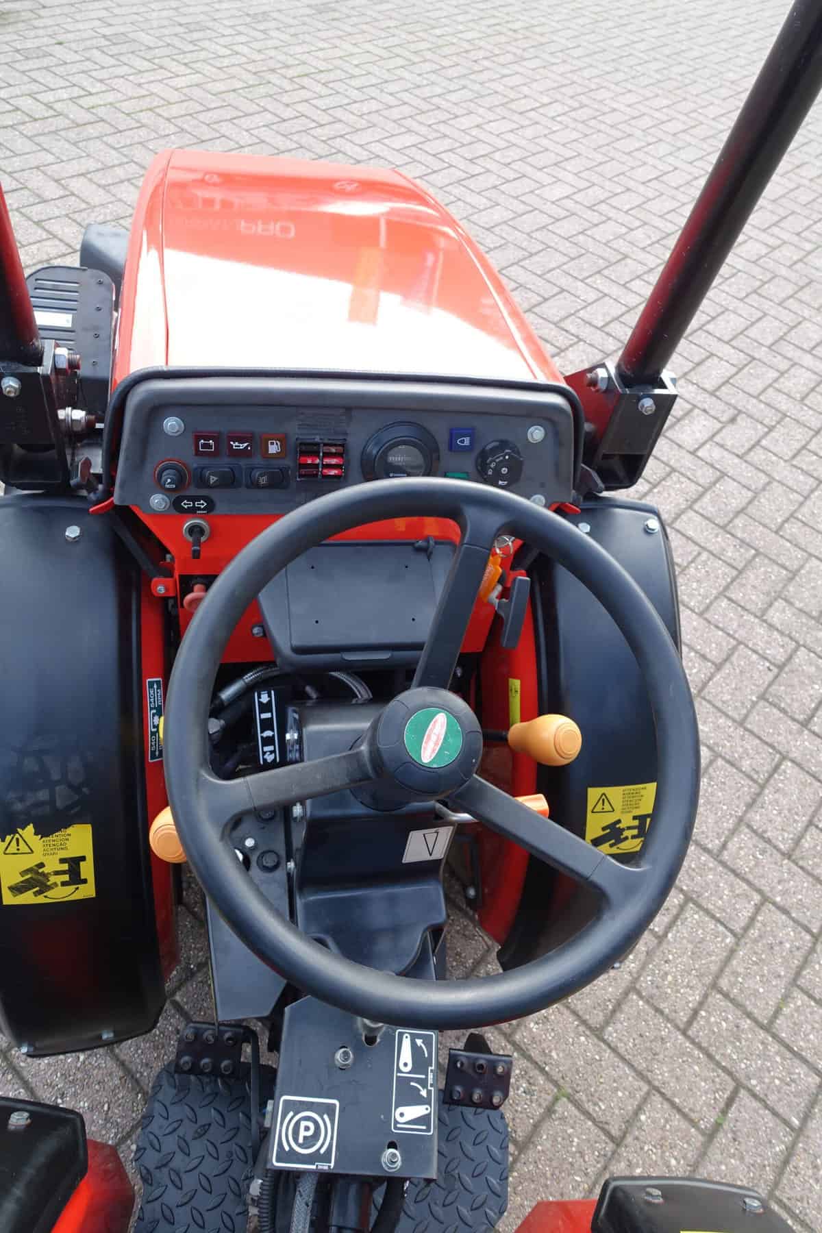 Met de simpele uitvoering van bestuurhendels, is het heel gemakkelijk om de tractor te besturen en te bedienen.Met zijn knikfunctie heeft hij een draaicirkel van amper 1,2m waardoor de tractor heel vlot bediend kan worden in een heel kleine ruimte.