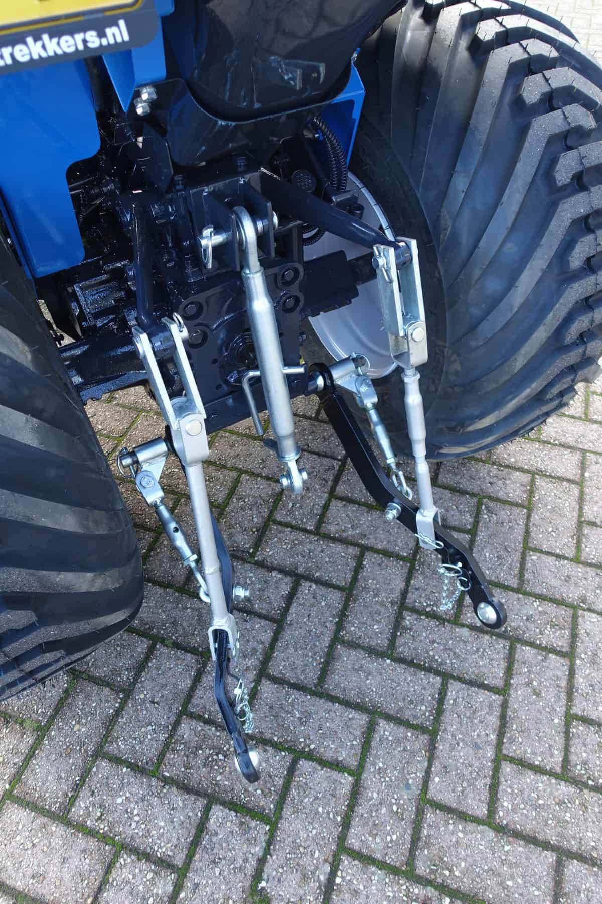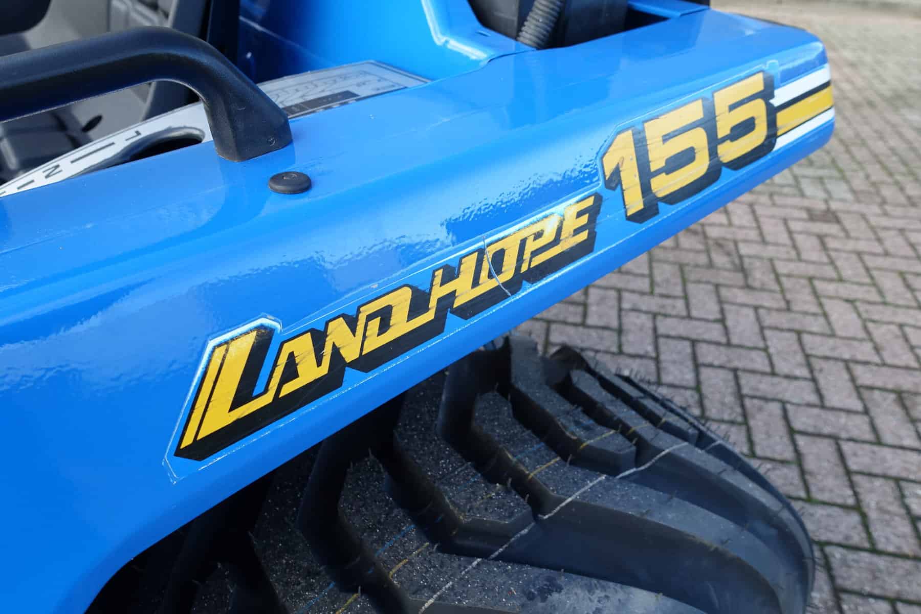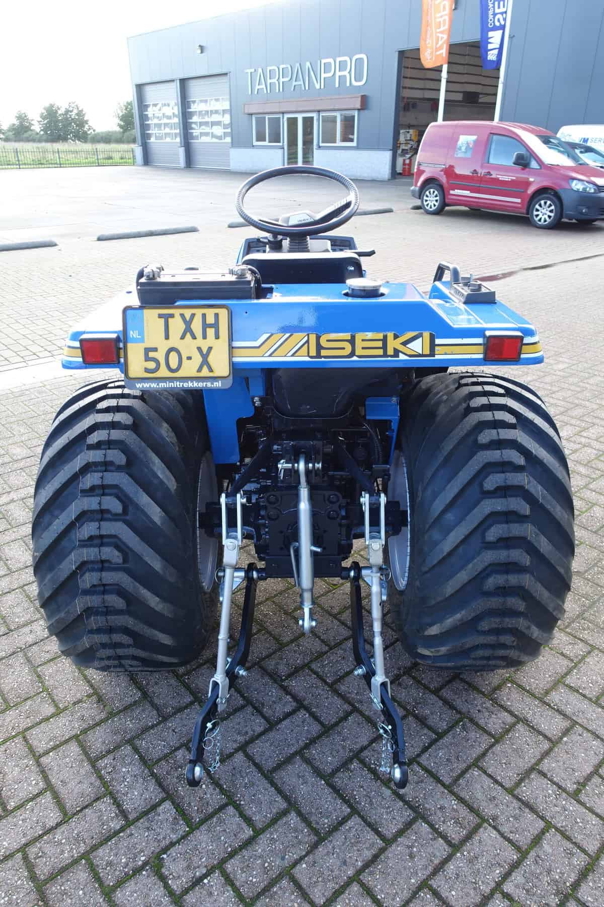 Aan de achterzijde voorzien van nieuwe velgen en nieuwe tractiebanden, mooie afgeronde nok waardoor een afgeronde band ontstaat, hierdoor snijdt de band minimaal in de ondergrond zodat je nauwelijks ziet waar je hebt gereden. Door de open nokken behoudt deze band toch de goede tractie. Door de breedte van de band wordt de druk goed verdeeld en is er nauwelijks insporing. Een ideale combinatieband dus, weinig insporing en toch goede tractie!
