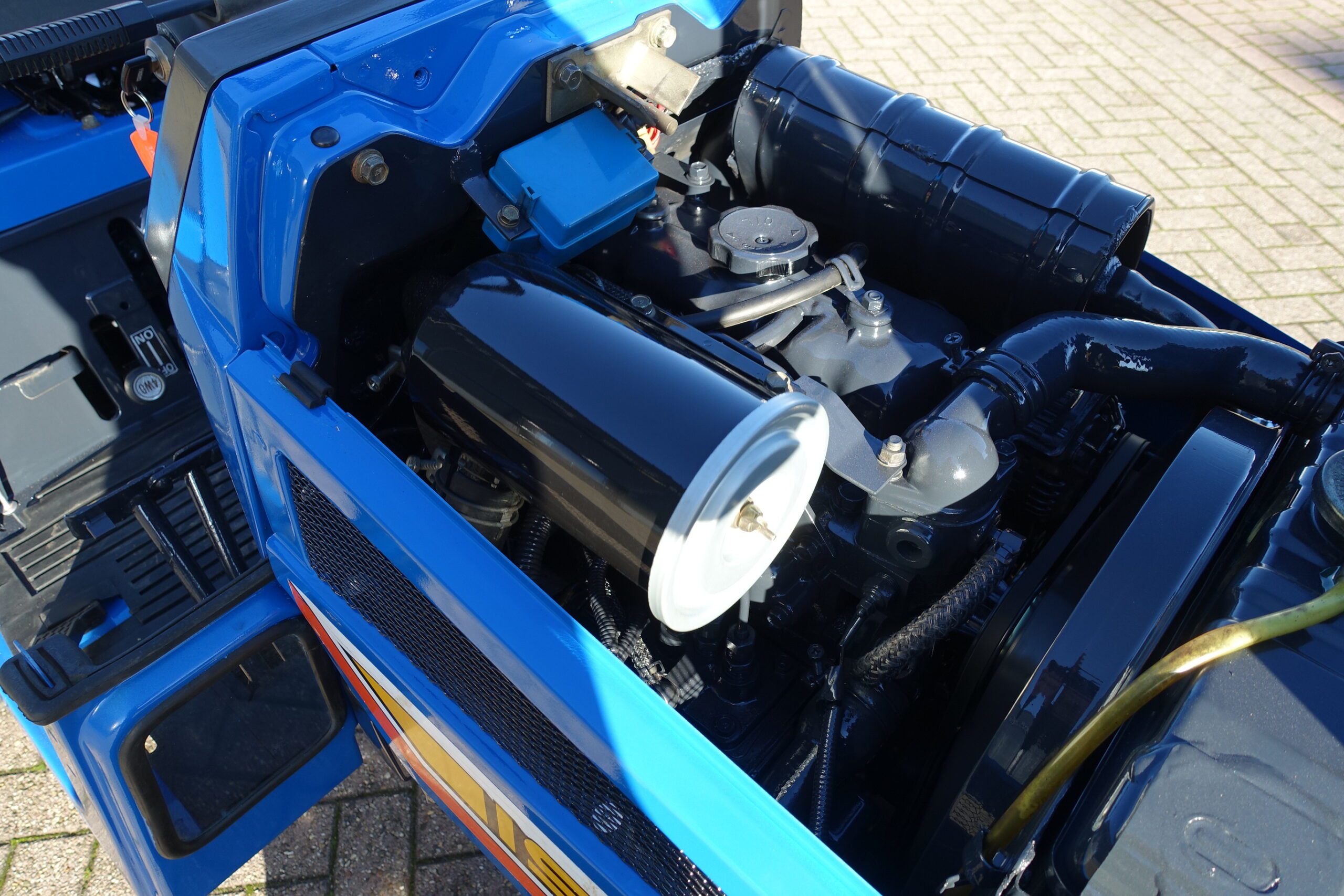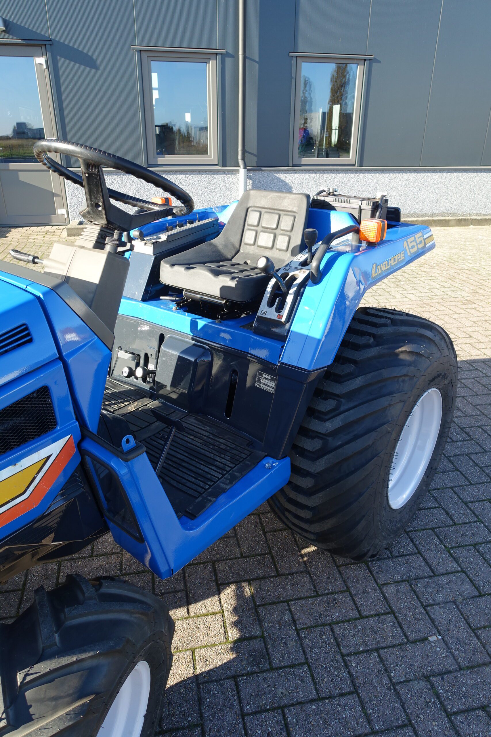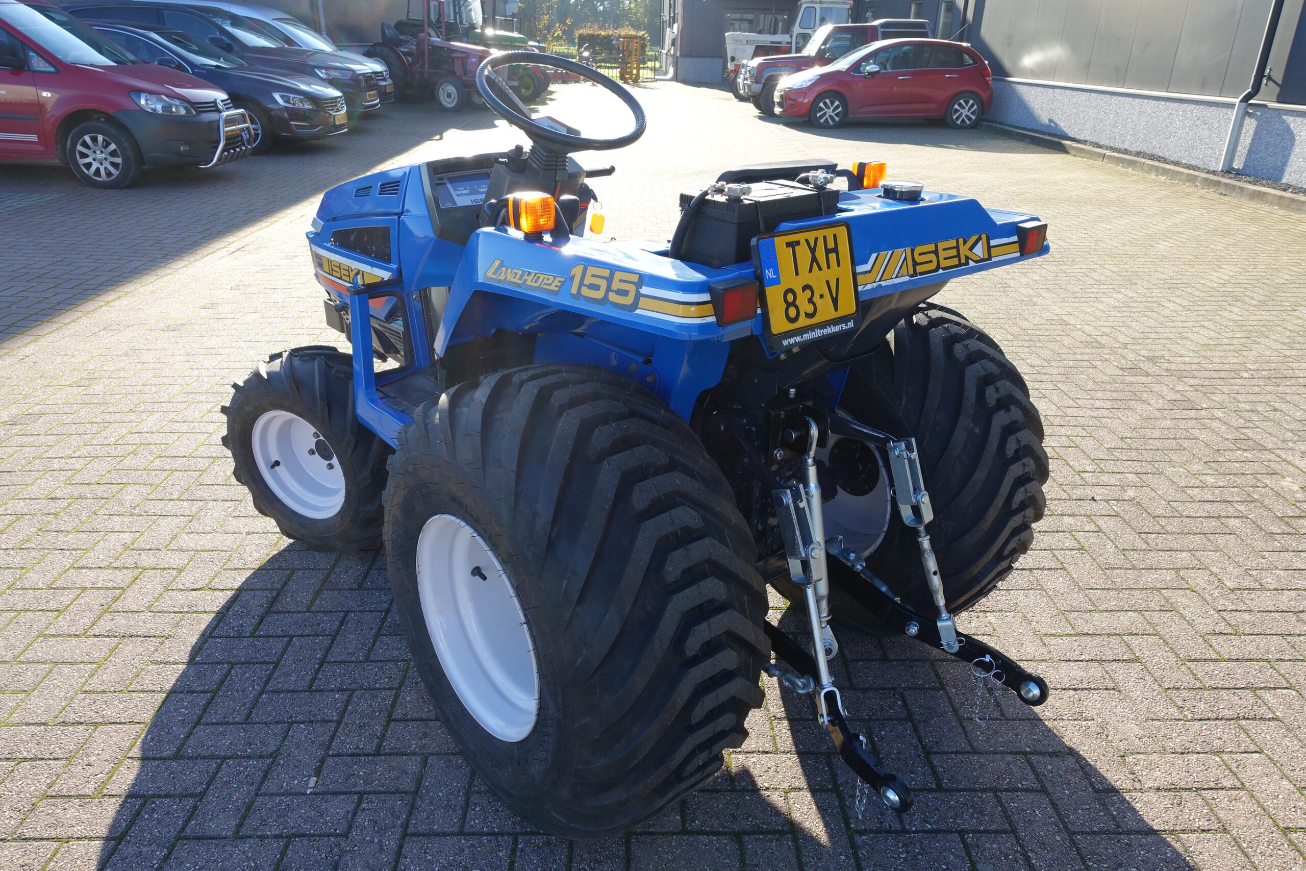 Aan de voorzijde zijn de nieuwe brede laag V-Profiel banden gemonteerd op de nieuwe velgen. Nauwelijks insporing, en toch maximale tractie als 4wd band. Deze prachtige set banden zijn gemonteerd op een 18 Pk sterke Iseki TU155 4wd. 3 cilinder dieselmotor, ZIJSCHAKELING, hef en aftakas aan de achterzijde, geheel klaargemaakt en klaar voor gebruik. Supernette en goede trekker, geleverd met garantie.