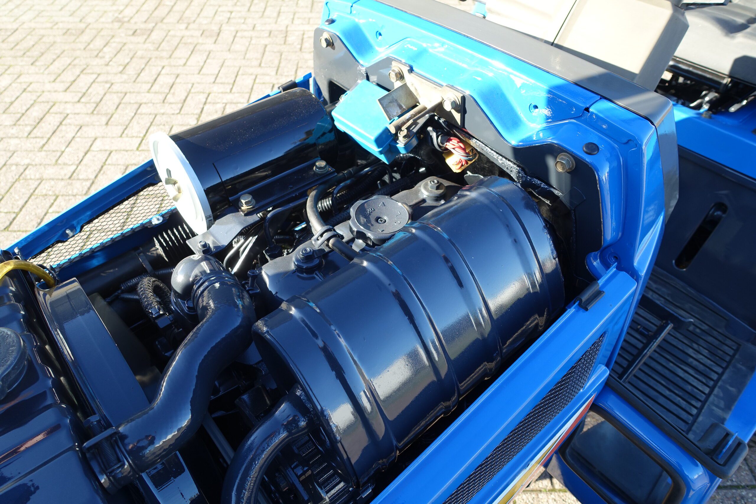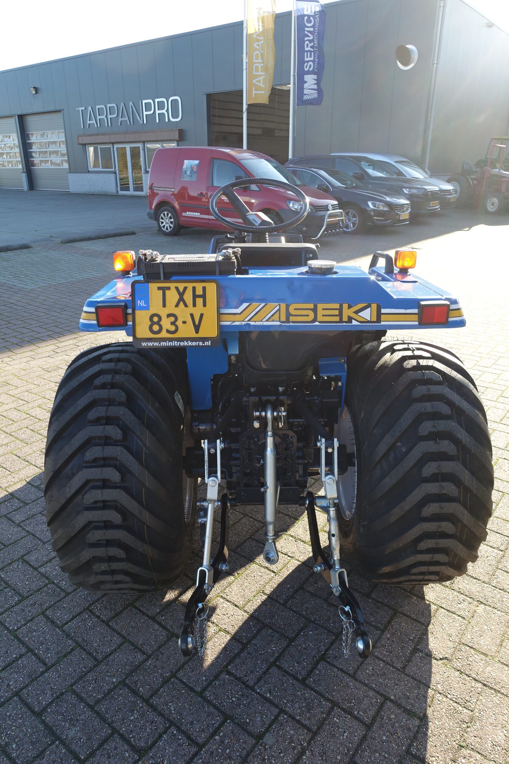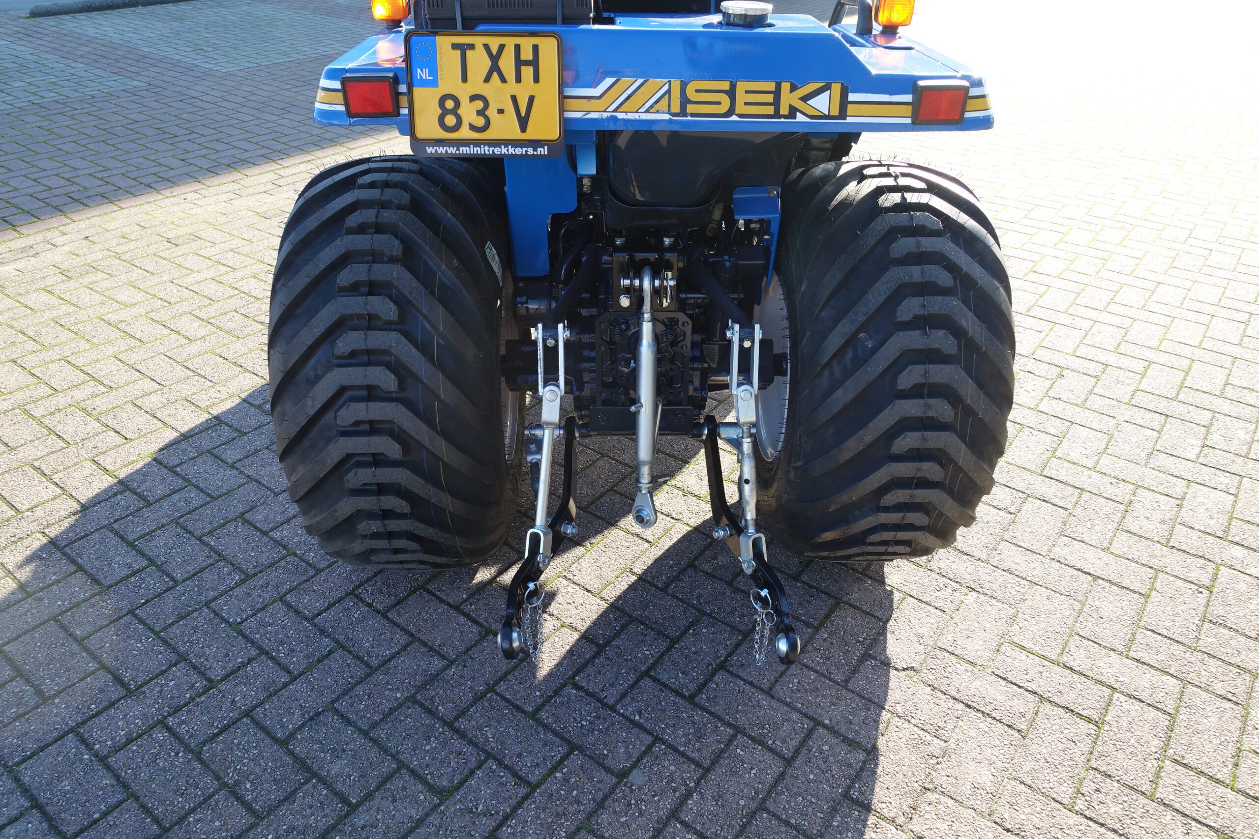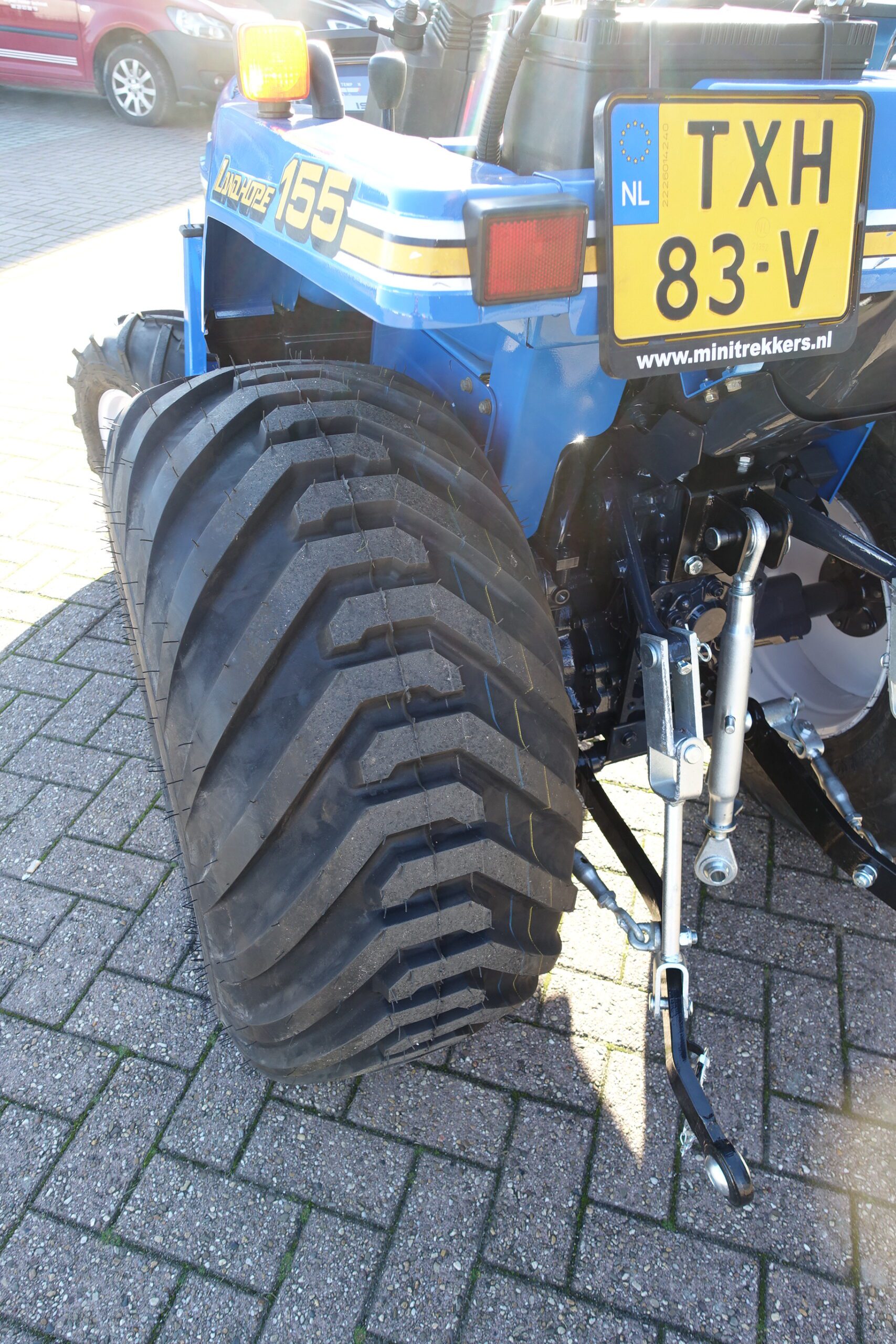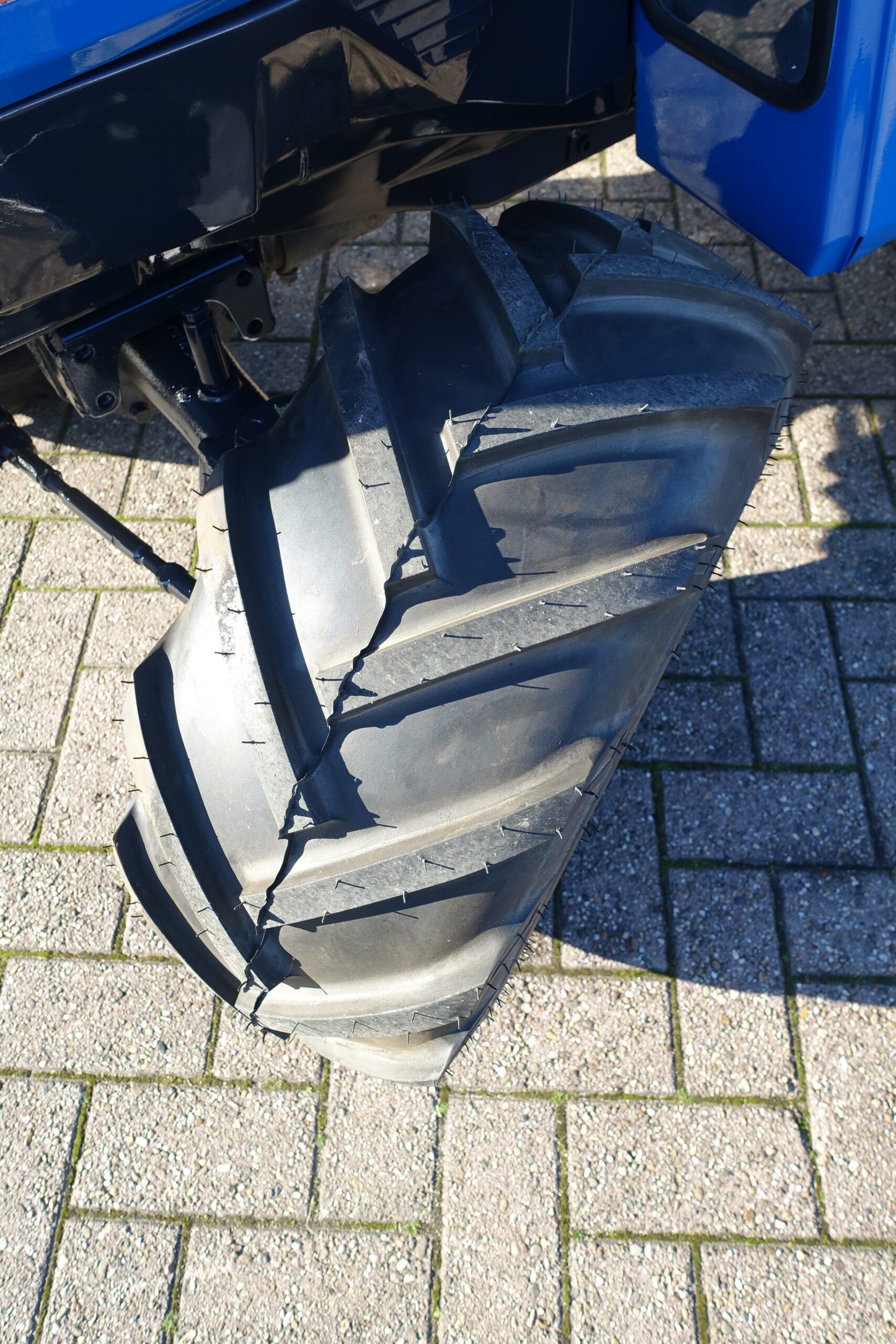 Aan de achterzijde voorzien van nieuwe velgen en nieuwe tractiebanden, mooie afgeronde nok waardoor een afgeronde band ontstaat, hierdoor snijdt de band minimaal in de ondergrond zodat je nauwelijks ziet waar je hebt gereden. Door de open nokken behoudt deze band toch de goede tractie. Door de breedte van de band wordt de druk goed verdeeld en is er nauwelijks insporing. Een ideale combinatieband dus, weinig insporing en toch goede tractie!