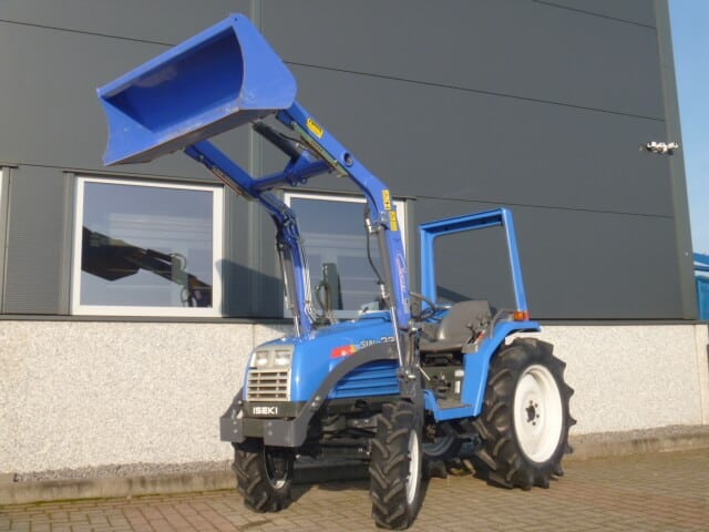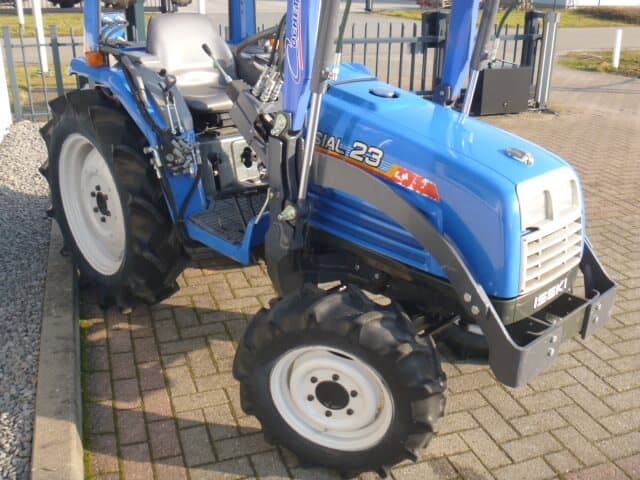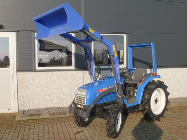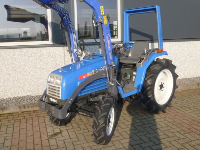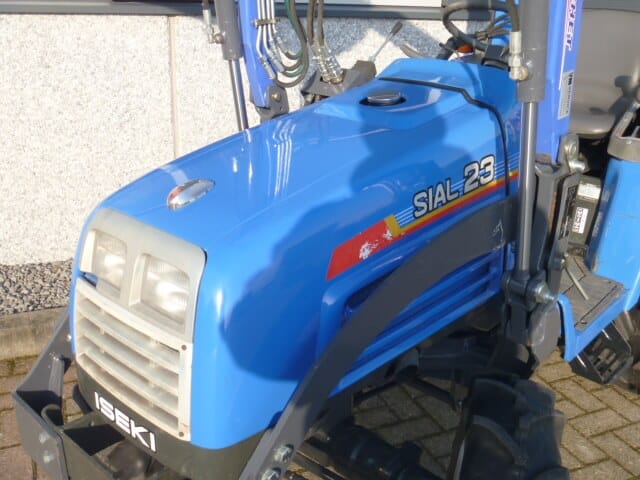 Ingeruild; Iseki Sial 23 4wd compleet met voorlader. MARGETREKKER (komt geen btw overheen). Unieke trekker / voorlader combinatie met maar 1000 draaiuren. O.a. uniek door de vormgeving (het uiterlijk) van deze combinatie, modern design met een subtiel en doordacht ontworpen frontlader. Snelwisselsysteem zodat de gehele voorlader snel en eenvoudig af- en aangekoppeld kan worden. De Iseki Sial 21 4wd heeft een drie cilinder dieselmotor met een vermogen van maar liefst 28 Pk! Uniek in deze pk klasse is dat de trekker buitenwerks maar 115 cm breed is. De trekker is verder uitgerust met o.a. Veiligheidsbeugel, Stuurbekrachtiging, Zijschakeling (zorgt voor een ruime opstap en ergonomische bediening), Joystickbediening van de voorlader (met een handle zijn alle functies te bedienen), Hef, Aftakas, Twee dubbelwerkende hydraulische functies (vier aansluitingen), Ondertrekhaak, Algehele servicebeurt, staat klaar voor gebruik.