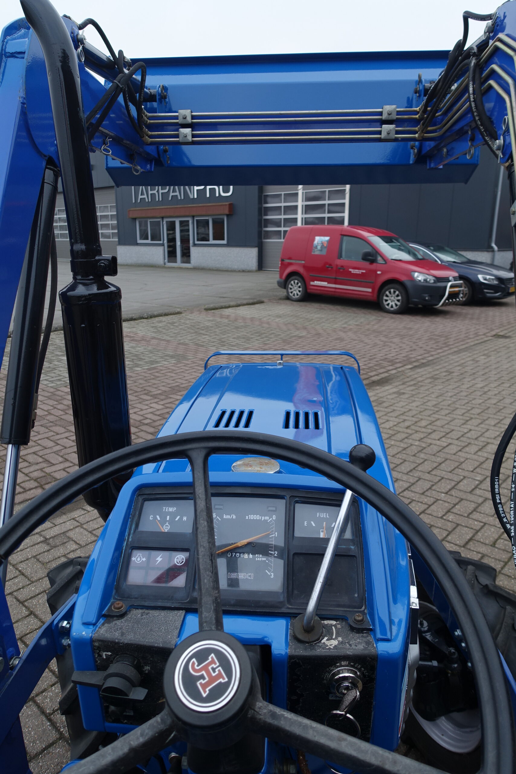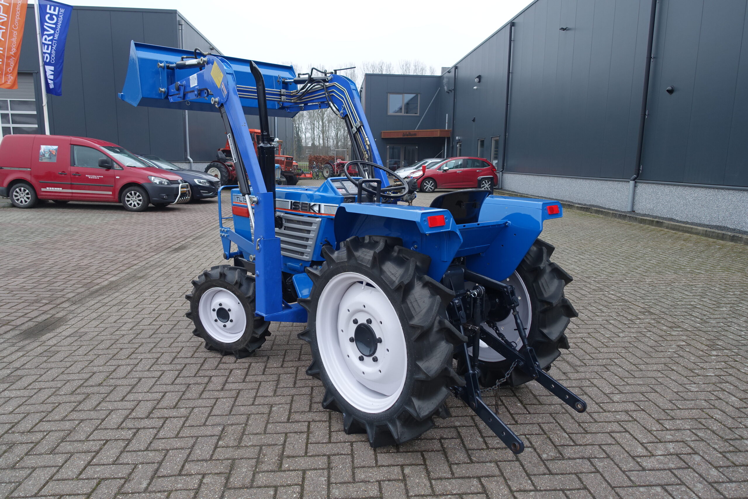 De Iseki TL1900 Trekker is tevens voorzien STUURBEKRACHTIGING en luxe dubbelwerkende voorlader met het snelwisselsysteem, en eenhandlebediening (joystickbediening).