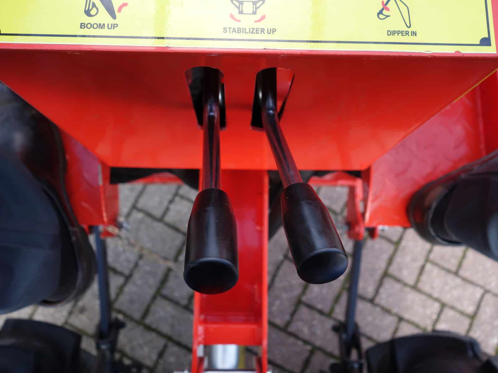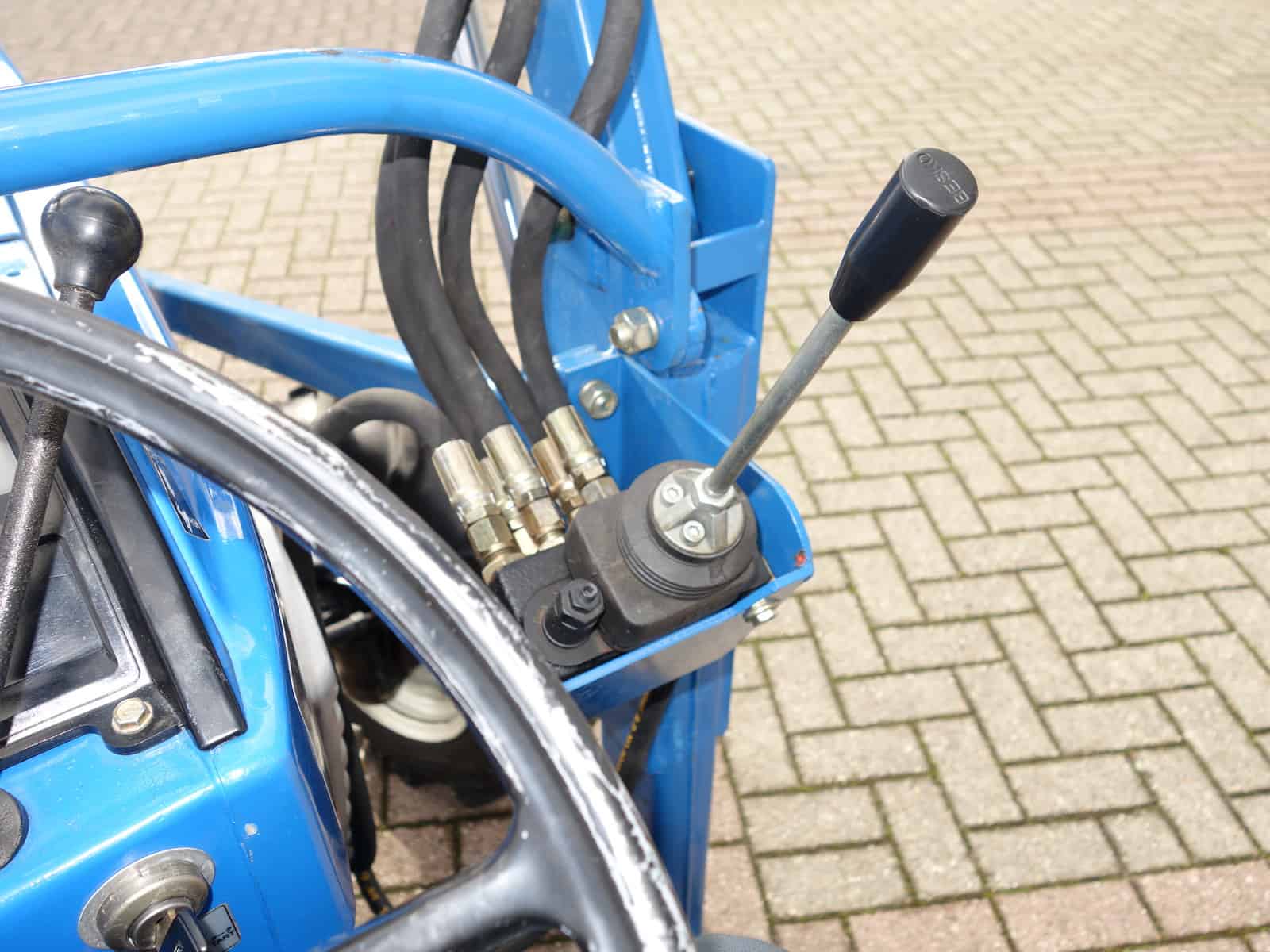 Aan de voorzijde voorzien van voorlader. Dubbelwerkdend hydraulisch systeem waardoor er naast het heffen ook naar beneden gedrukt kan worden. Hierdoor kan de bak altijd goed vol geschept worden.