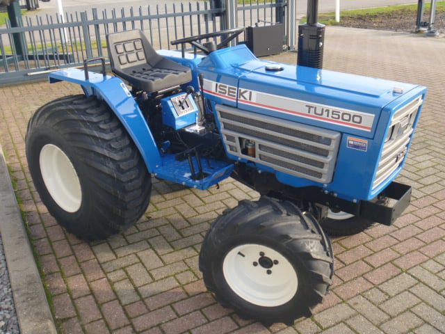 Nu aangeboden; Special Edition Iseki TU1500 4wd. met maar 763 draaiuren. Special Edition door de bijzondere wielen van de trekker. Mooie (zeer) brede tractiewielen. Aan de achterzijde voorzien van nieuwe velgen en nieuwe tractiebanden, mooie afgeronde nok waardoor een afgeronde band ontstaat, hierdoor snijdt de band minimaal in de ondergrond zodat je nauwelijks ziet waar je hebt gereden. Door de open nokken behoudt deze band toch de goede tractie. Door de breedte van de band wordt de druk goed verdeeld en is er nauwelijks insporing. Een ideale combinatieband dus, weinig insporing en toch goede tractie! Aan de voorzijde zijn de nieuwe brede (afgeronde) grasbanden gemonteerd op de nieuwe velgen. Nauwelijks insporing, geen snijranden in de bochten en toch (waar nodig) inzetbaar als 4wd band. Tevens hebben we deze brede band ook met een (laag) V-profiel. Dit geeft geen meerprijs. Deze prachtige set banden zijn gemonteerd op een 18 Pk sterke Iseki TU1500 4wd. 3 cilinder dieselmotor, hef en aftakas aan de achterzijde, geheel klaargemaakt en klaar voor gebruik. Supernette en goede trekker. Zie ook de videobeelden.