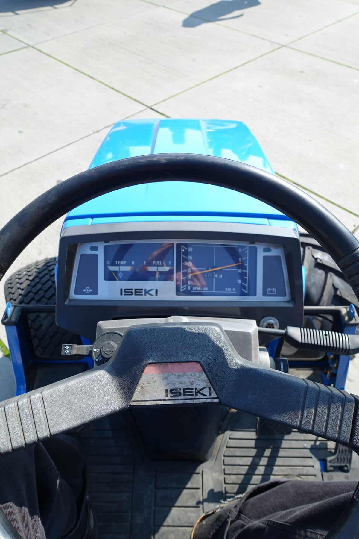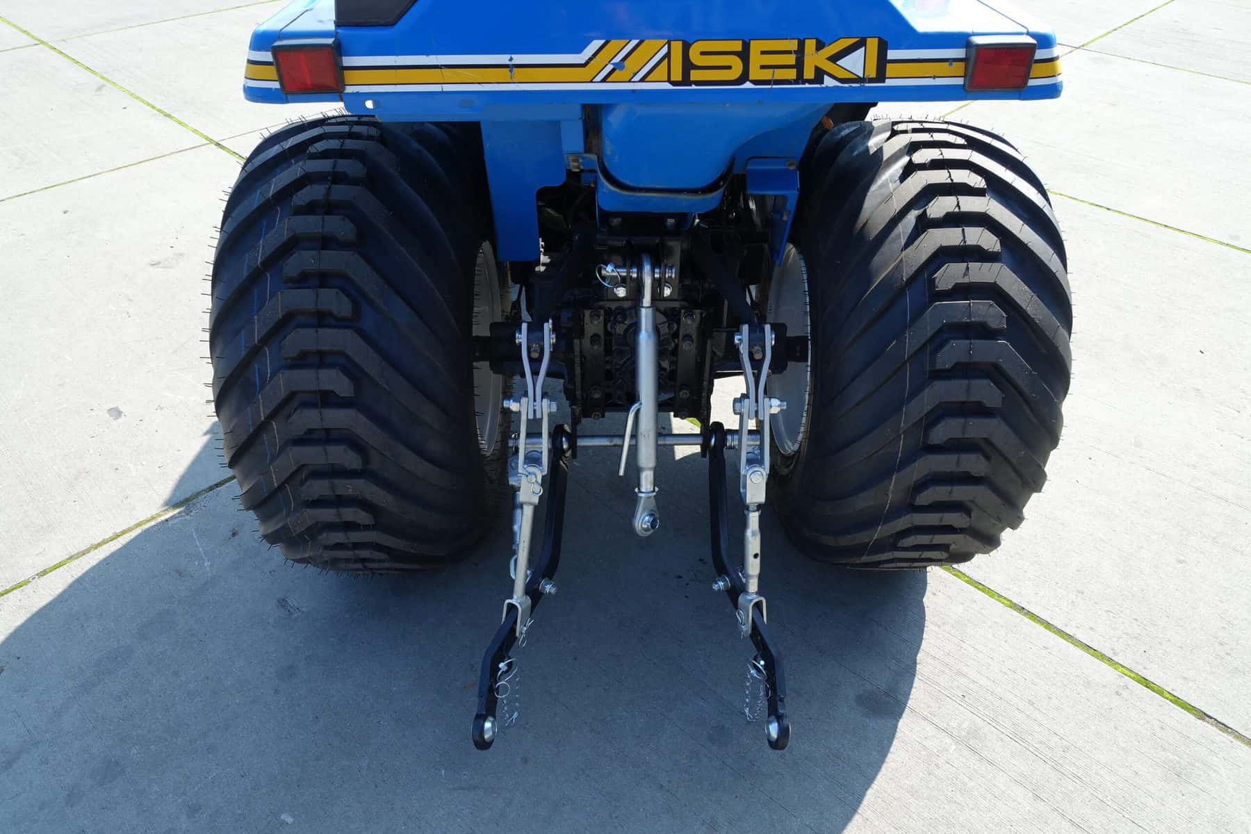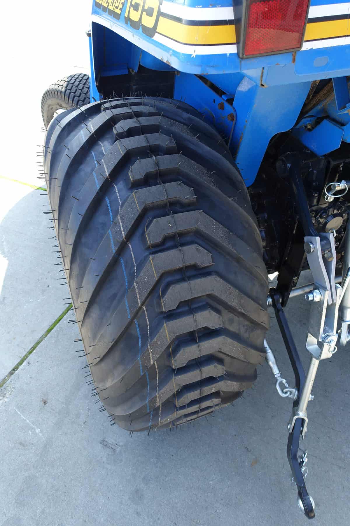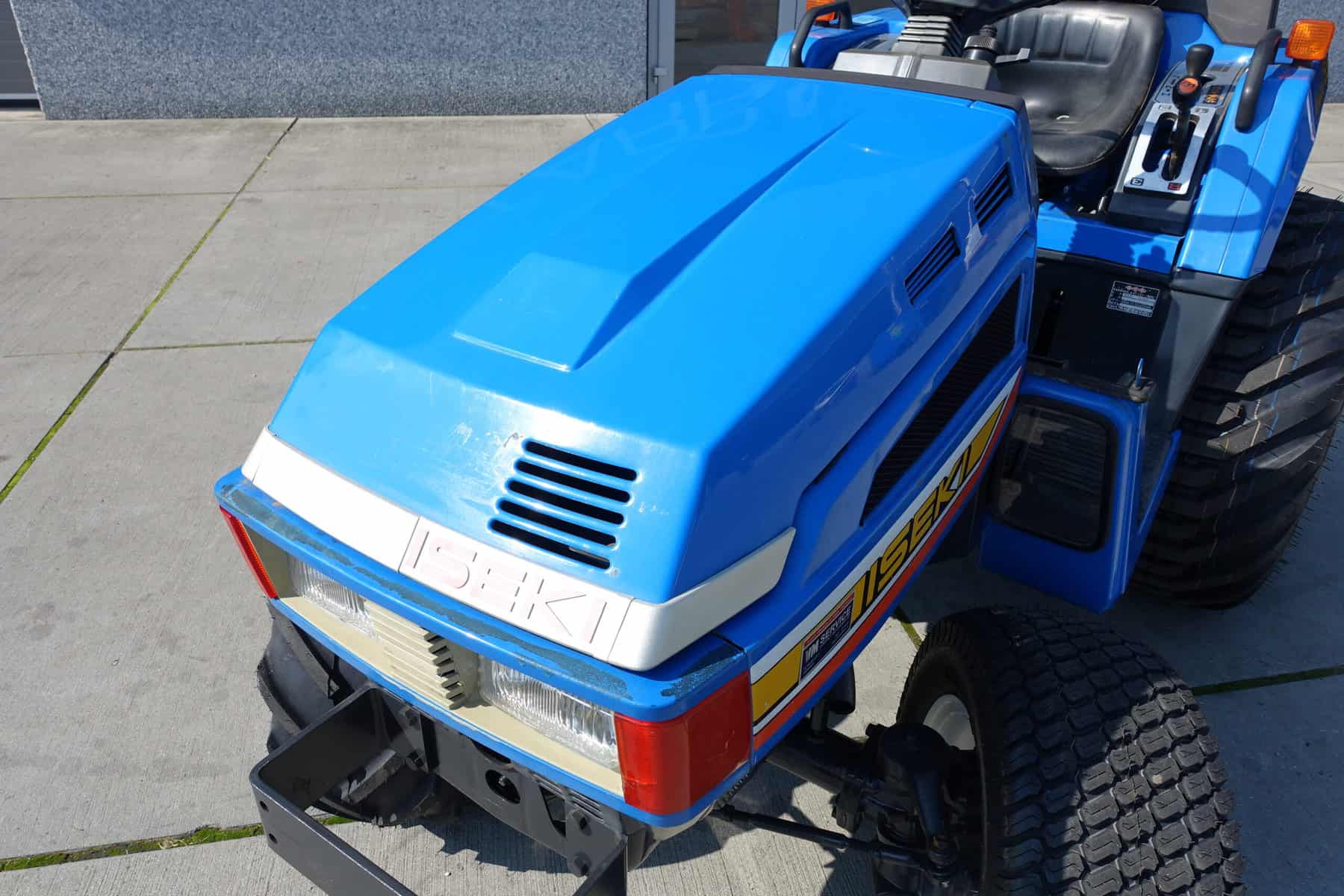 Aan de voorzijde zijn de nieuwe brede (afgeronde) grasbanden gemonteerd op de nieuwe velgen. Nauwelijks insporing, geen snijranden in de bochten en toch (waar nodig) inzetbaar als 4wd band. Tevens hebben we deze brede band ook met een (laag) V-profiel. Dit geeft geen meerprijs. Deze prachtige set banden zijn gemonteerd op een 18 Pk sterke Iseki TU155 4wd. 3 cilinder dieselmotor, hef en aftakas aan de achterzijde, geheel klaargemaakt en klaar voor gebruik. Supernette en goede trekker, geleverd met garantie.