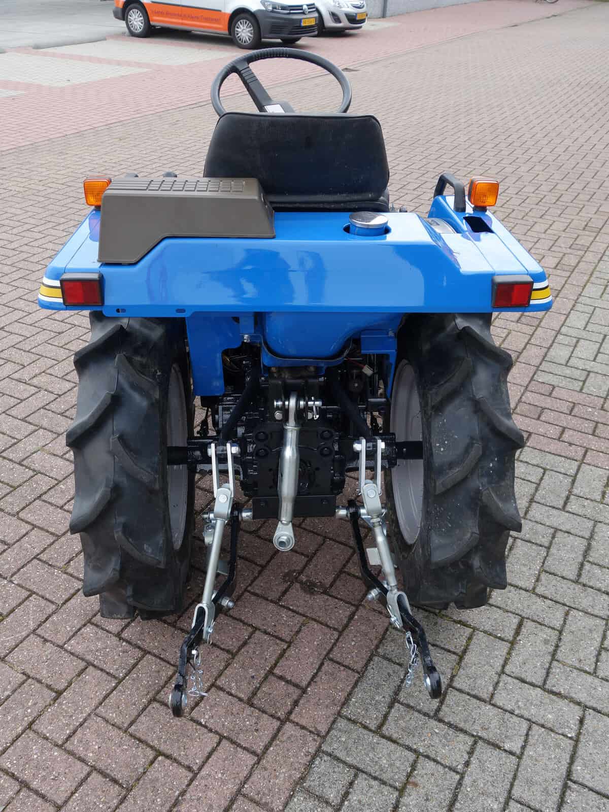 Geïntegreerd uitlaatsysteem waardoor er geen grote uitlaatdemper aan de buitenzijde zichtbaar is en uitsteekt, ideaal daar waar onder bomen, takken, uitsteeksels gewerkt moet worden. Met de krachtige 18 Pk sterke drie cilinder dieselmotor prima geschikt voor nagenoeg alle werkzaamheden zoals b.v; gazonmaaien, weide bloten, ploegen, frezen, manegebak vlakken, etc. De schakelpook is aan de zijkant gepositioneerd (zijschakeling), hierdoor ontstaat er een ruime opstap en een ergonomische werkhouding tijdens het schakelen. De vlakke vloer van de trekker maakt tevens dat de op- en afstap gemakkelijk verloopt. Vanaf de overzichtelijke bestuurderszitplaats zijn alle functies te bedienen, zoals; Hef, Aftakas, Hoge- en Lage gearing, Sper, etc. Trekker is voorzien van nieuwe hefset met topstang.