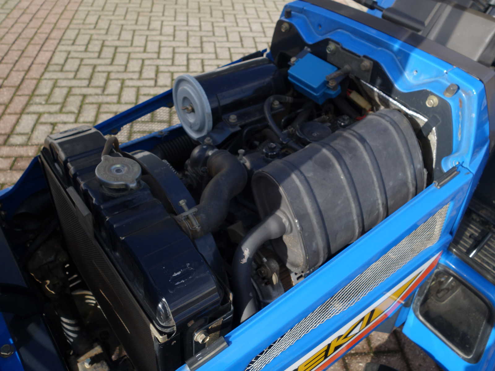 Geïntegreerd uitlaatsysteem waardoor er geen grote uitlaatdemper aan de buitenzijde zichtbaar is en uitsteekt, ideaal daar waar onder bomen, takken, uitsteeksels gewerkt moet worden. Met de krachtige 18 Pk sterke drie cilinder dieselmotor prima geschikt voor nagenoeg alle werkzaamheden zoals b.v; gazonmaaien, weide bloten, ploegen, frezen, manegebak vlakken, etc. De schakelpook is aan de zijkant gepositioneerd (zijschakeling), hierdoor ontstaat er een ruime opstap en een ergonomische werkhouding tijdens het schakelen. De vlakke vloer van de trekker maakt tevens dat de op- en afstap gemakkelijk verloopt. Vanaf de overzichtelijke bestuurderszitplaats zijn alle functies te bedienen, zoals; Hef, Aftakas, Hoge- en Lage gearing, Sper, etc. Trekker is voorzien van nieuwe hefset met topstang.
