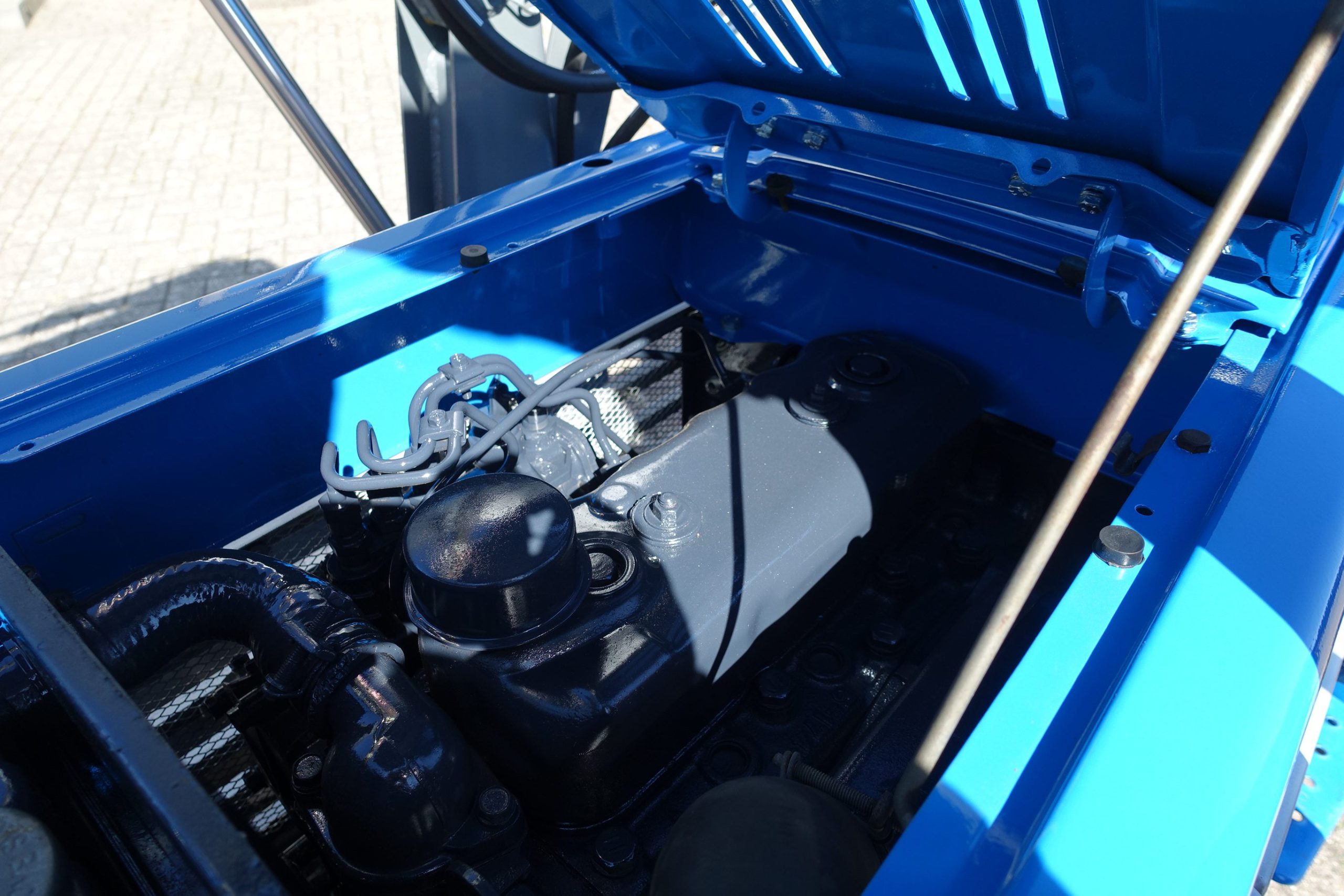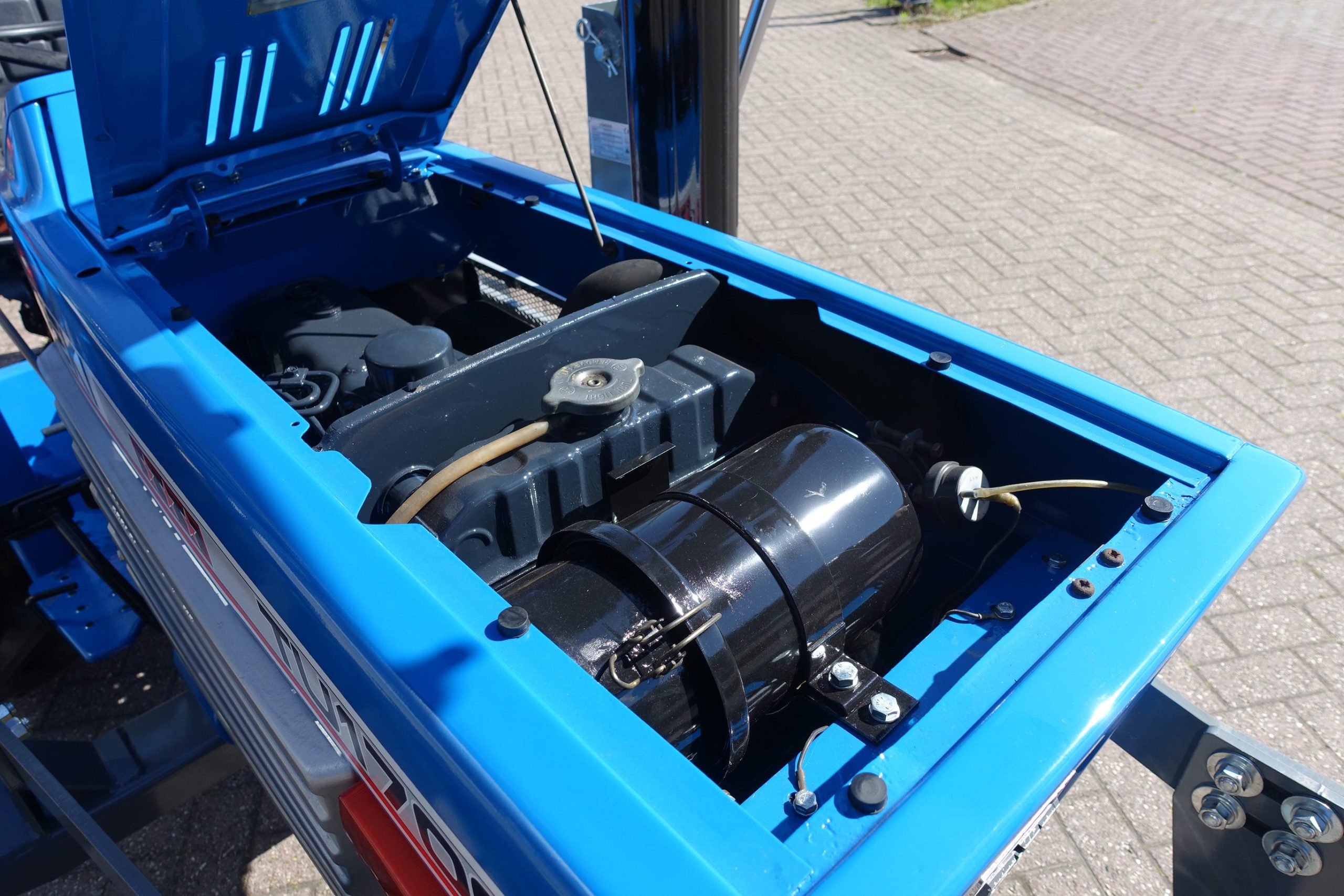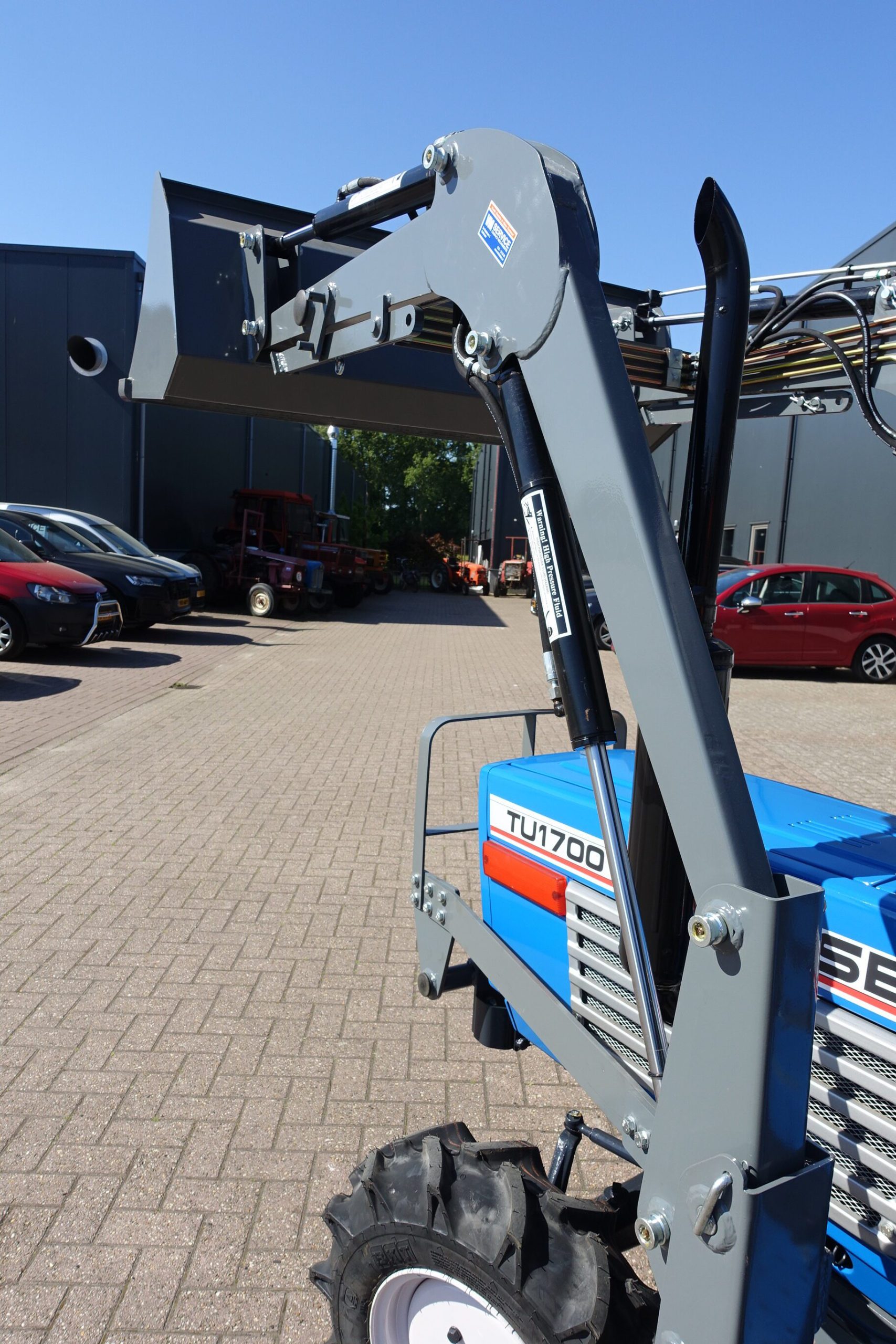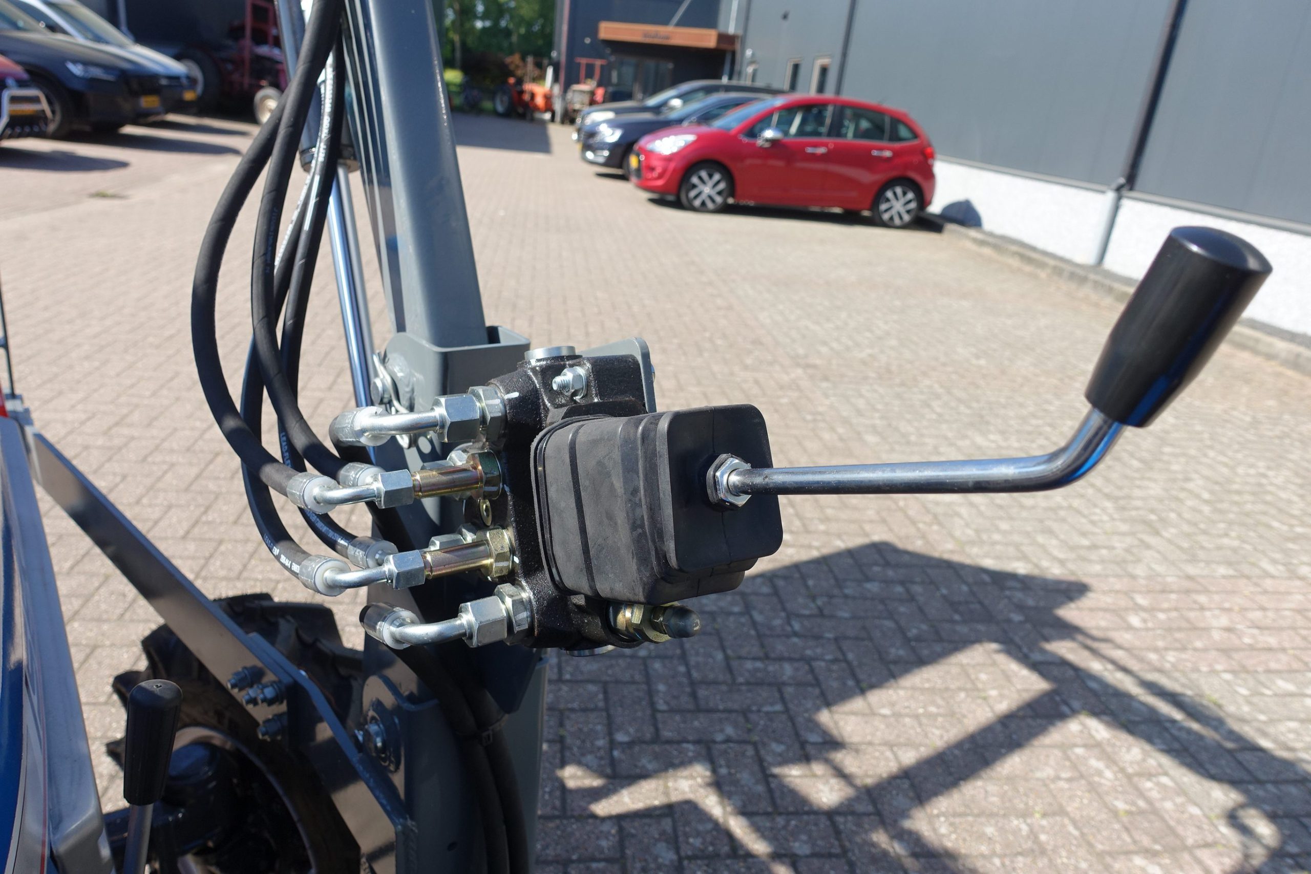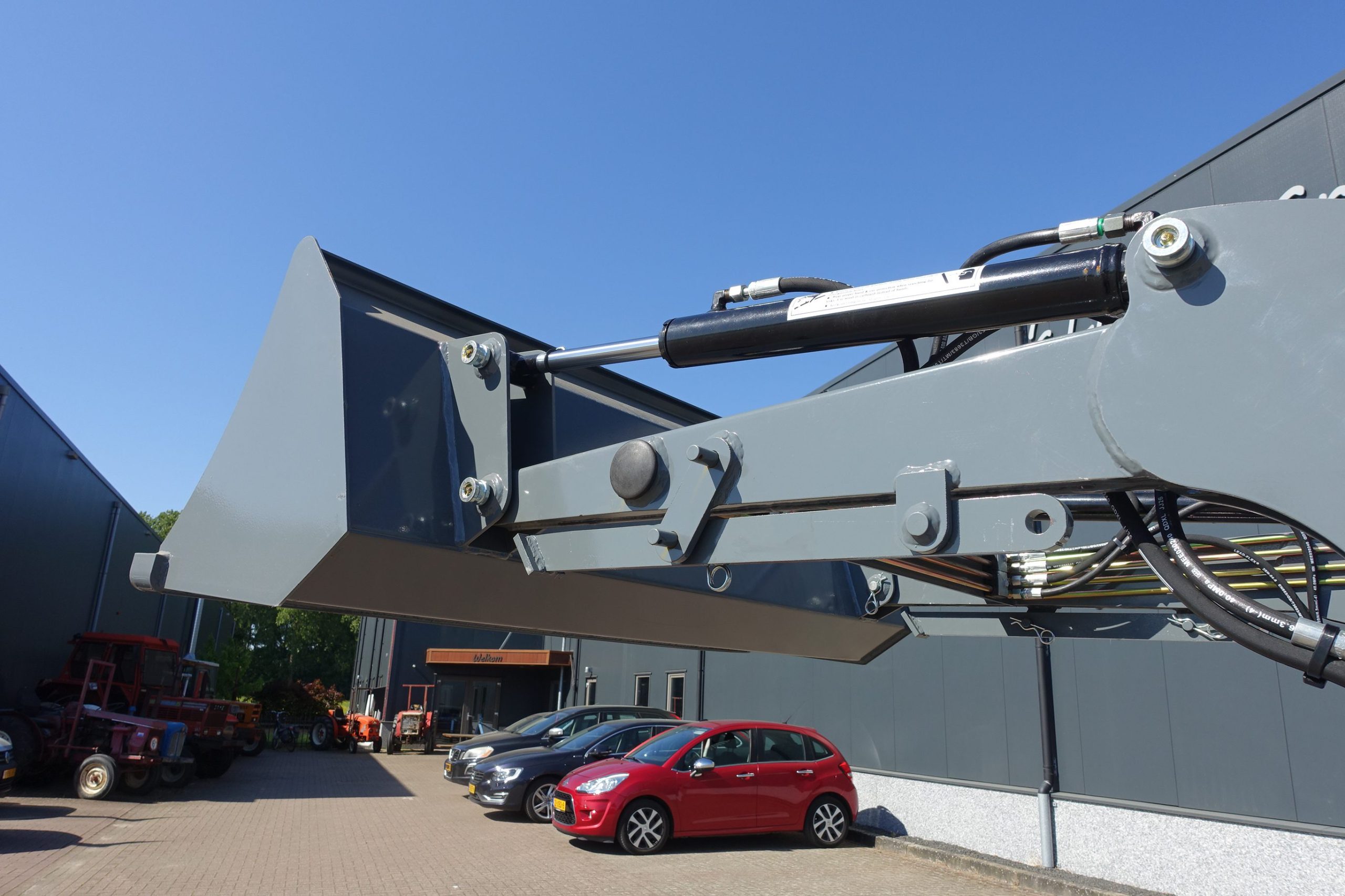 Aan de voorzijde voorzien van nieuwe afkoppelbare voorlader waardoor de gehele voorlader eenvoudig is af- en aan te koppelen. Dubbelwerkdend hydraulisch systeem waardoor er naast het heffen ook naar beneden gedrukt kan worden. Hierdoor kan de bak altijd goed vol geschept worden.