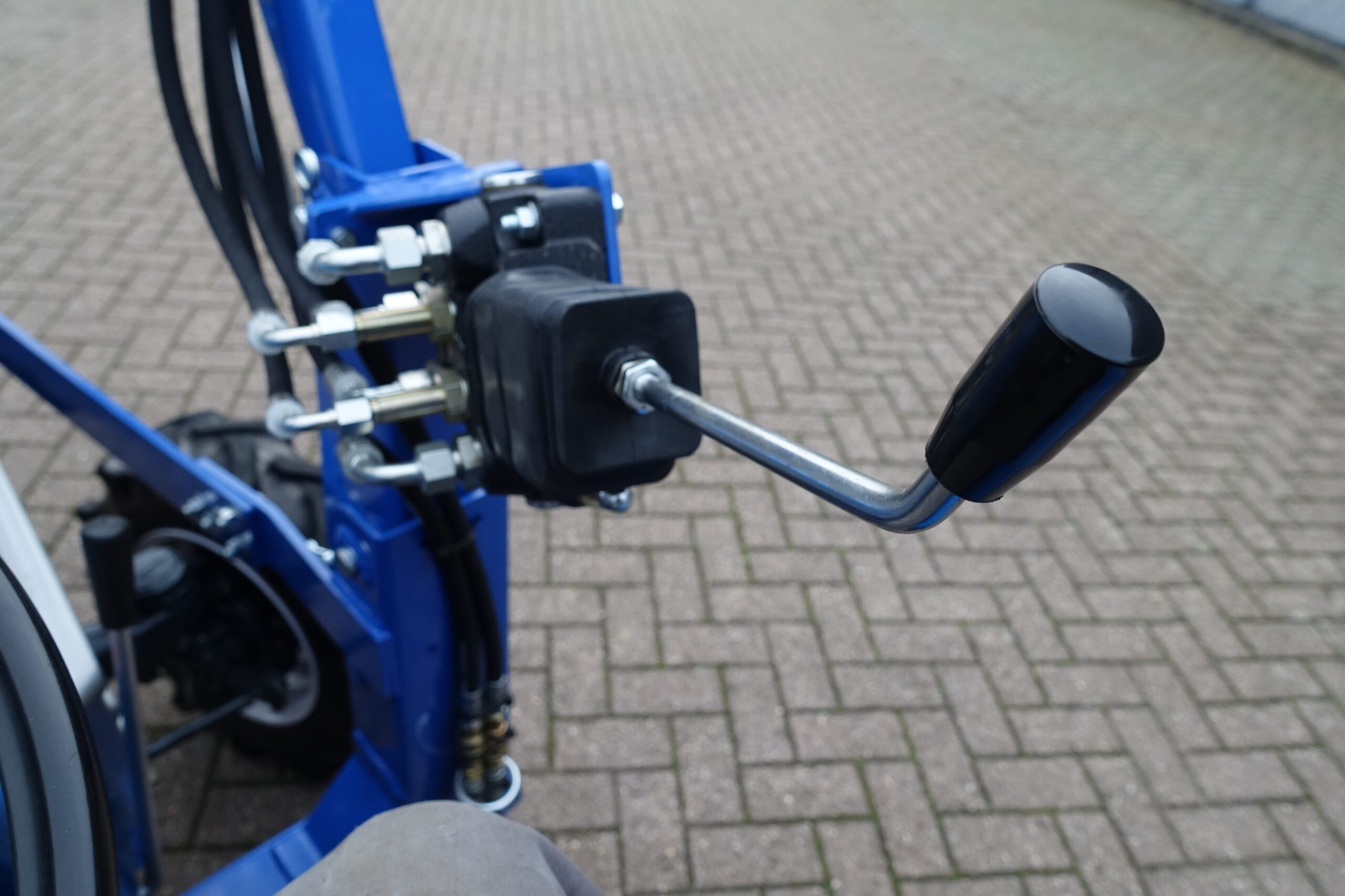 Aan de voorzijde voorzien van nieuwe afkoppelbare voorlader waardoor de gehele voorlader eenvoudig is af- en aan te koppelen. Dubbelwerkdend hydraulisch systeem waardoor er naast het heffen ook naar beneden gedrukt kan worden. Hierdoor kan de bak altijd goed vol geschept worden.