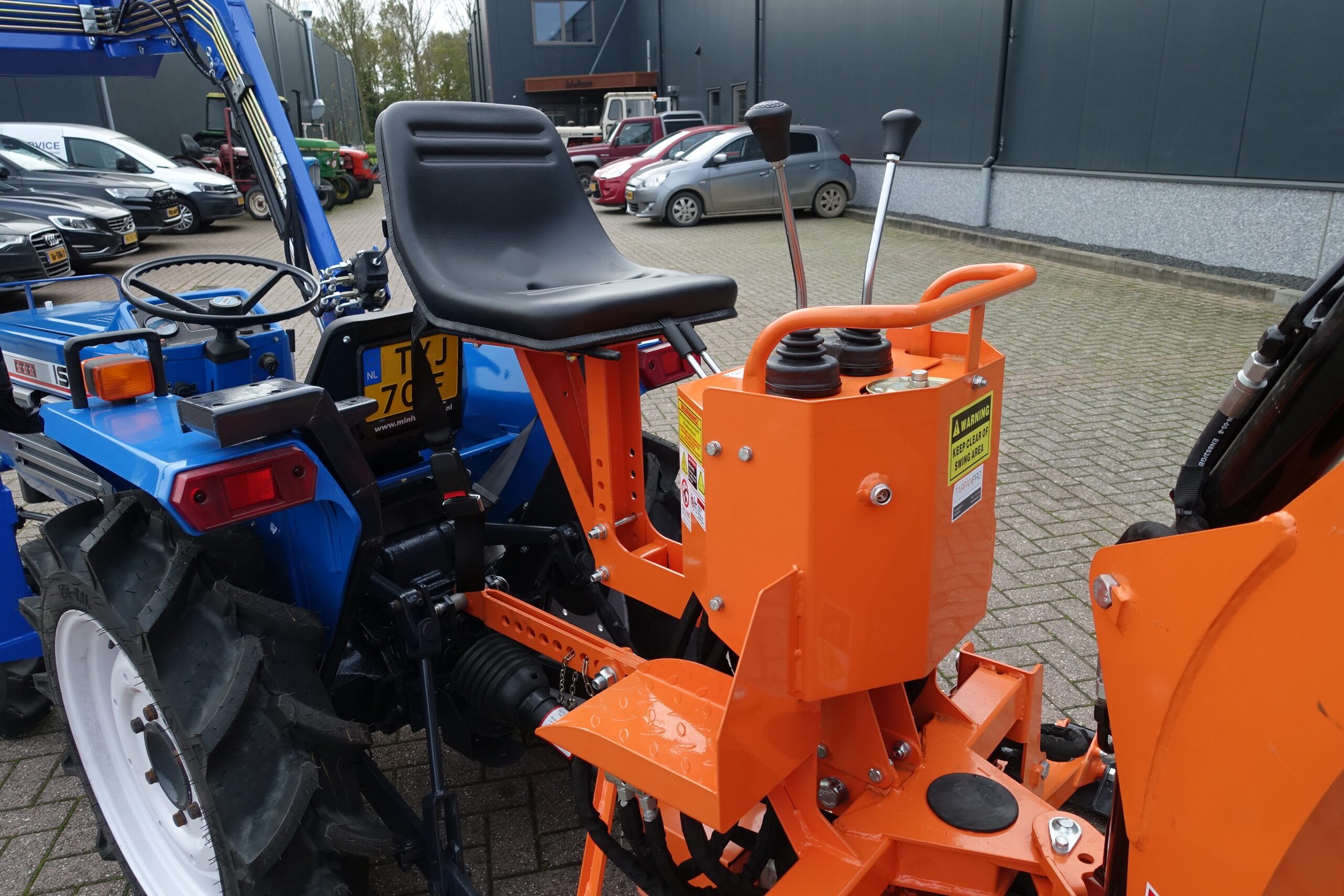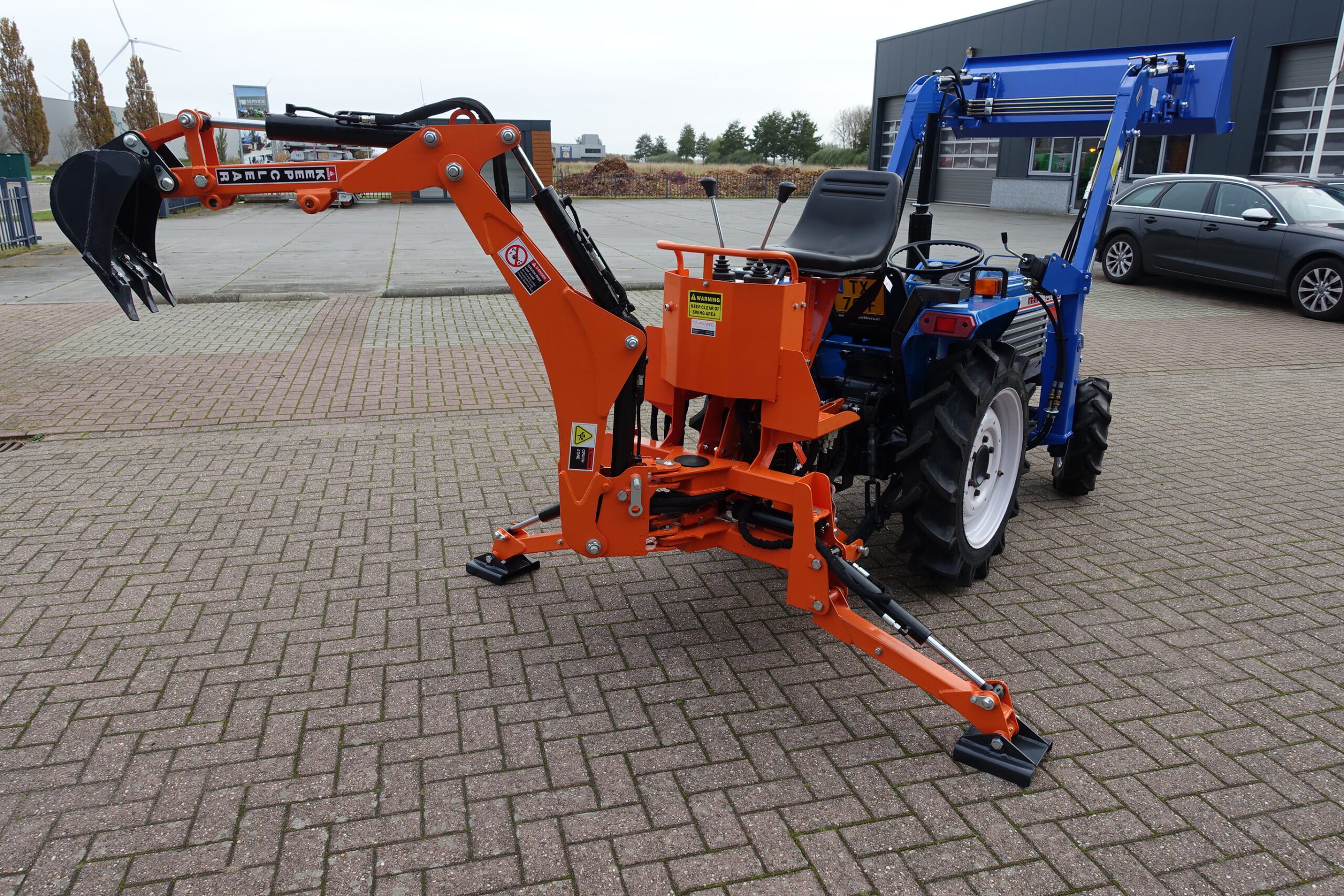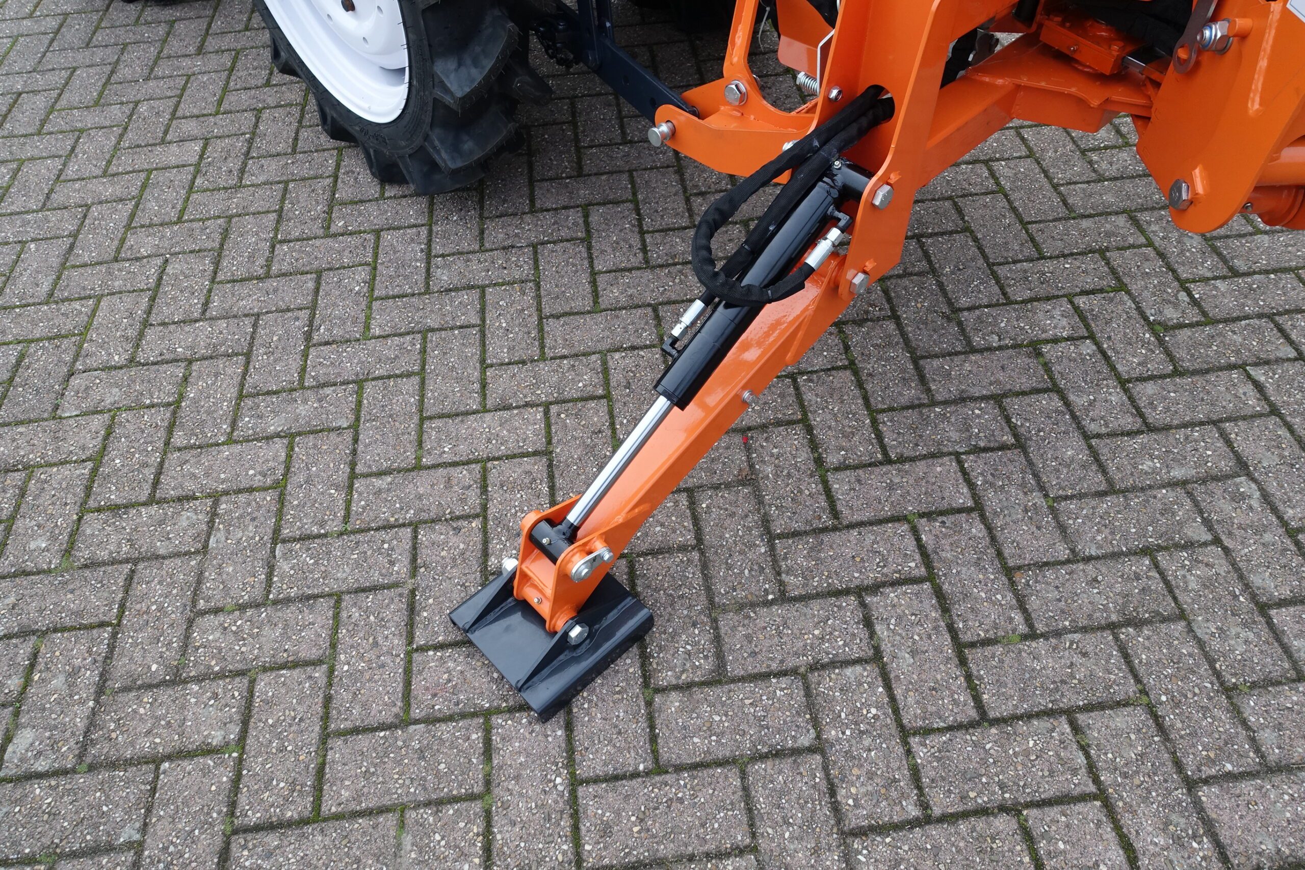 Aan de achterzijde voorzien van nieuwe Backhoeloader / Graafarm. Groot bereik en een groot hefvermogen. Geheel eigen hydraulisch systeem, aftakas aankoppelen en klaar. Kruishandlebediening (joystickbediening) De bak is voorzien van tanden om de grond ook los te kunnen maken. Tevens leverbaar met brede graafbak.