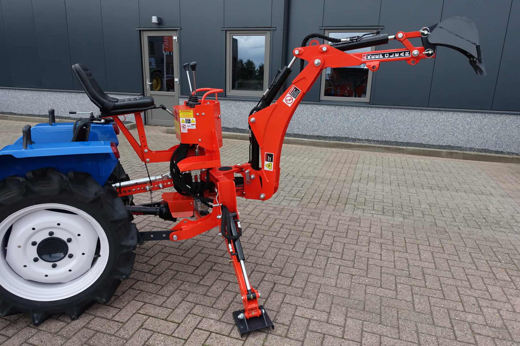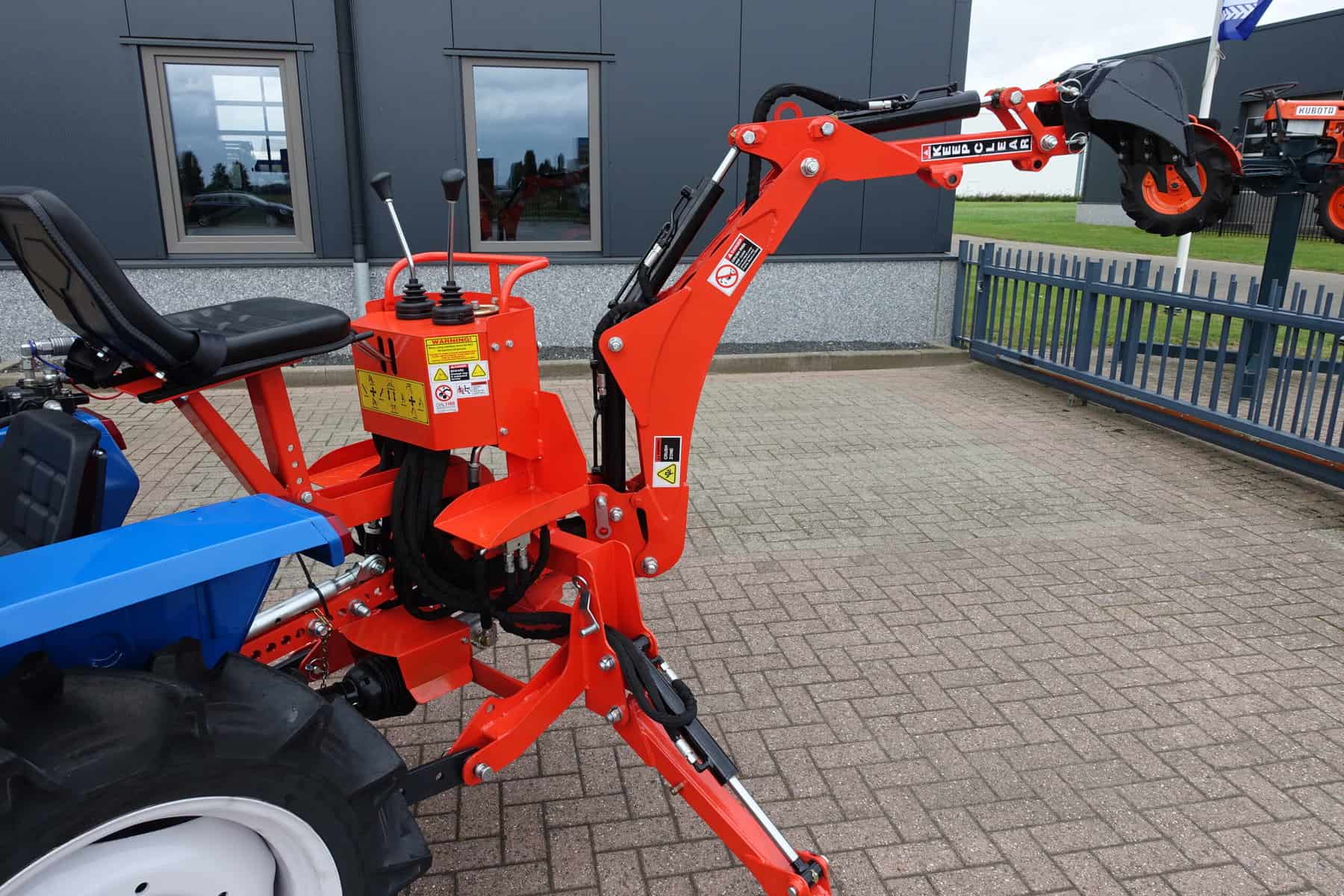 Aan de achterzijde voorzien van nieuwe Backhoeloader / Graafarm. Groot bereik en een groot hefvermogen. Geheel eigen hydraulisch systeem, aftakas aankoppelen en klaar. Kruishandlebediening (joystickbediening) De bak is voorzien van tanden om de grond ook los te kunnen maken. Tevens leverbaar met brede graafbak.