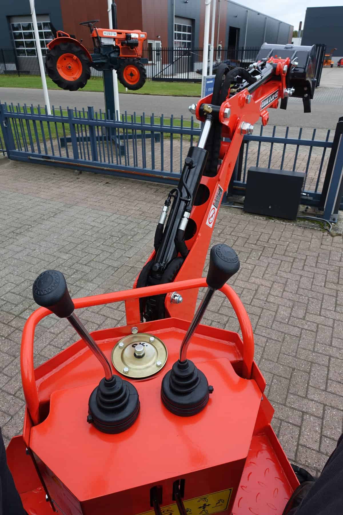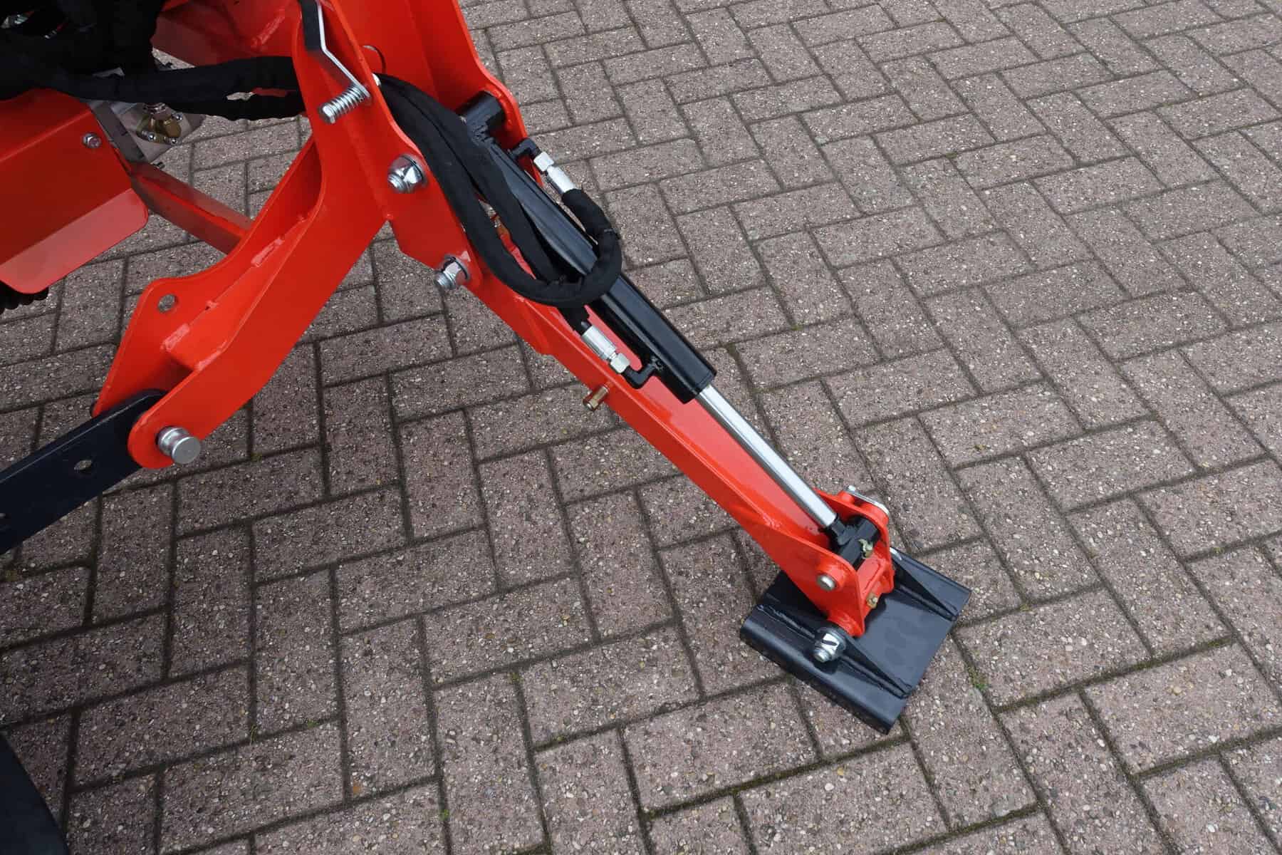 Aan de voorzijde voorzien van nieuwe afkoppelbare voorlader waardoor de gehele voorlader eenvoudig is af- en aan te koppelen. Dubbelwerkdend hydraulisch systeem waardoor er naast het heffen ook naar beneden gedrukt kan worden. Hierdoor kan de bak altijd goed vol geschept worden.