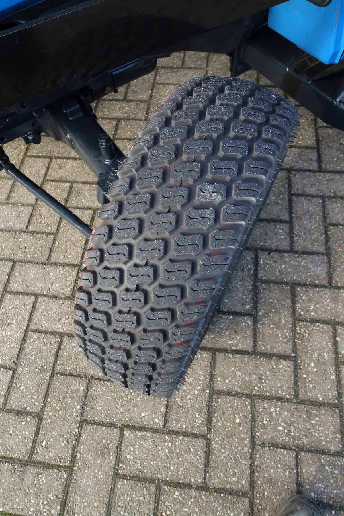 Deze nagenoeg nieuwe set brede gazonwielen zorgen er voor dat onder alle omstandigheden de draagkracht optimaal is. Een brede band met een lage nok. Weinig insporing en toch een goede trekkracht, ideale gazonband.