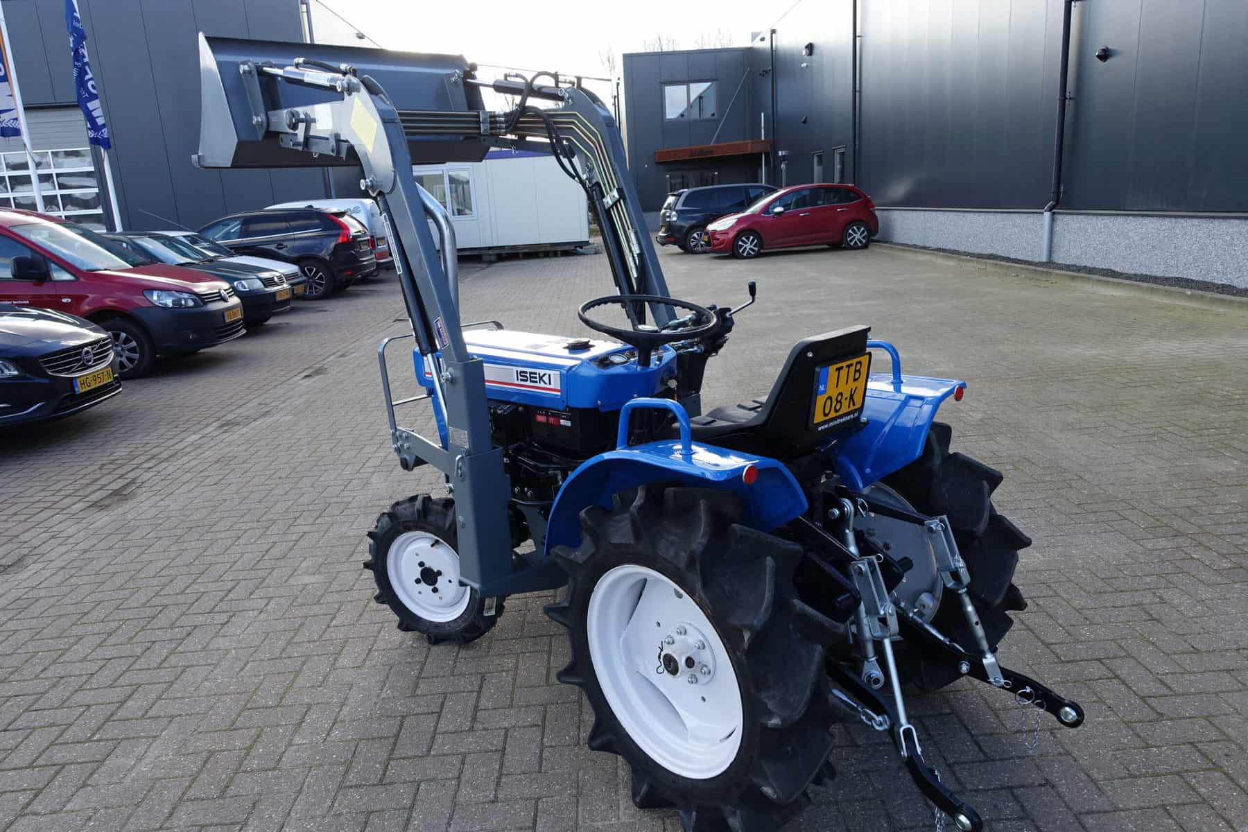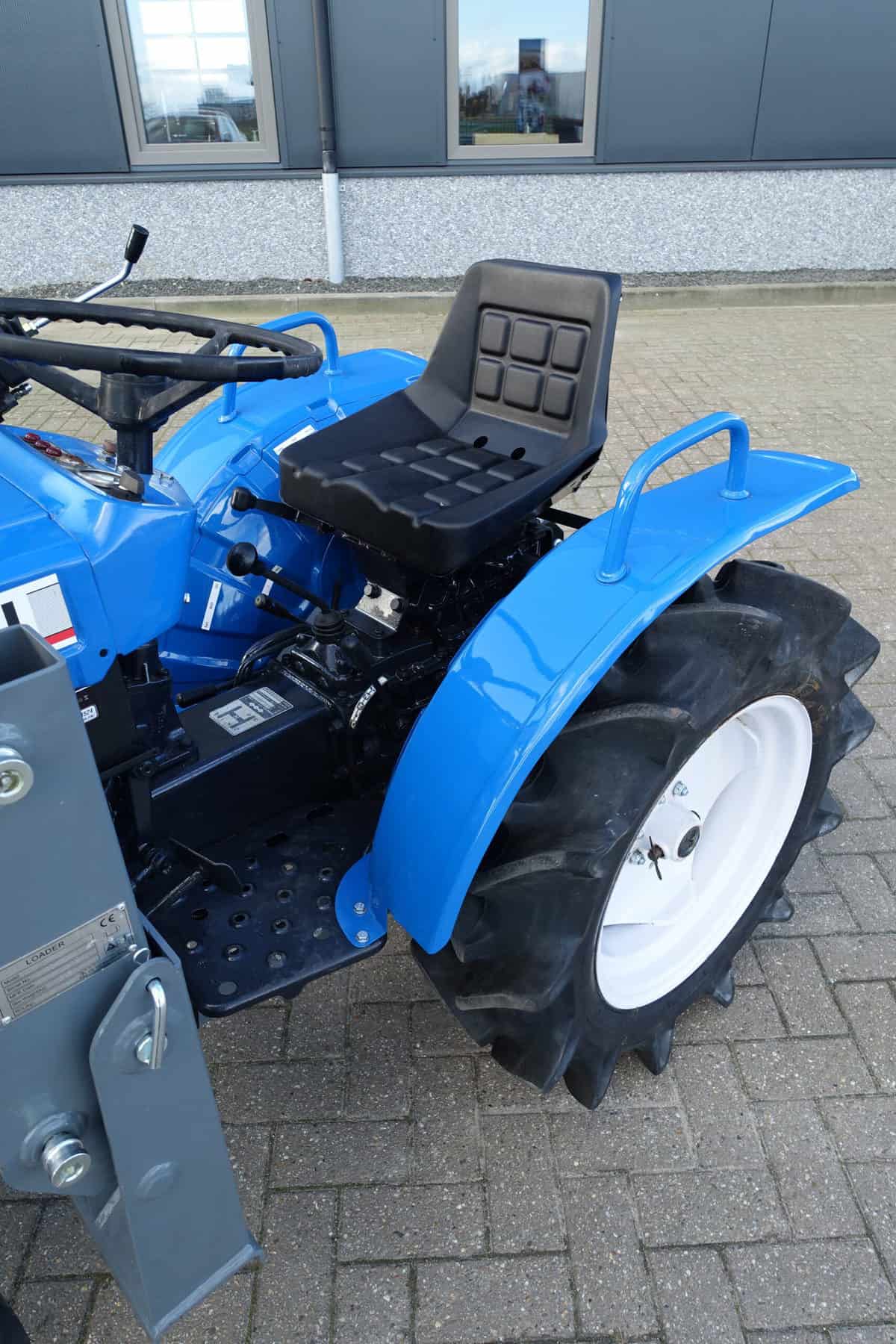 Compact, wendbaar, no nonsens, Alles zit er op wat je nodig hebt; Sper, hoge en lage gearing, in- en uitschakelbare 4wd, hef, aftakas, enz. 3 cilinder dieselmotor van 18 Pk. Al met al een perfect trekkertje! Klaar voor gebruik. Voorzien van nieuwe dubbelwerkende voorlader. Dubbelwerkend betekend dat de voorlader zowel kan tillen als kan drukken, zodat ook kracht gezet kan worden op de grond om de bak goed vol te kunnen drukken. Voorlader is voorzien van snelwisselsysteem zodat de gehele voorlader eenvoudig afgekoppeld kan worden. Kortom; net, goed, compact, wendbare combinatie.