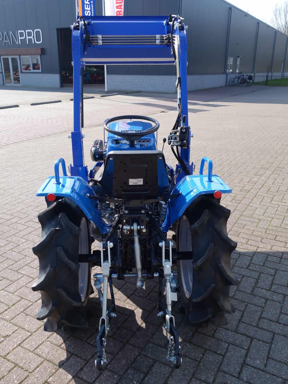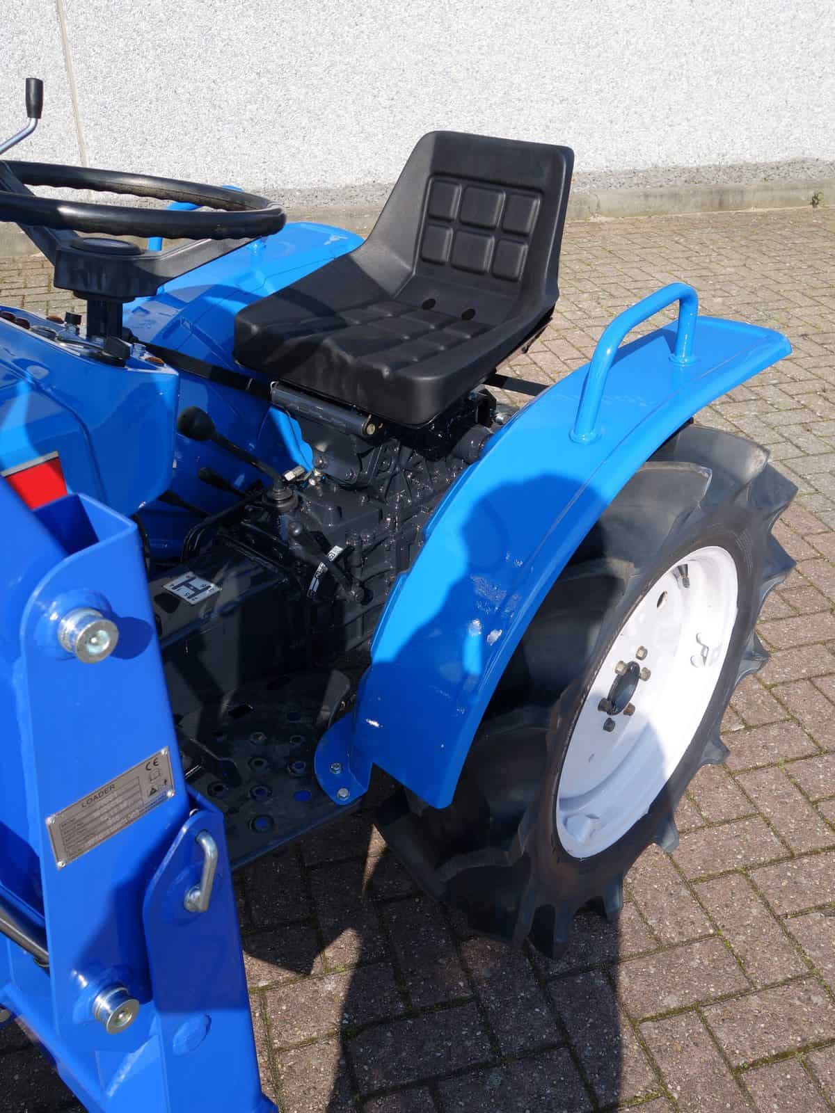 Compact, wendbaar, no nonsens, Alles zit er op wat je nodig hebt; Sper, hoge en lage gearing, in- en uitschakelbare 4wd, hef, aftakas, enz. 3 cilinder dieselmotor van 18 Pk. Al met al een perfect trekkertje! Klaar voor gebruik. Voorzien van nieuwe dubbelwerkende voorlader. Dubbelwerkend betekend dat de voorlader zowel kan tillen als kan drukken, zodat ook kracht gezet kan worden op de grond om de bak goed vol te kunnen drukken. Voorlader is voorzien van snelwisselsysteem zodat de gehele voorlader eenvoudig afgekoppeld kan worden. Kortom; net, goed, compact, wendbare combinatie.