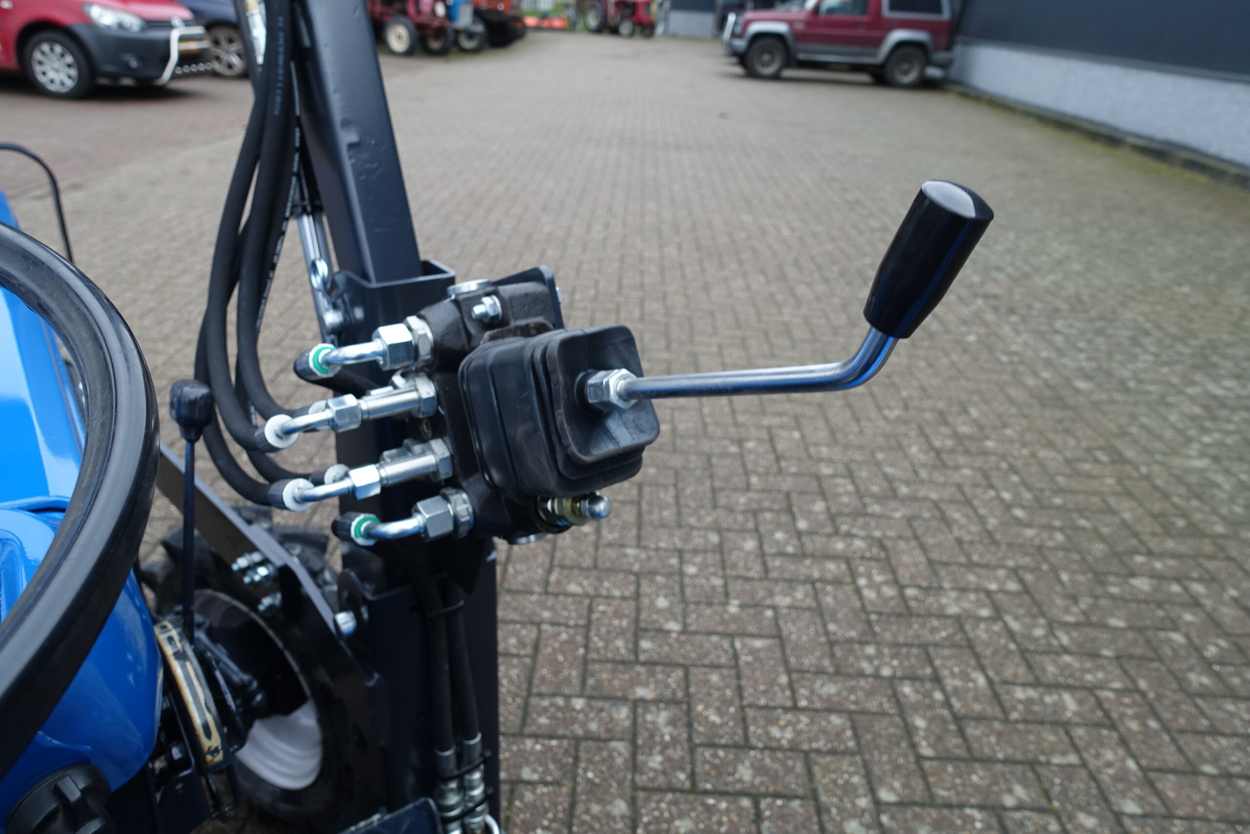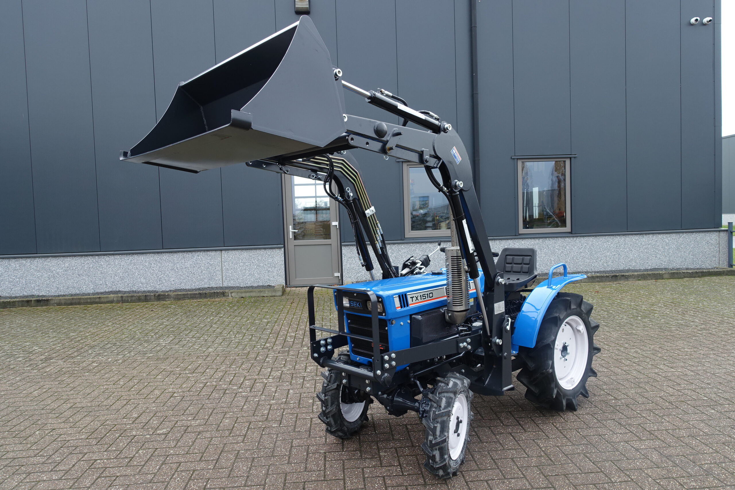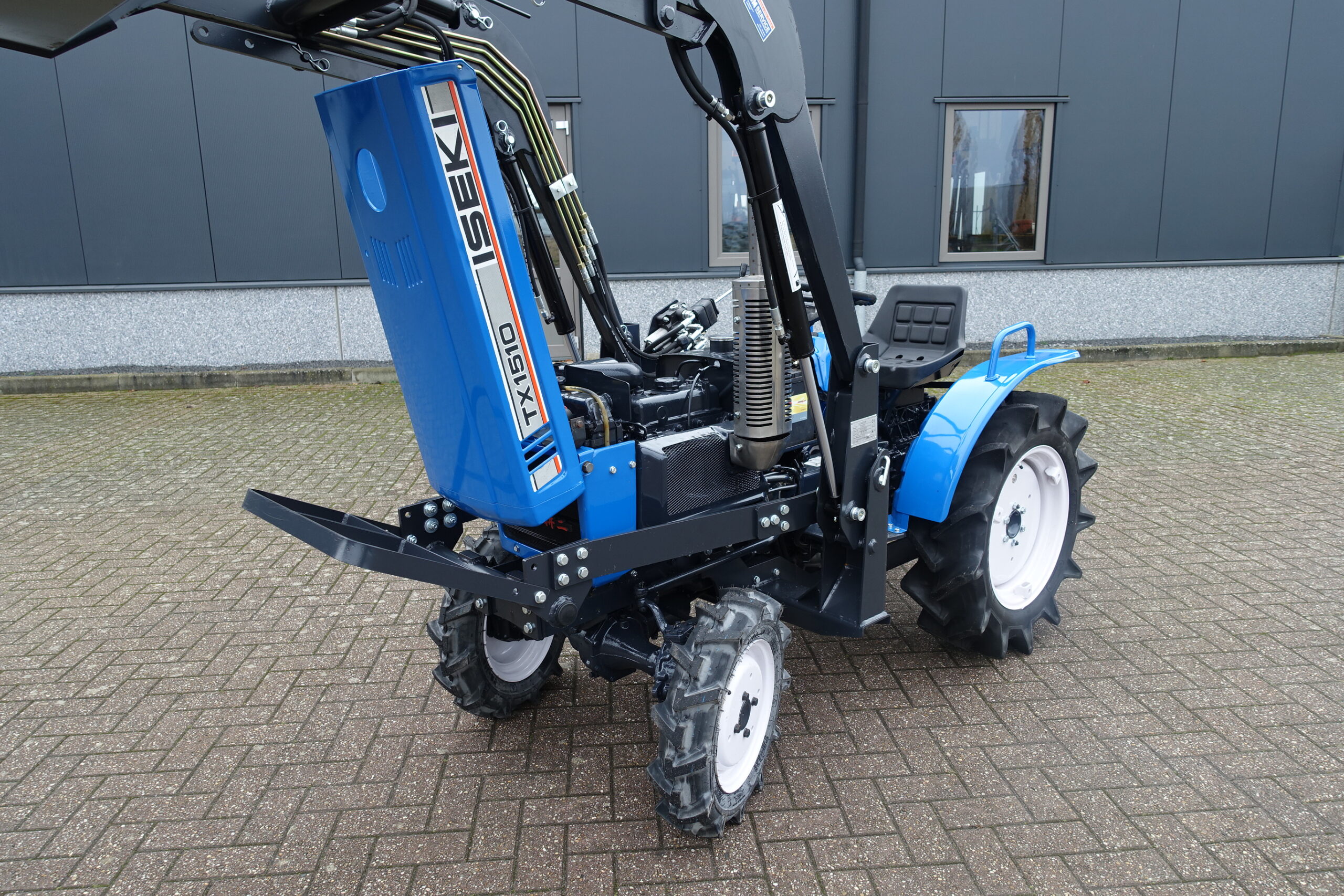 Voorzien van nieuwe dubbelwerkende voorlader. Dubbelwerkend betekend dat de voorlader zowel kan tillen als kan drukken, zodat ook kracht gezet kan worden op de grond om de bak goed vol te kunnen drukken. Voorlader is voorzien van snelwisselsysteem zodat de gehele voorlader eenvoudig afgekoppeld kan worden. Kortom; net, goed, compact, wendbare combinatie.