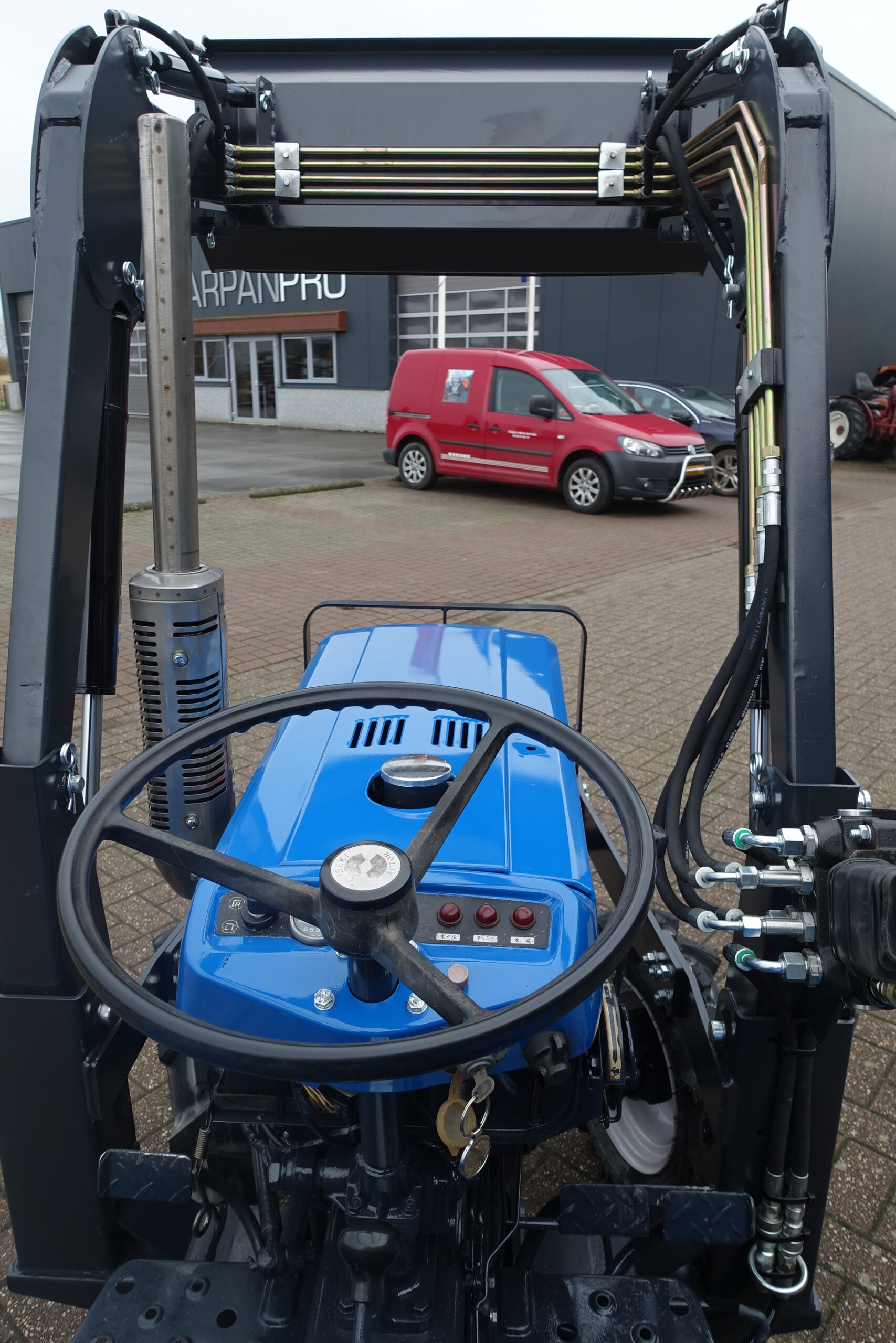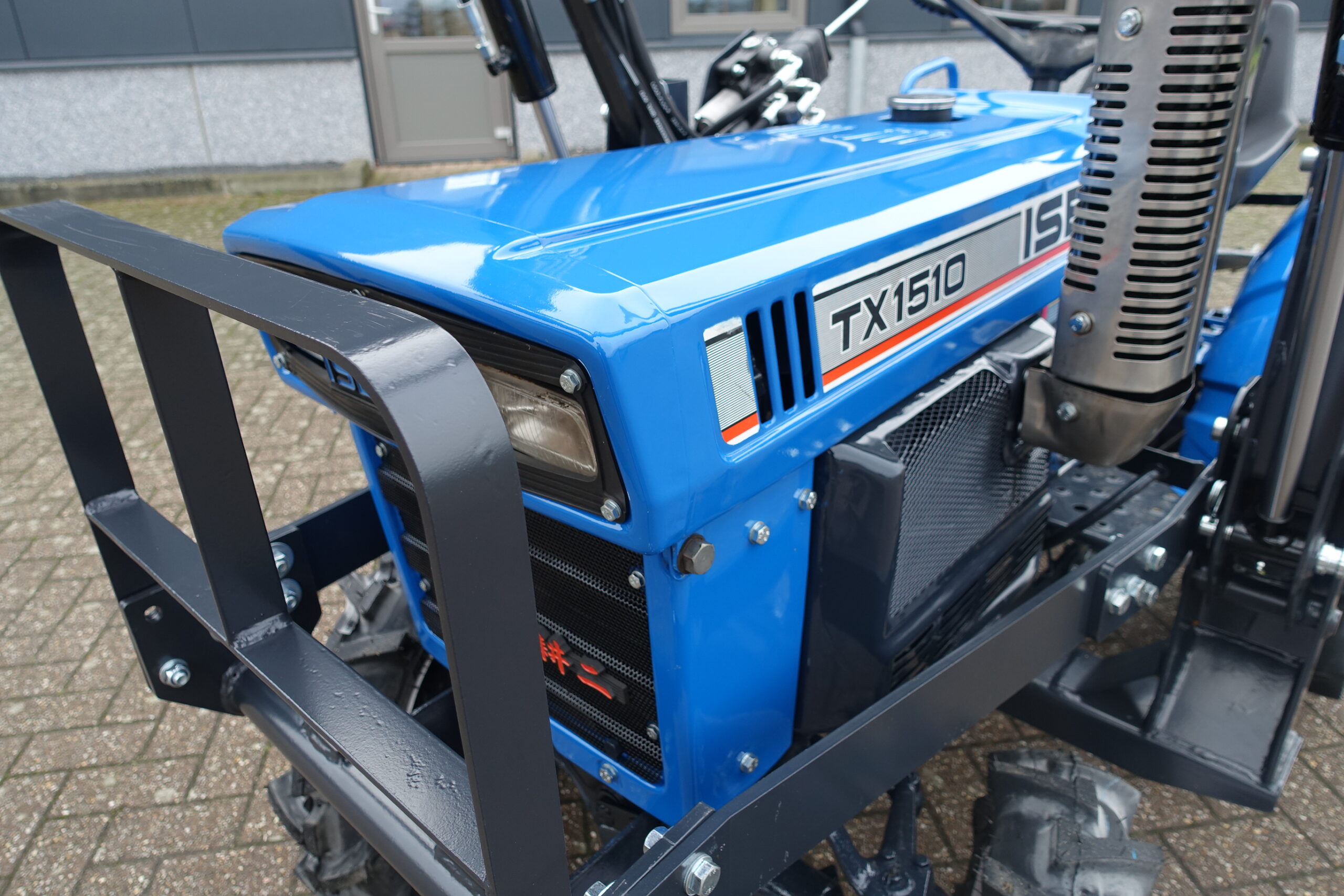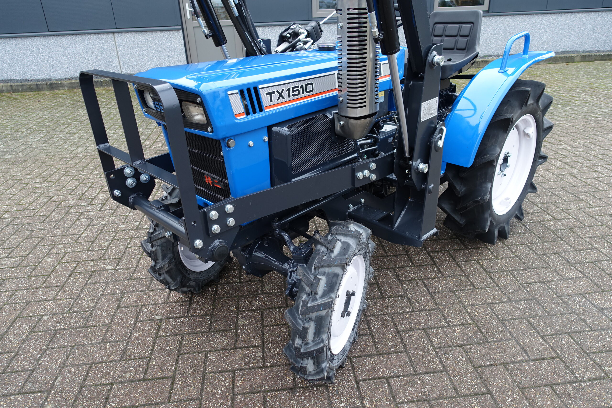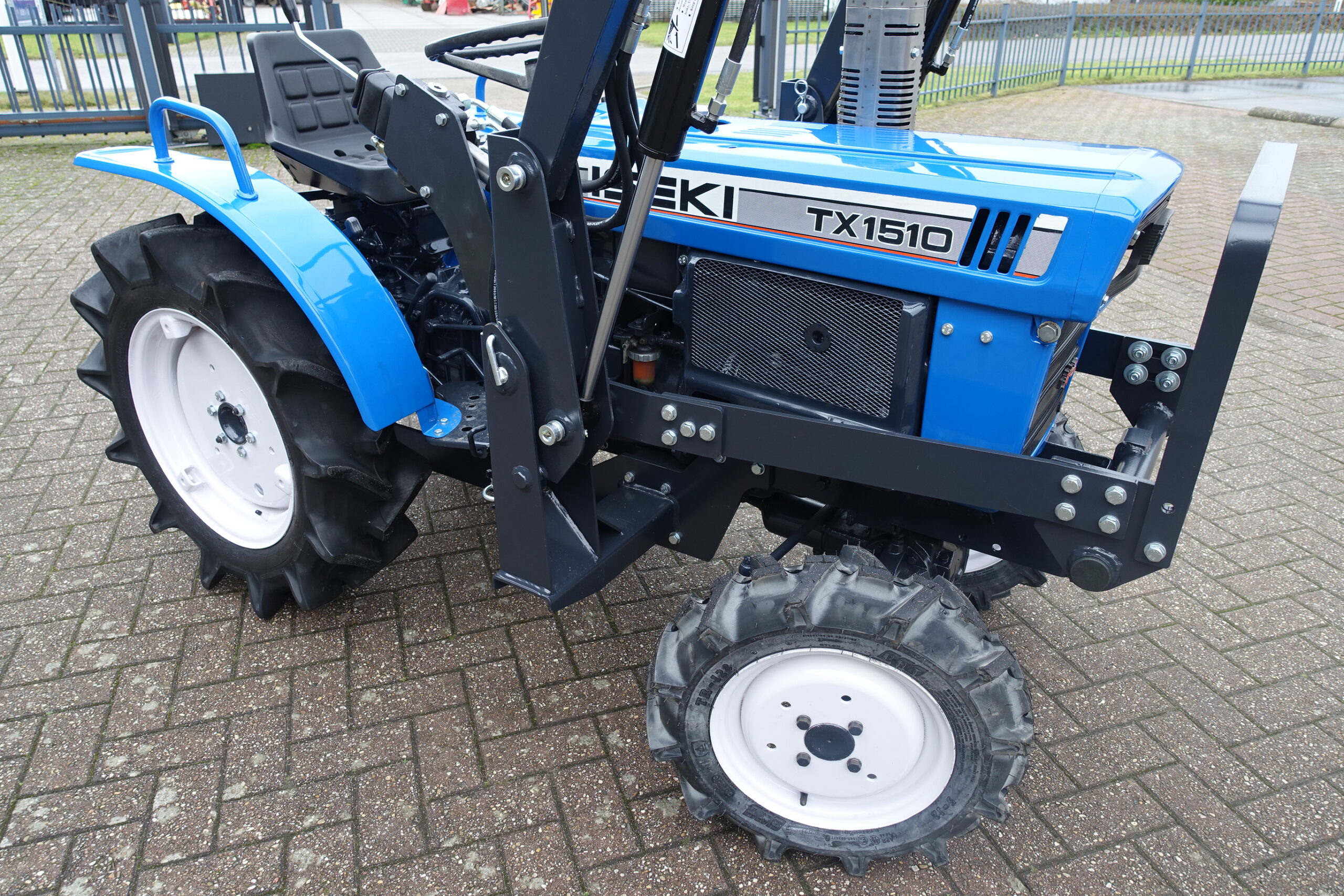 Voorzien van nieuwe dubbelwerkende voorlader. Dubbelwerkend betekend dat de voorlader zowel kan tillen als kan drukken, zodat ook kracht gezet kan worden op de grond om de bak goed vol te kunnen drukken. Voorlader is voorzien van snelwisselsysteem zodat de gehele voorlader eenvoudig afgekoppeld kan worden. Kortom; net, goed, compact, wendbare combinatie.