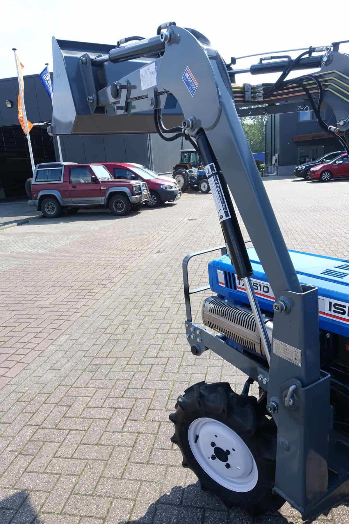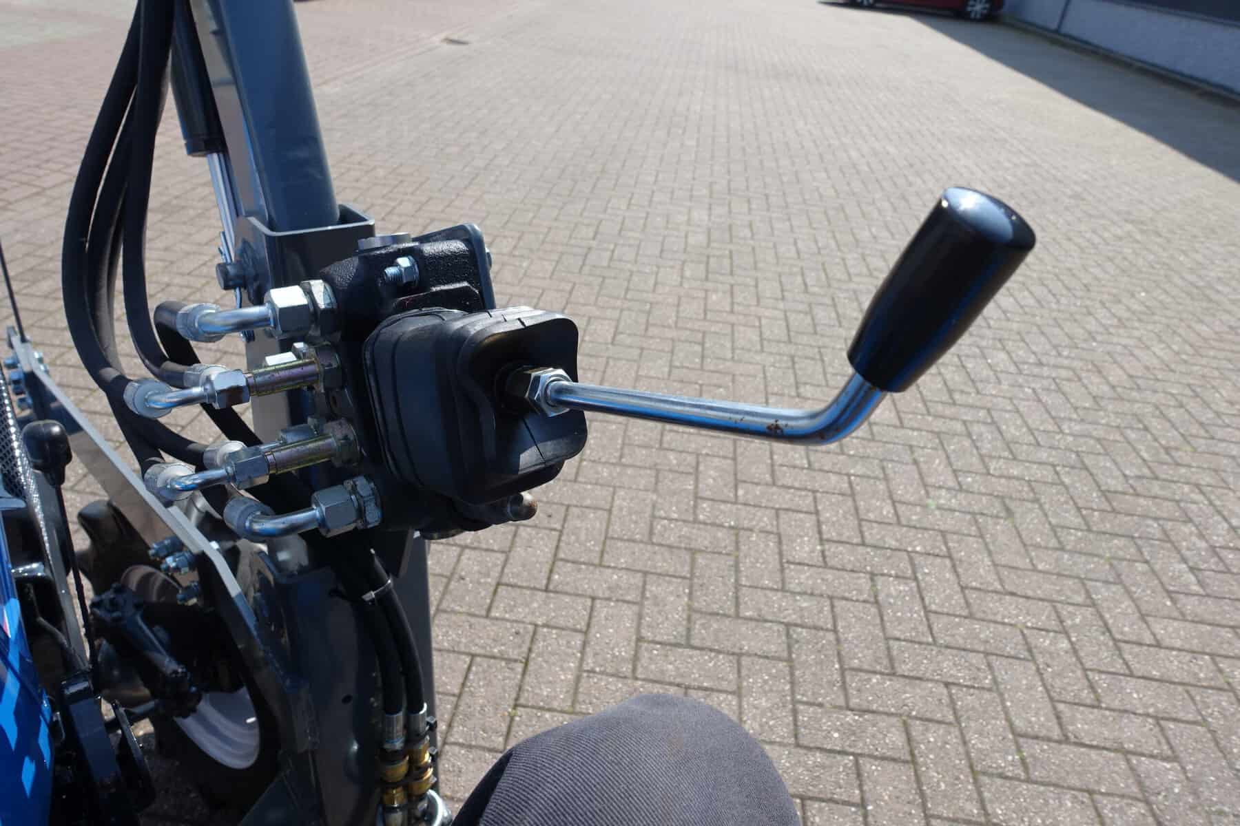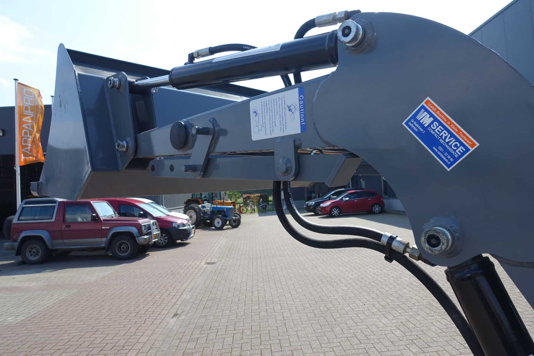 Voorzien van nieuwe dubbelwerkende voorlader. Dubbelwerkend betekend dat de voorlader zowel kan tillen als kan drukken, zodat ook kracht gezet kan worden op de grond om de bak goed vol te kunnen drukken. Voorlader is voorzien van snelwisselsysteem zodat de gehele voorlader eenvoudig afgekoppeld kan worden. Kortom; net, goed, compact, wendbare combinatie.