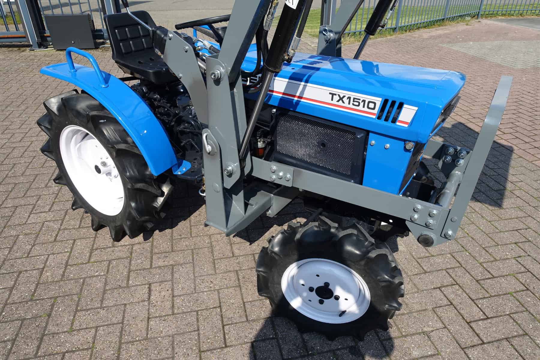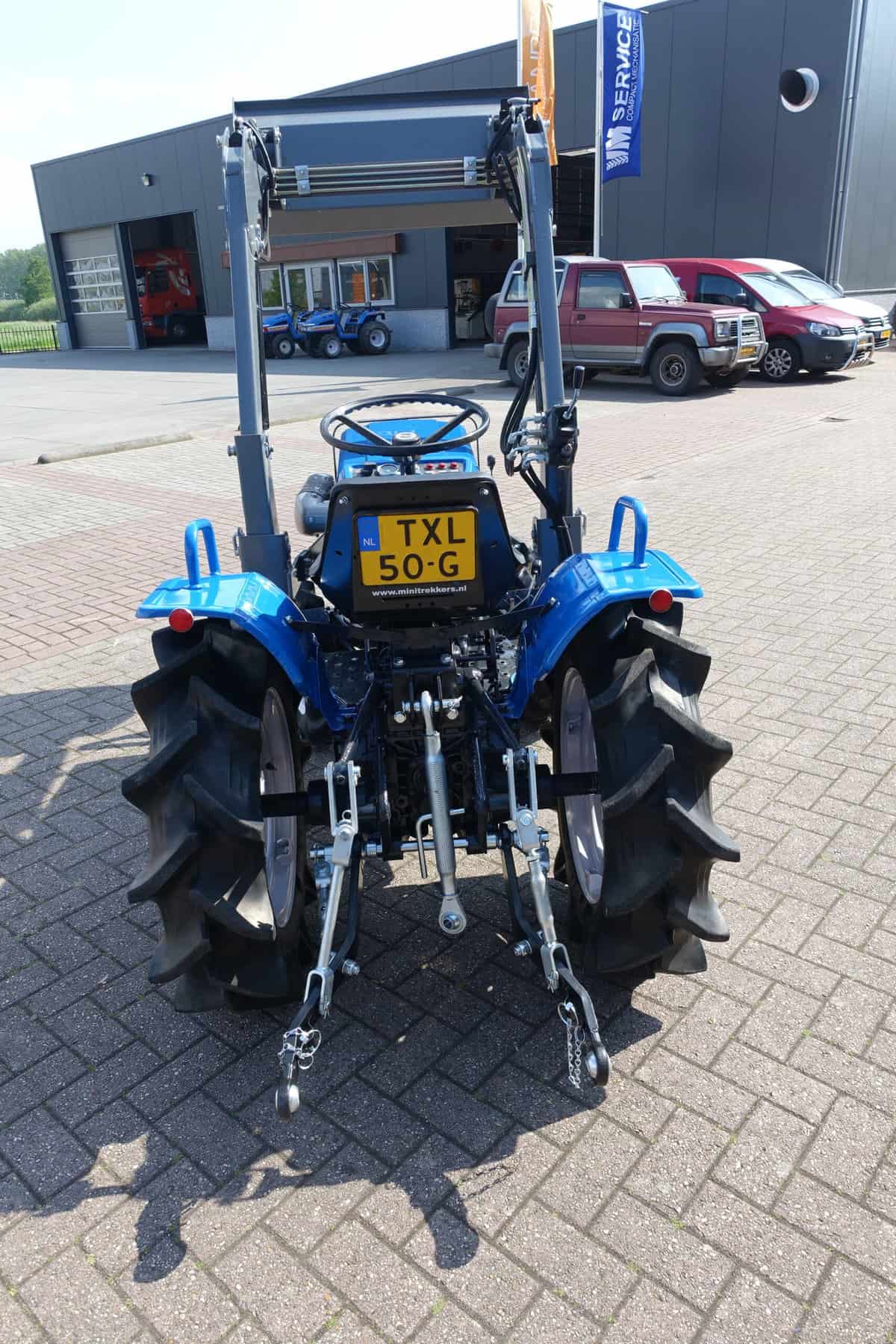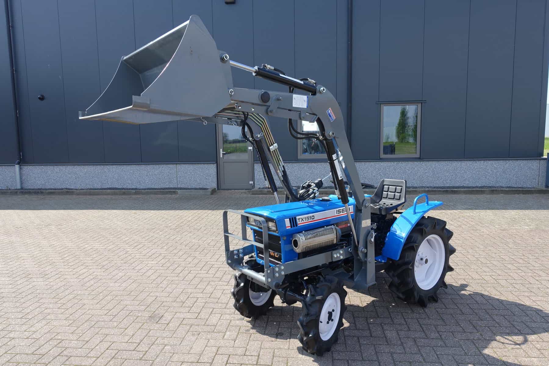 Voorzien van nieuwe dubbelwerkende voorlader. Dubbelwerkend betekend dat de voorlader zowel kan tillen als kan drukken, zodat ook kracht gezet kan worden op de grond om de bak goed vol te kunnen drukken. Voorlader is voorzien van snelwisselsysteem zodat de gehele voorlader eenvoudig afgekoppeld kan worden. Kortom; net, goed, compact, wendbare combinatie.