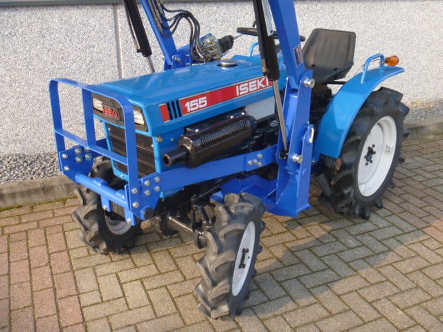 Dit is er weer een; Een uitzonderlijk nette Iseki TX155 4wd compacttrekker. Zowel uiterlijk als technisch in supernette en goede staat. Dat kan ook bijna niet anders met maar 890 draaiuren! Compact, wendbaar, no nosens, Alles zit er op wat je nodig hebt; Sper, hoge en lage gearing, in- en uitschakelbare 4wd, hef, aftakas, enz. 3 cilinder dieselmotor van 18 Pk. Al met al een perfect trekkertje! Klaar voor gebruik. Voorzien van nieuwe dubbelwerkende voorlader. Dubbelwerkend betekend dat de voorlader zowel kan tillen als kan drukken, zodat ook kracht gezet kan worden op de grond om de bak goed vol te kunnen drukken. Voorlader is voorzien van snelwisselsysteem zodat de gehele voorlader eenvoudig afgekoppeld kan worden. Kortom; net, goed, compact, wendbare combinatie. Rondom nagenoeg nieuwe banden, Nieuwe stoel. Voorzien van servicebeurt, klaar voor gebruik. Zie ook de videobeelden.