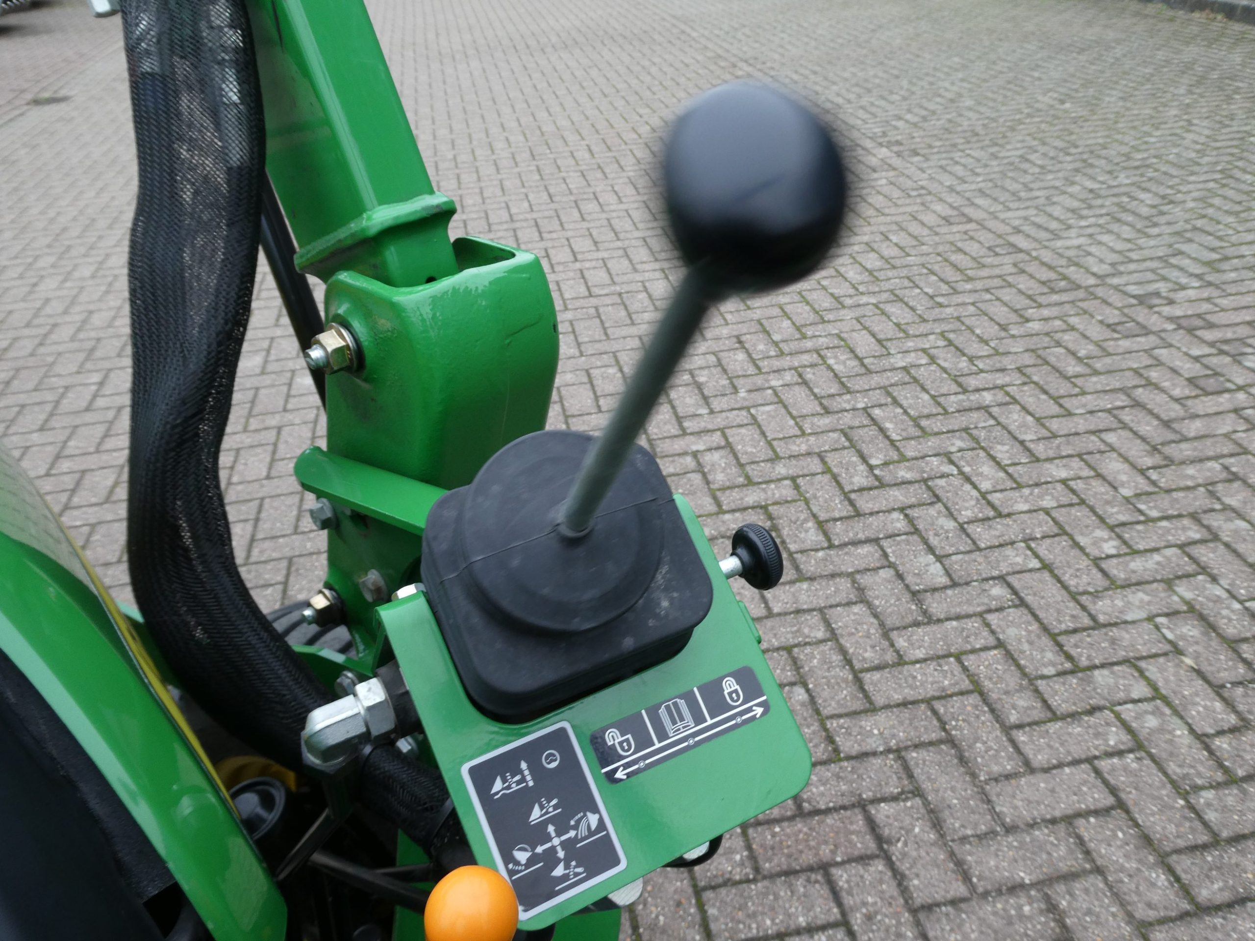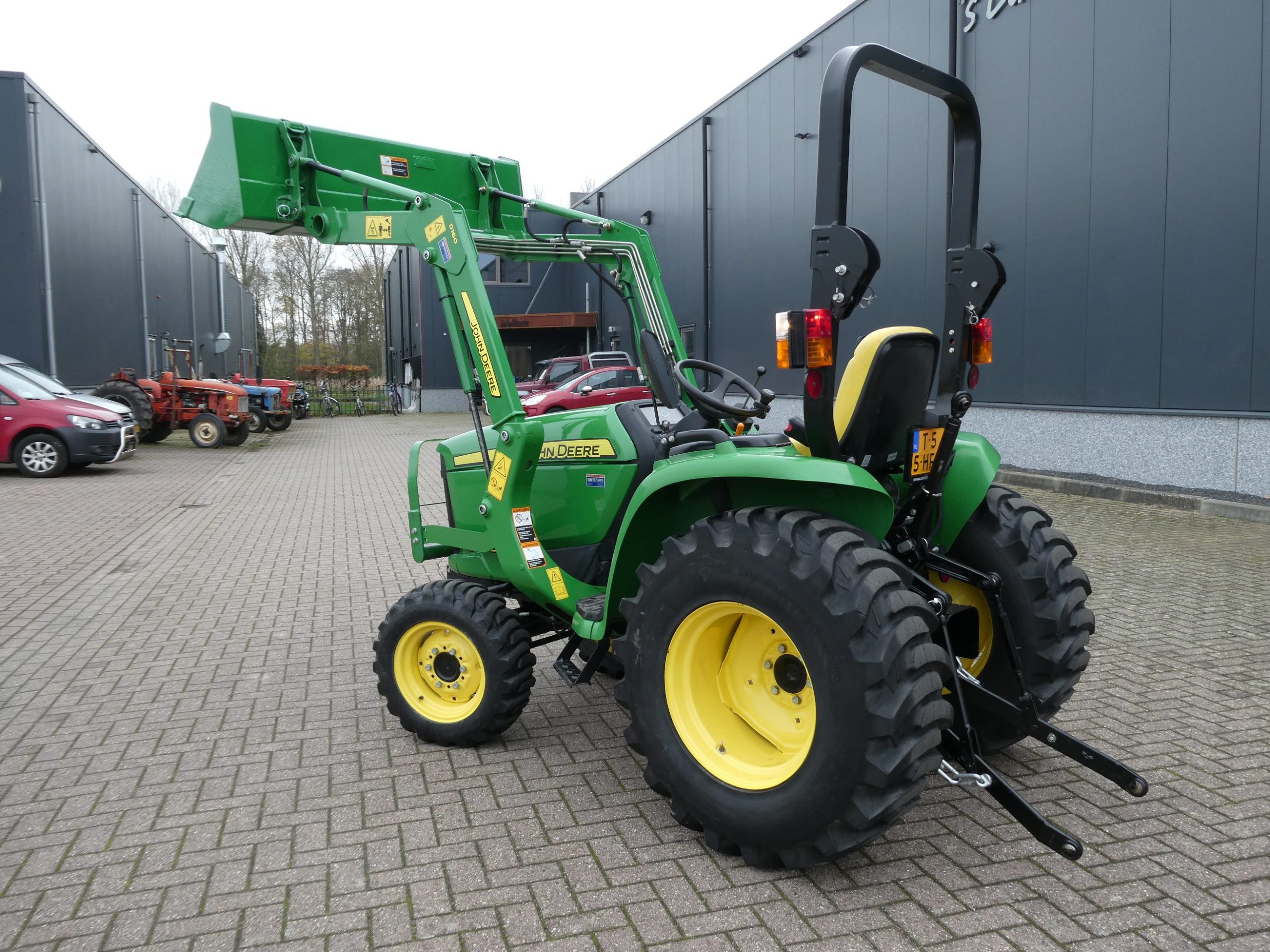 En dan is deze John Deere 3036e ook nog eens uitgerust met een originele John Deere D160 Frontloader met het unieke snelwisselsysteem op de bak!