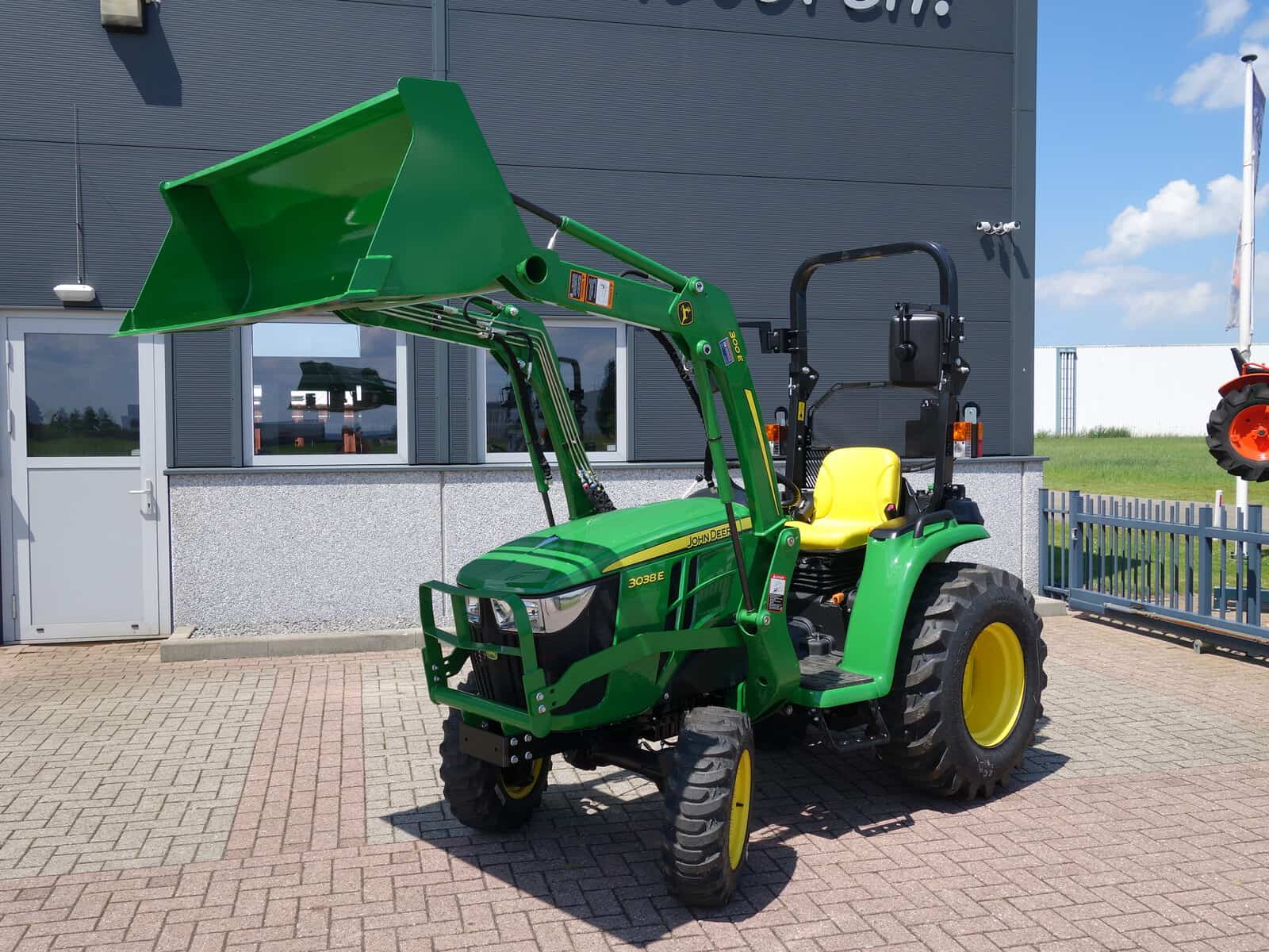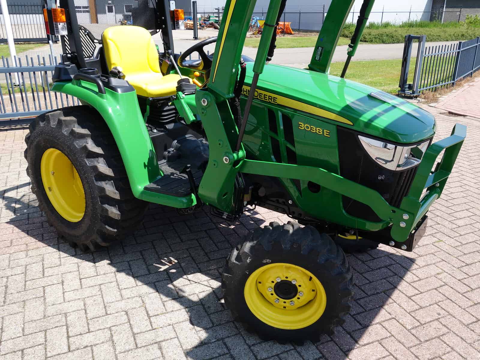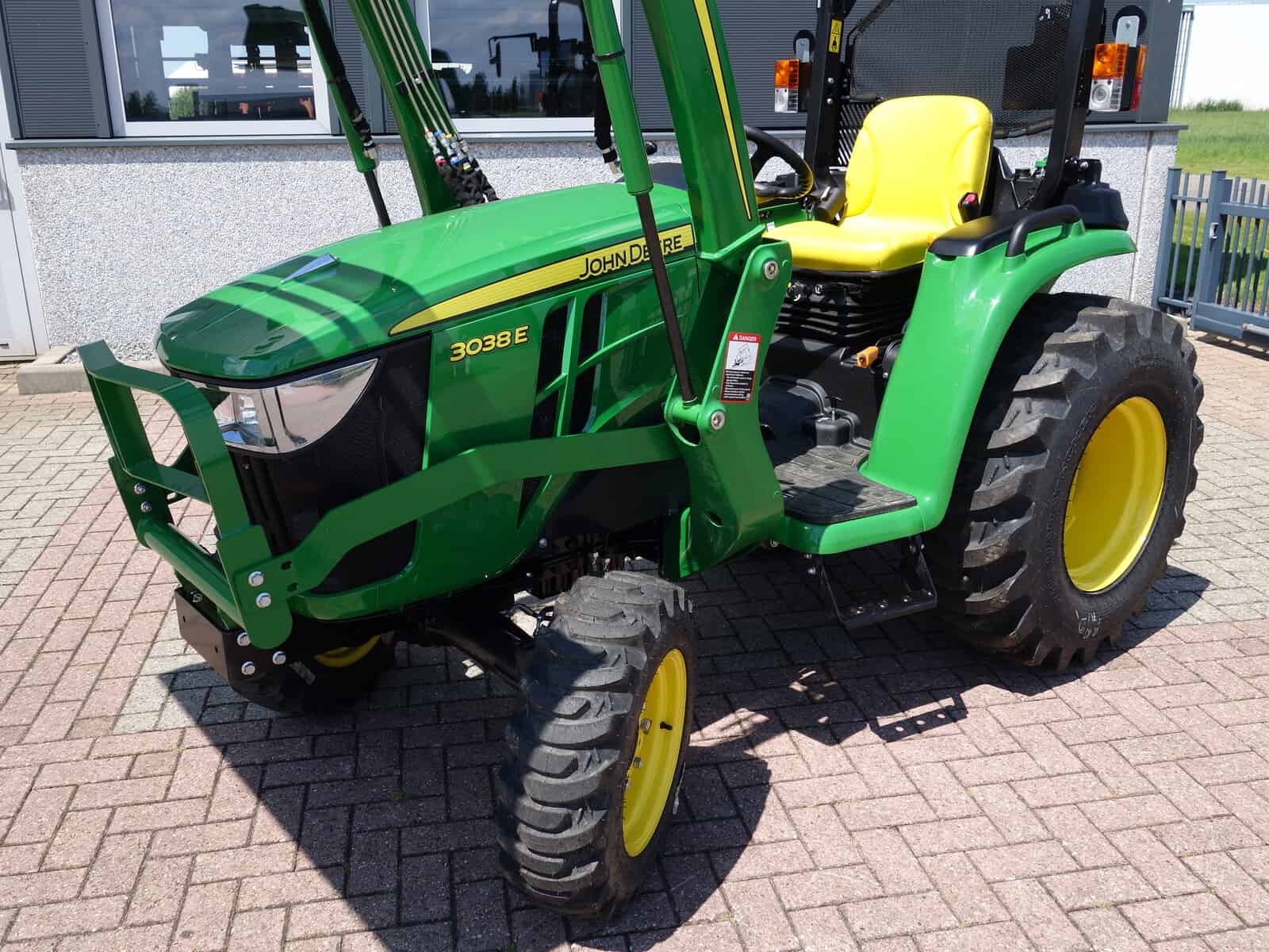 Nu in voorraad; Nieuwe John Deere 3038e HST compleet met voorlader. Banden naar keuze zonder verdere meerprijs, (gazon of industrie) Schitterende combinatie van het topmerk John Deere! Met een motorvermogen van ruim 38 Pk voldoende kracht in huis om alle voorkomende tuin- en parkwerkzaamheden uit te voeren. Gecombineerd met de HST (automaat) transmissie een zeer wendbare en aangenaam werkende trekker. Hoge en Lage gearing voor altijd de optimale rijsnelheid. In en uitschakelbare 4wd, Stuurbekrachtiging, Veiligheidsbeugel, Complete wegverlichting, Ondertrekhaak, Topstang.