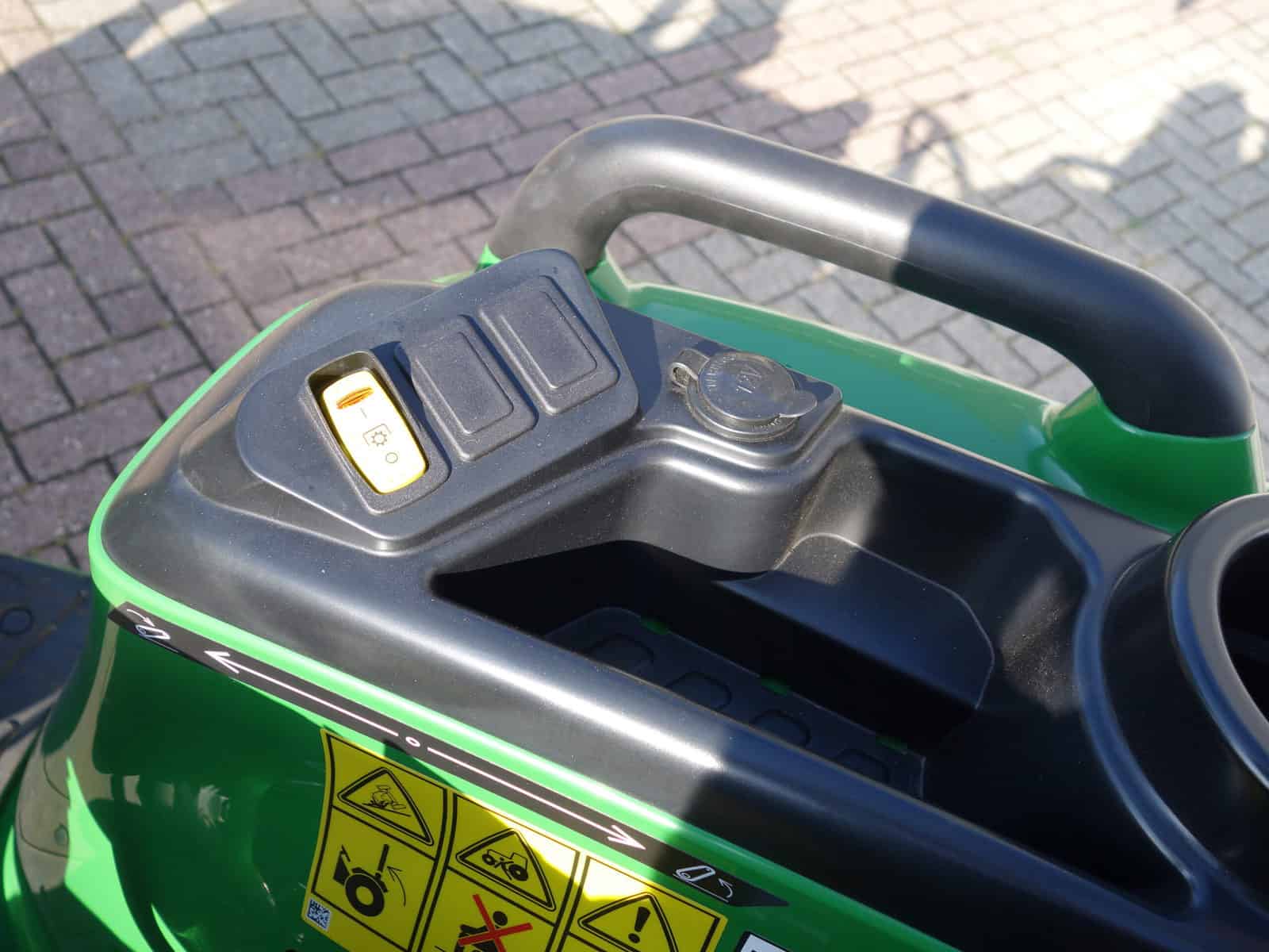 Schitterende combinatie van het topmerk John Deere! Met een motorvermogen van ruim 38 Pk voldoende kracht in huis om alle voorkomende tuin- en parkwerkzaamheden uit te voeren. Gecombineerd met de HST (automaat) transmissie een zeer wendbare en aangenaam werkende trekker. Hoge en Lage gearing voor altijd de optimale rijsnelheid. In en uitschakelbare 4wd, Stuurbekrachtiging, Veiligheidsbeugel, Complete wegverlichting, Ondertrekhaak, Topstang.