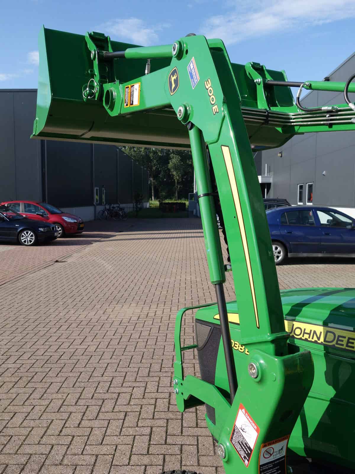 En dan is deze John Deere 3038e ook nog eens uitgerust met een originele John Deere 300E Frontloader met het unieke snelwisselsysteem op de bak! Dubbelwerkend systeem met joystickbediening. Zeer scherpe setprijs, direct leverbaar.