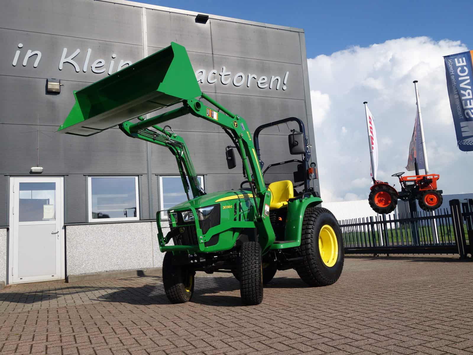 Nu in voorraad; Nieuwe John Deere 3038e HST compleet met voorlader.