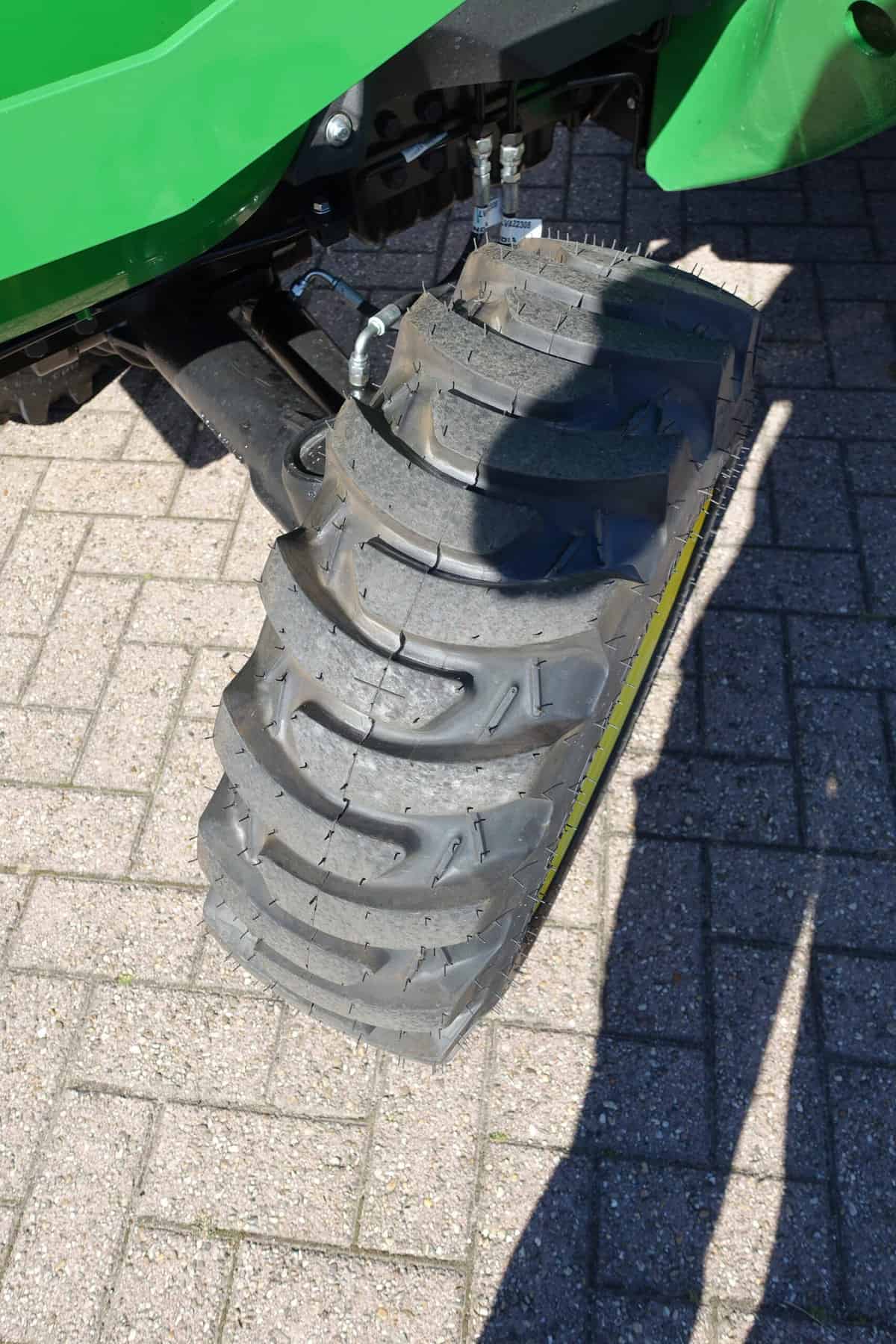 Brede industriebanden, minimale insporing en maximale tractie onder alle omstandigheden.