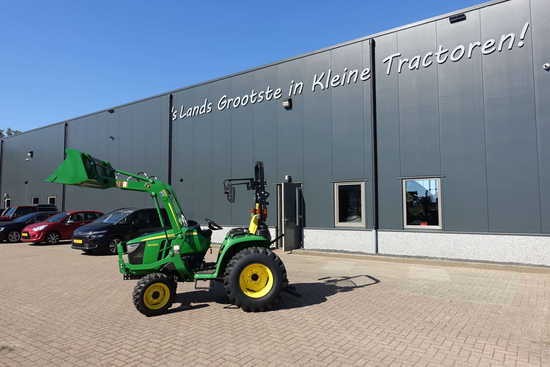 Nu in voorraad; Nieuwe John Deere 3038e HST compleet met voorlader.