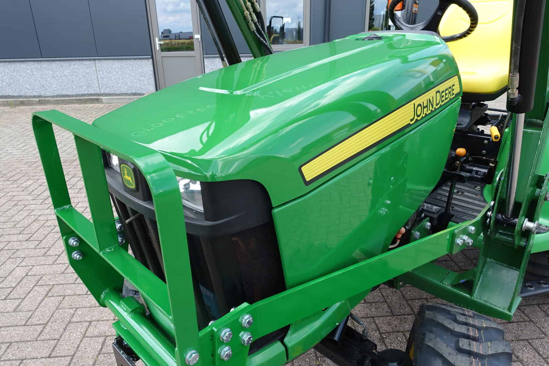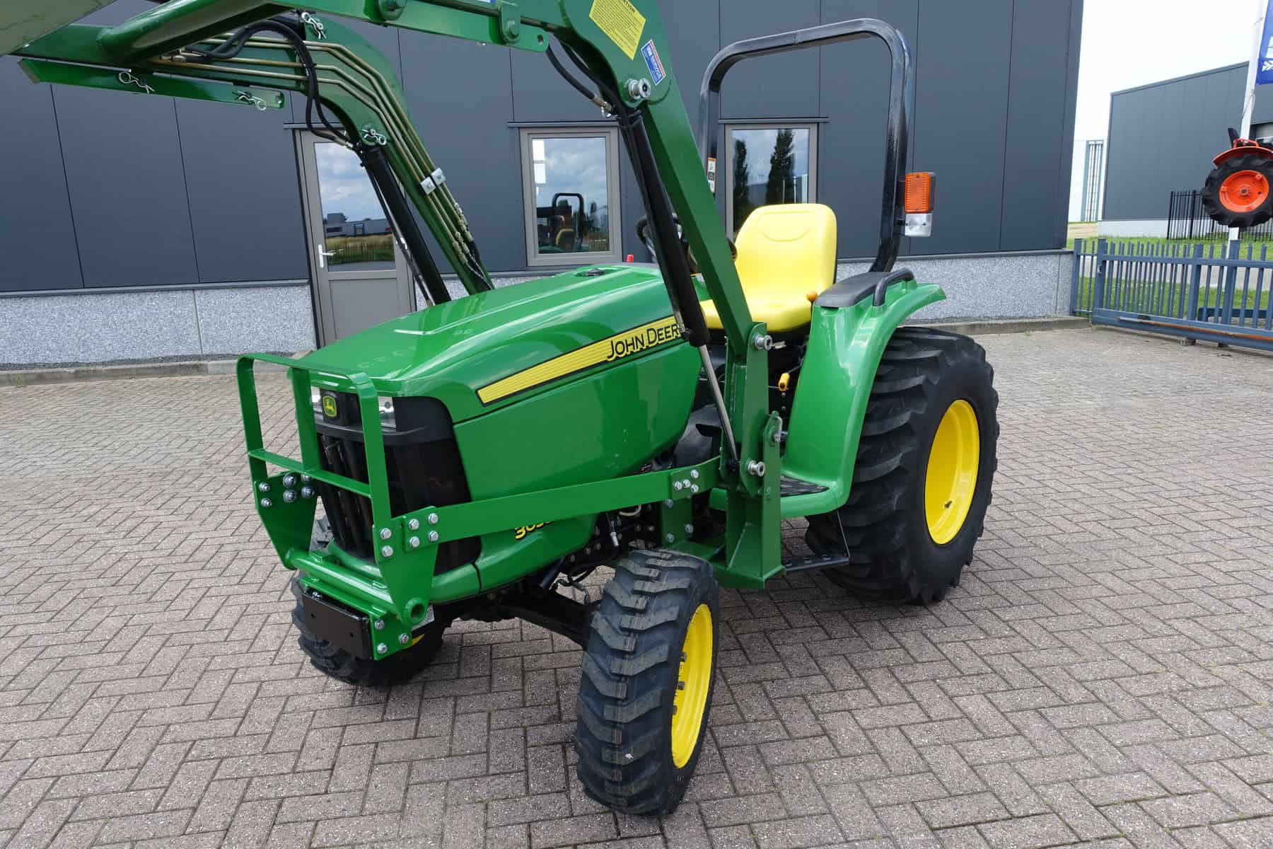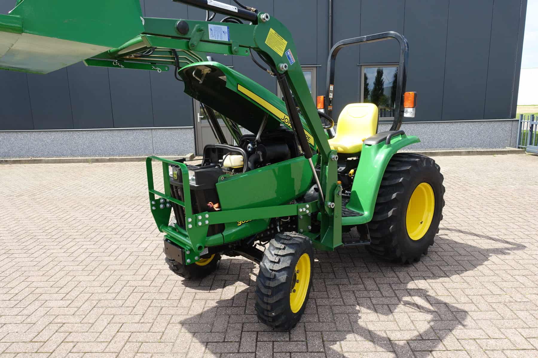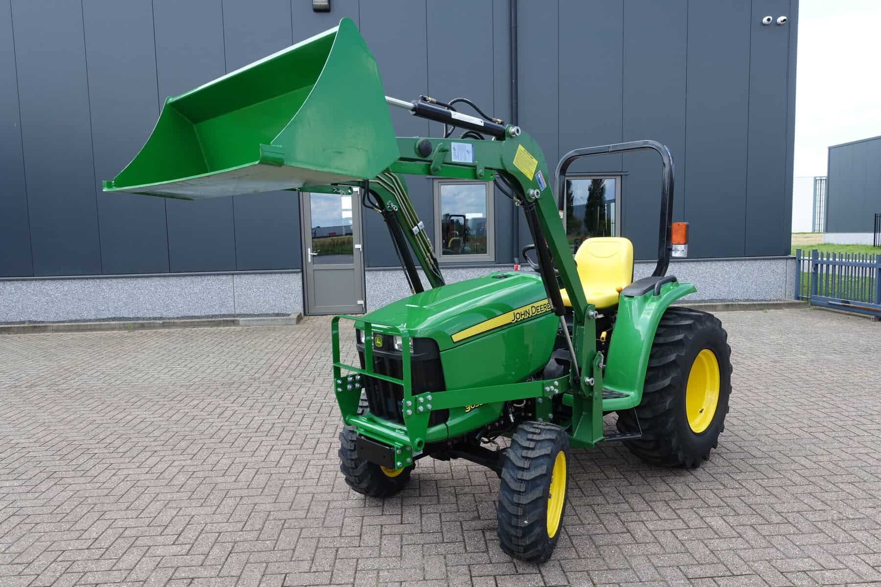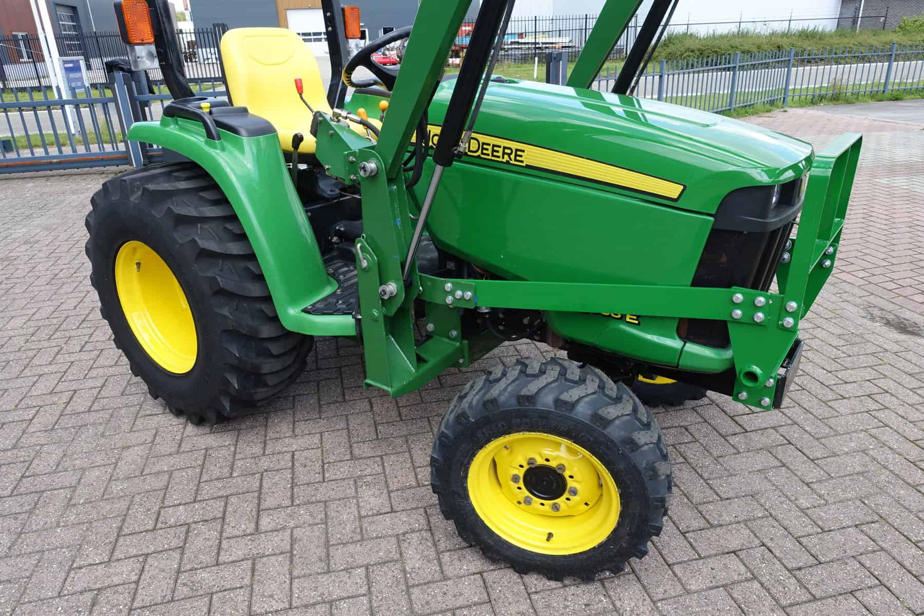 En dan is deze John Deere 3036E ook nog eens uitgerust met een nieuwe luxe afkoppelbare frontloader! Dubbelwerkend systeem met joystickbediening.