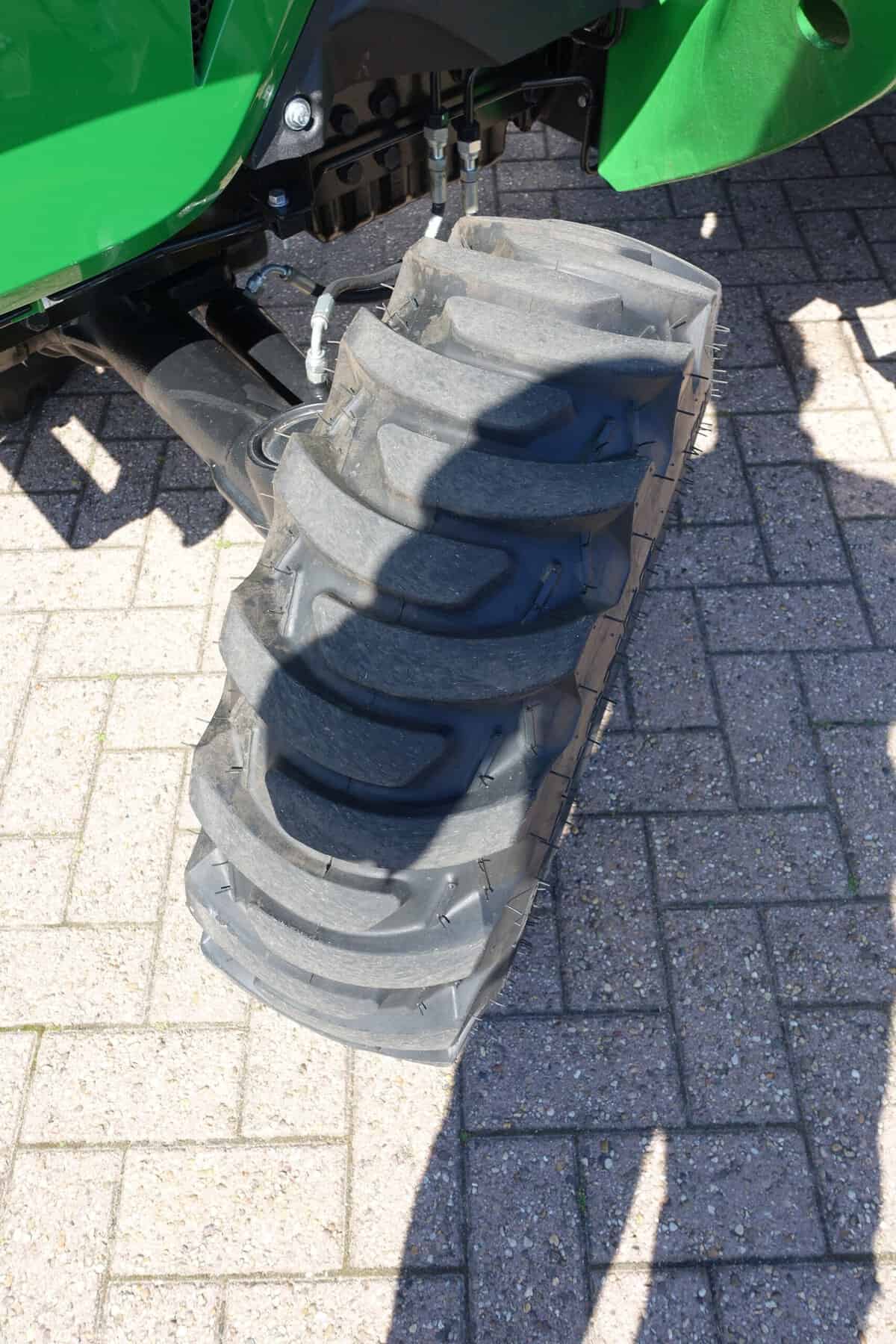 Brede industriebanden, minimale insporing en maximale tractie onder alle omstandigheden.