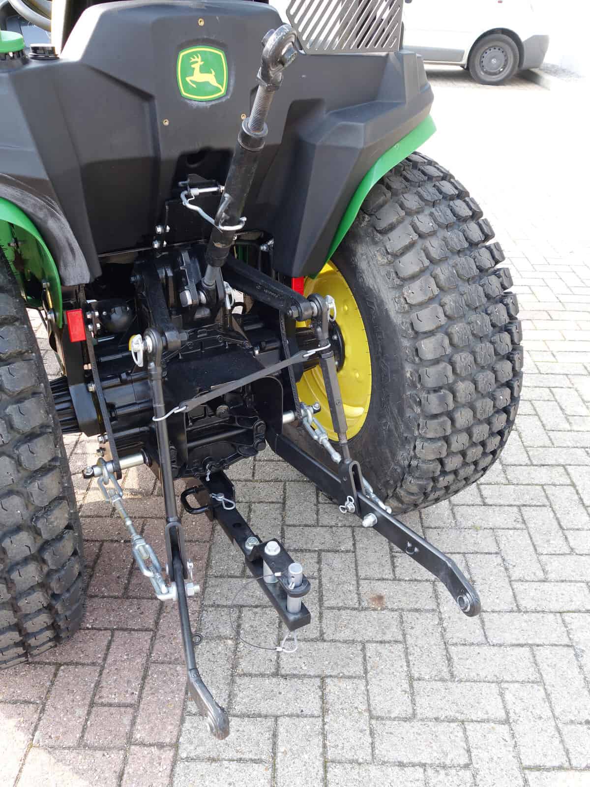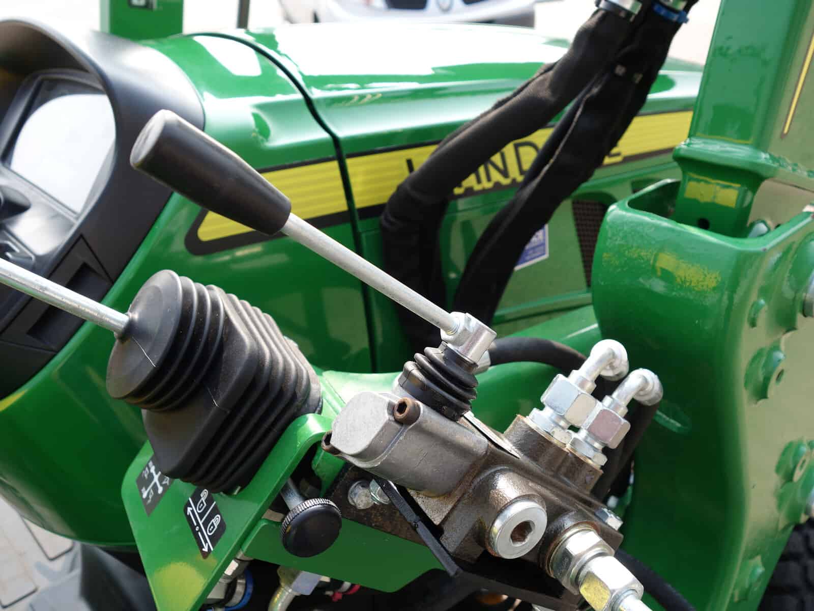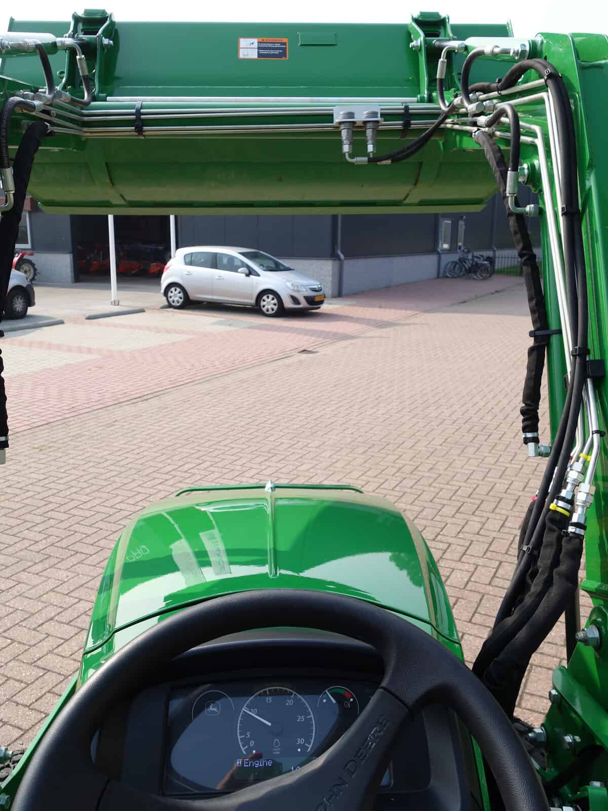 En dan is deze John Deere 3038e ook nog eens uitgerust met een originele John Deere 300E Frontloader met het unieke snelwisselsysteem op de bak! Dubbelwerkend systeem met joystickbediening.
