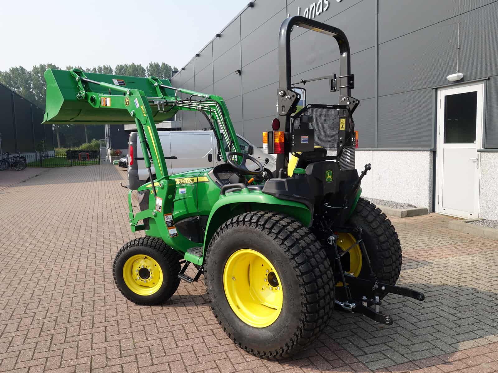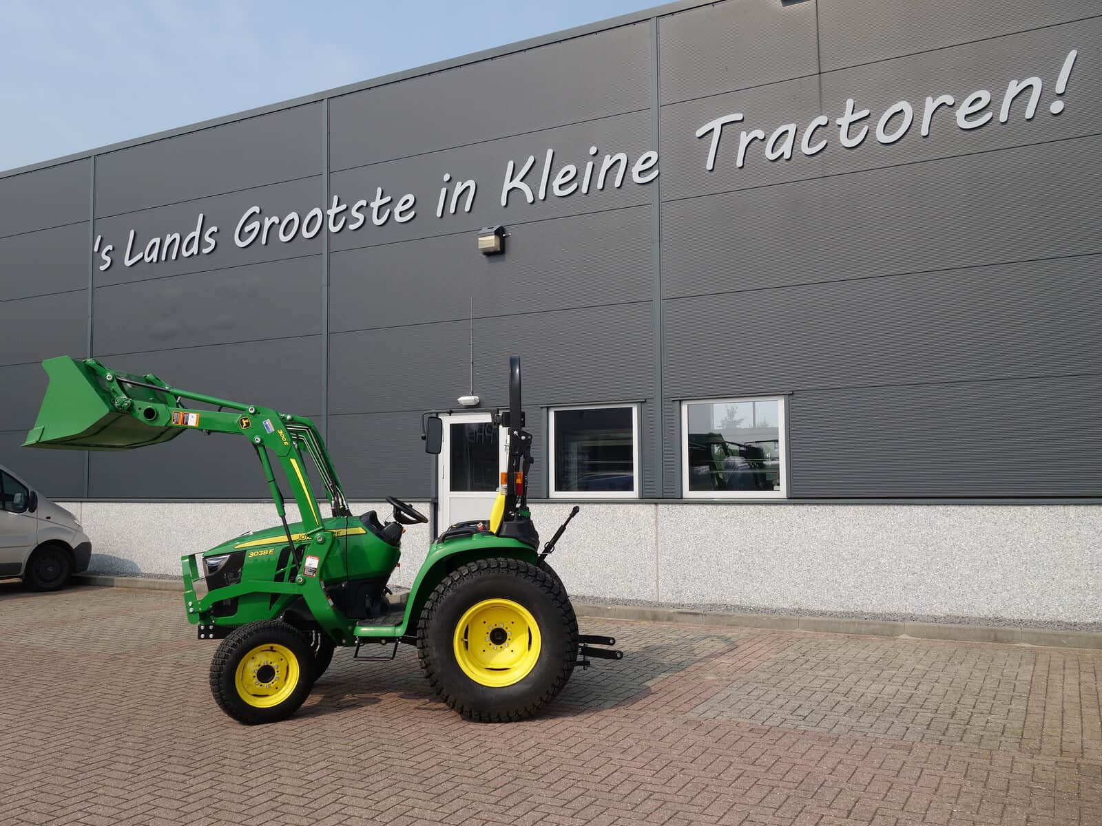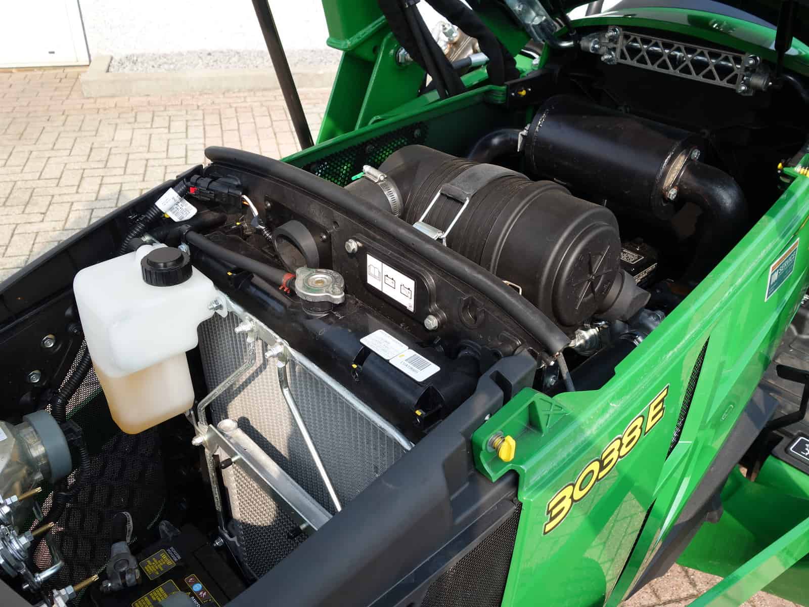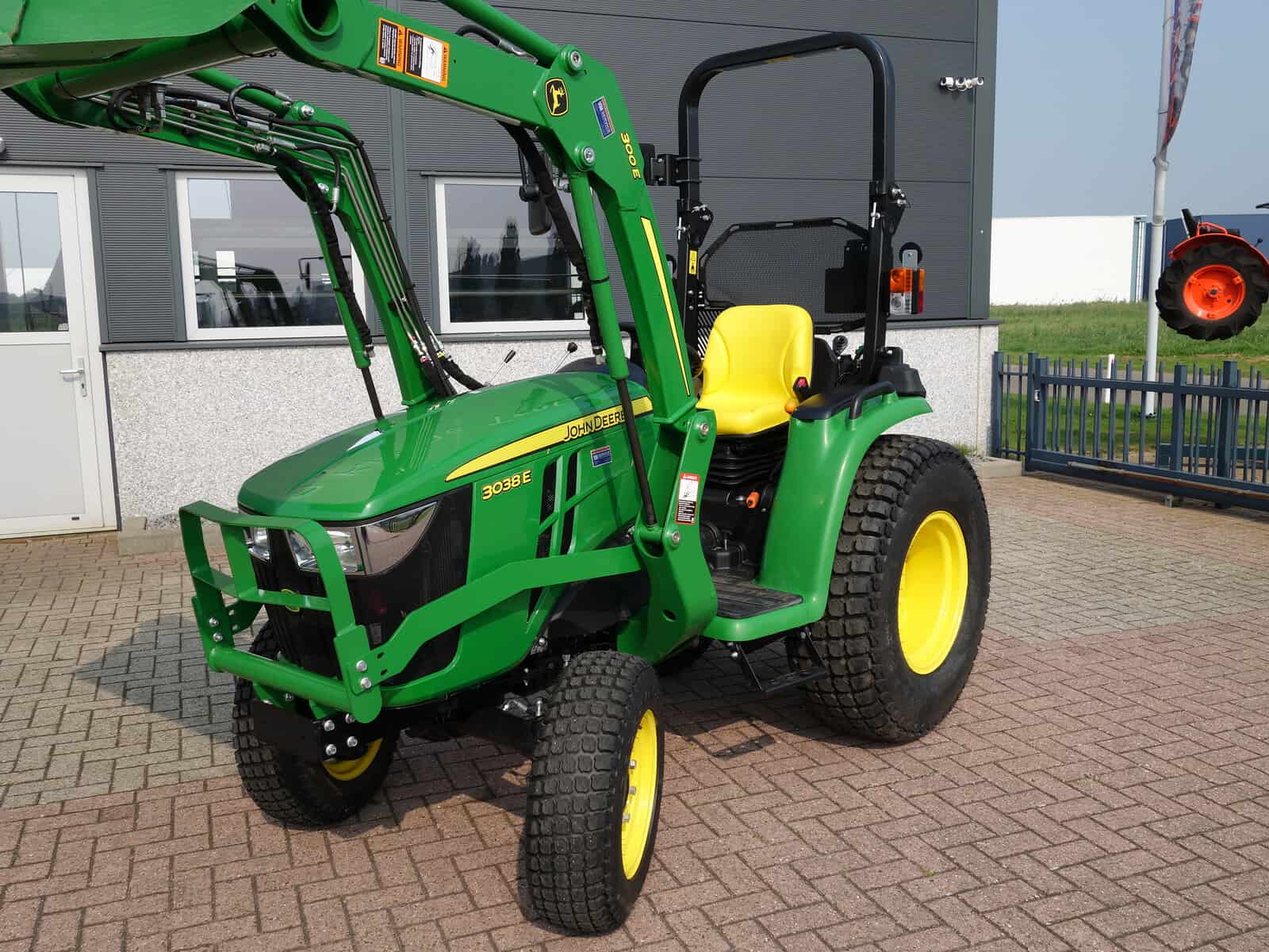 Nu in voorraad; (Nagenoeg) Nieuwe John Deere 3038e HST compleet met voorlader.