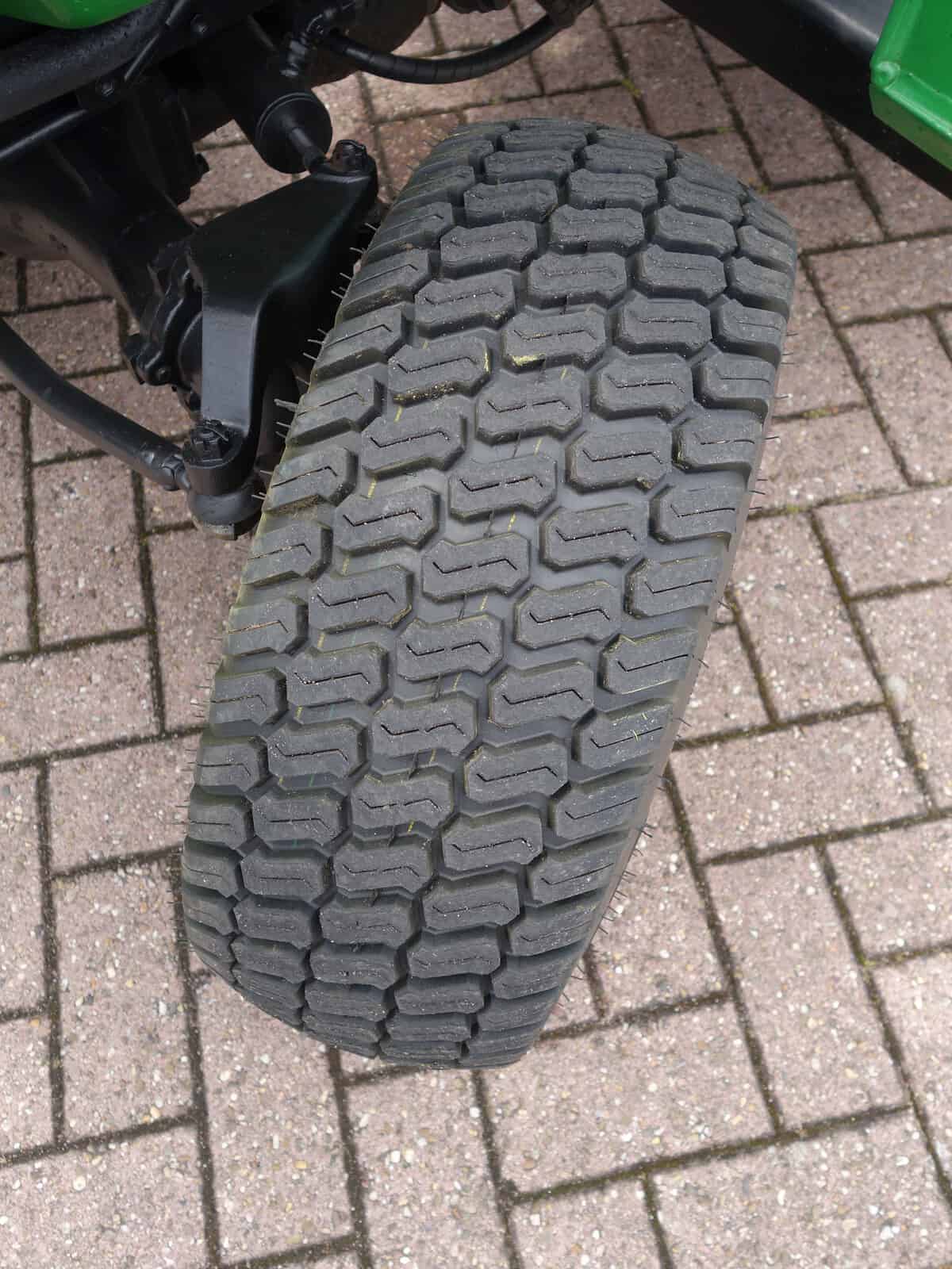 • Nagenoeg nieuwe set brede gazonbanden