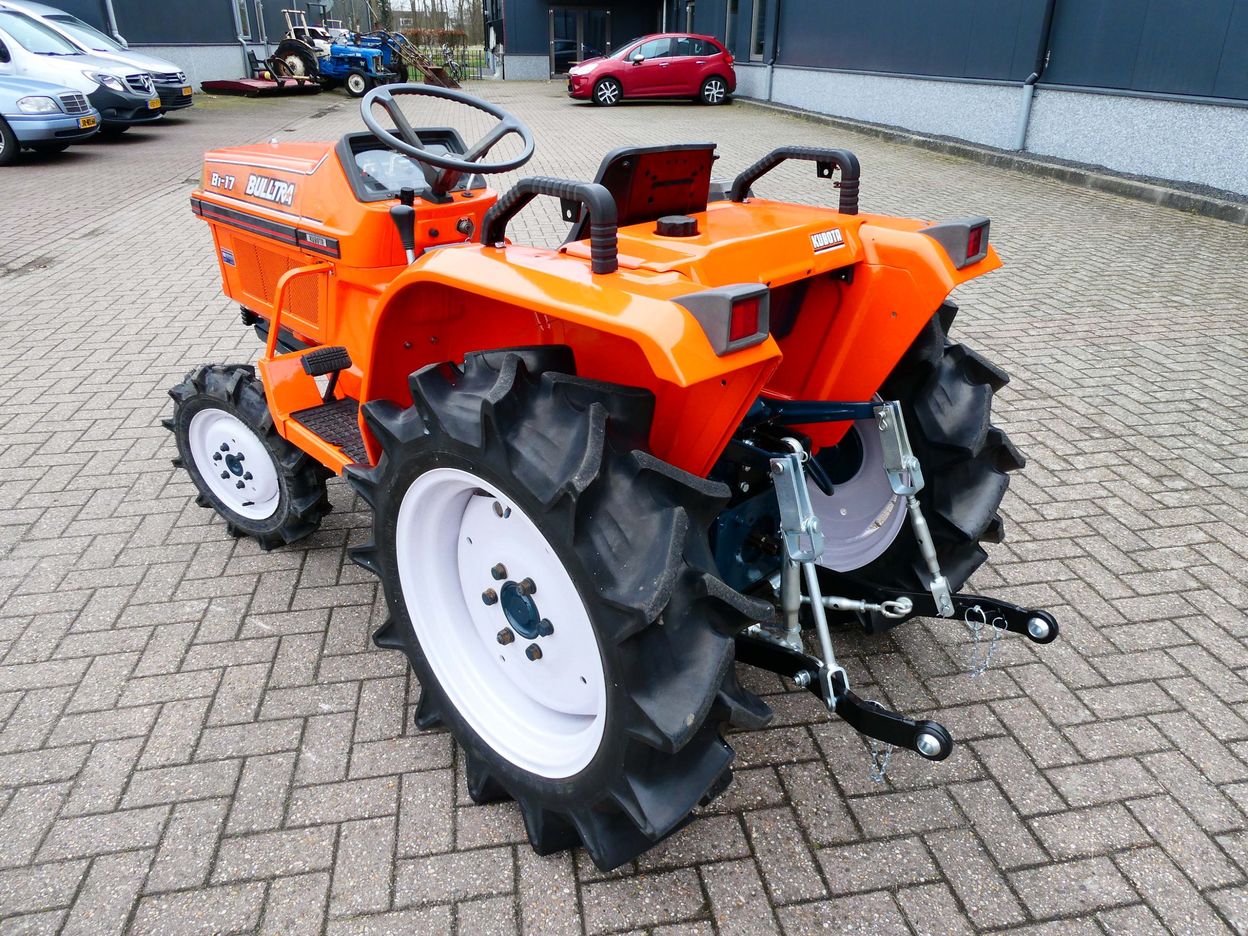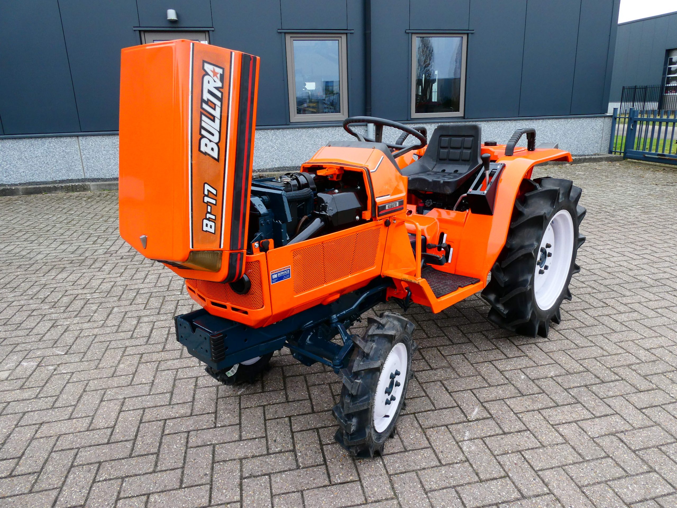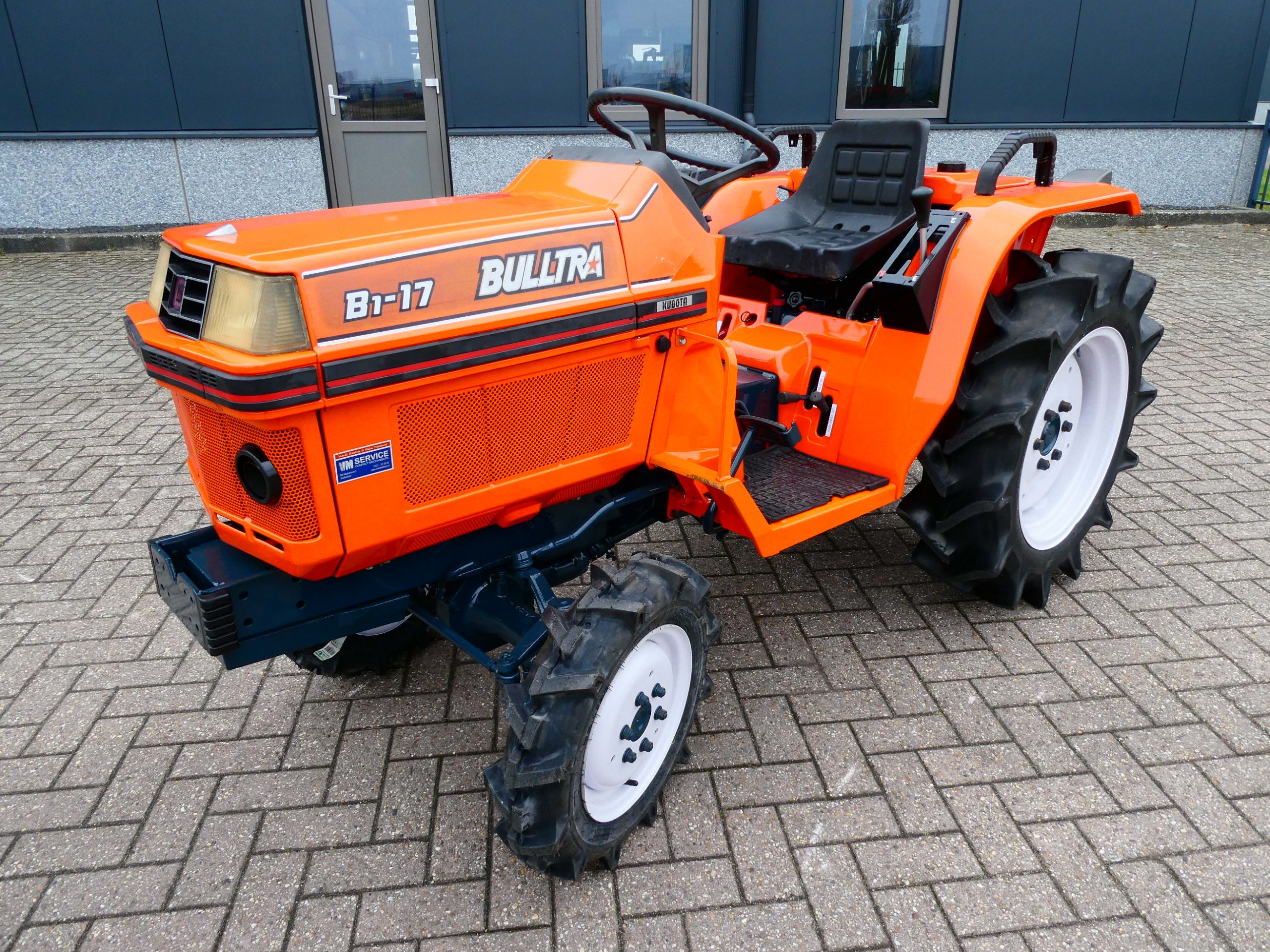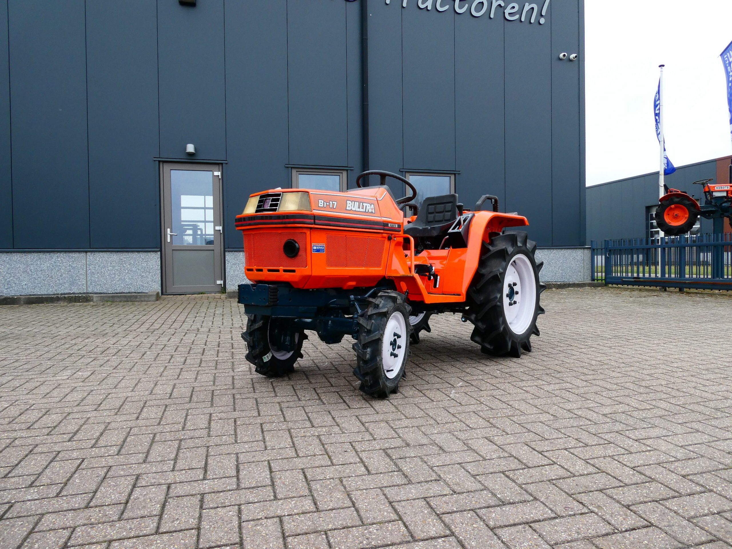 De Bulltra B1-17 4wd van Kubota heeft een aantal grote pluspunten, te weten; Krachtige 21 Pk 3 cilinder dieselmotor, Grote wielen voor een grote tractie en toch maar 115cm smal!! In combinatie met de superkruipversnelling een ideale trekker om te spitten, frezen, planten, etc. Externe hydraulische aansluitingen (dubbelwerkend hydraulisch ventiel met twee aansluitingen), Een hele lijst van zaken welke deze trekker maken tot een allround inzetbare compacttrekker. Degelijke bouw, hef, aftakas aan de achterzijde. Slechts 2028 draaiuren. Voorzien van algehele servicebeurt.