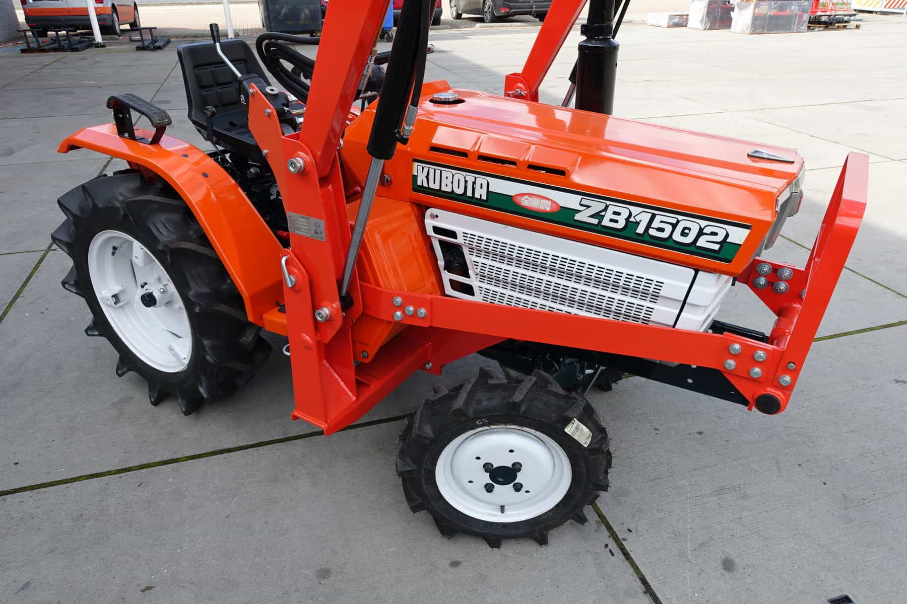 Oktober aanbieding; Kubota B1502 4wd compleet met nieuwe afkoppelbare voorlader. Zeer gangbare Kubota compacttrekker, 3 cilinder diesel van 18 Pk, 4wd, zijschakeling, hef, aftakas, topstang.
