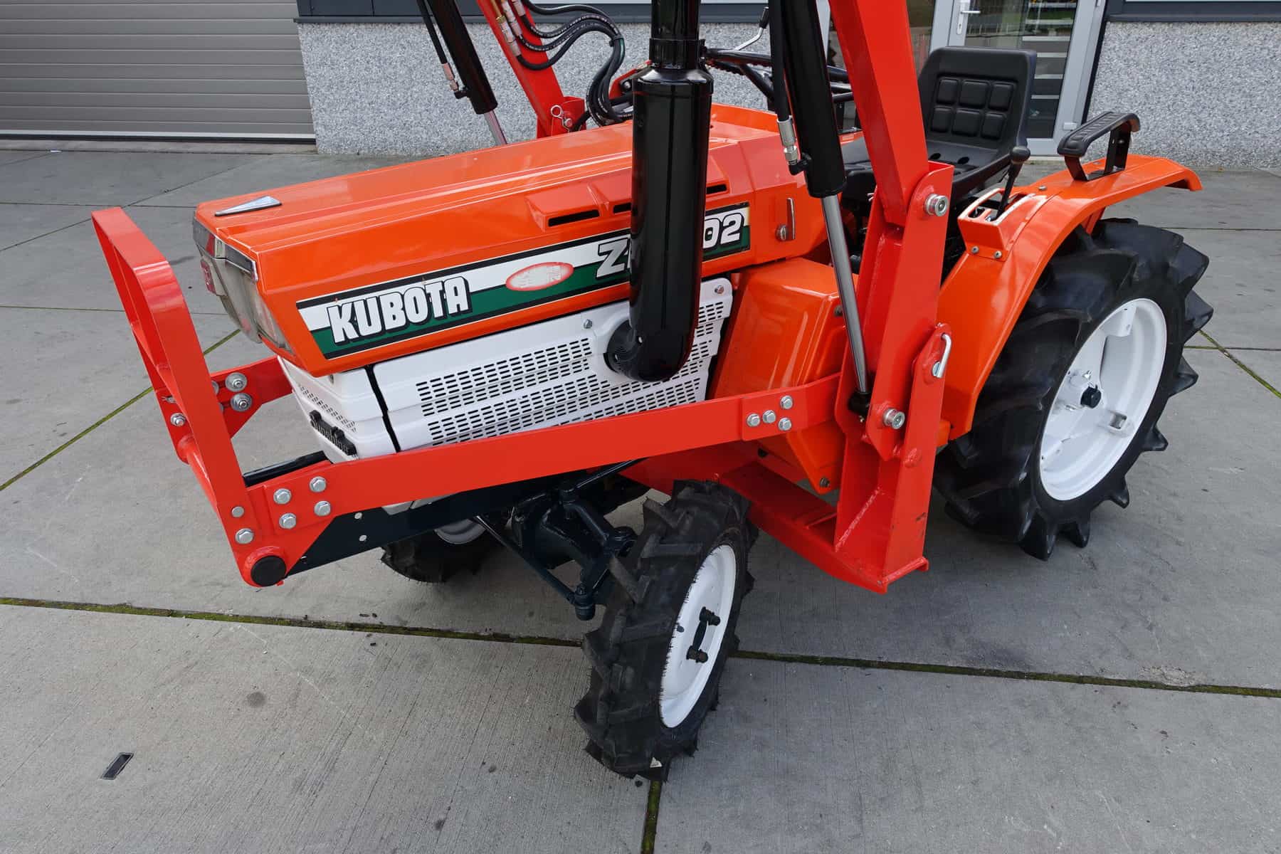 Degelijke combinatie waarbij de voorlader in zijn geheel eenvoudig af- en aangekoppeld kan worden. Dubbelwerkend hydraulisch systeem waardoor de voorlader ook druk uit kan oefenen op de ondergrond zodat de bak goed vol geschept kan worden.