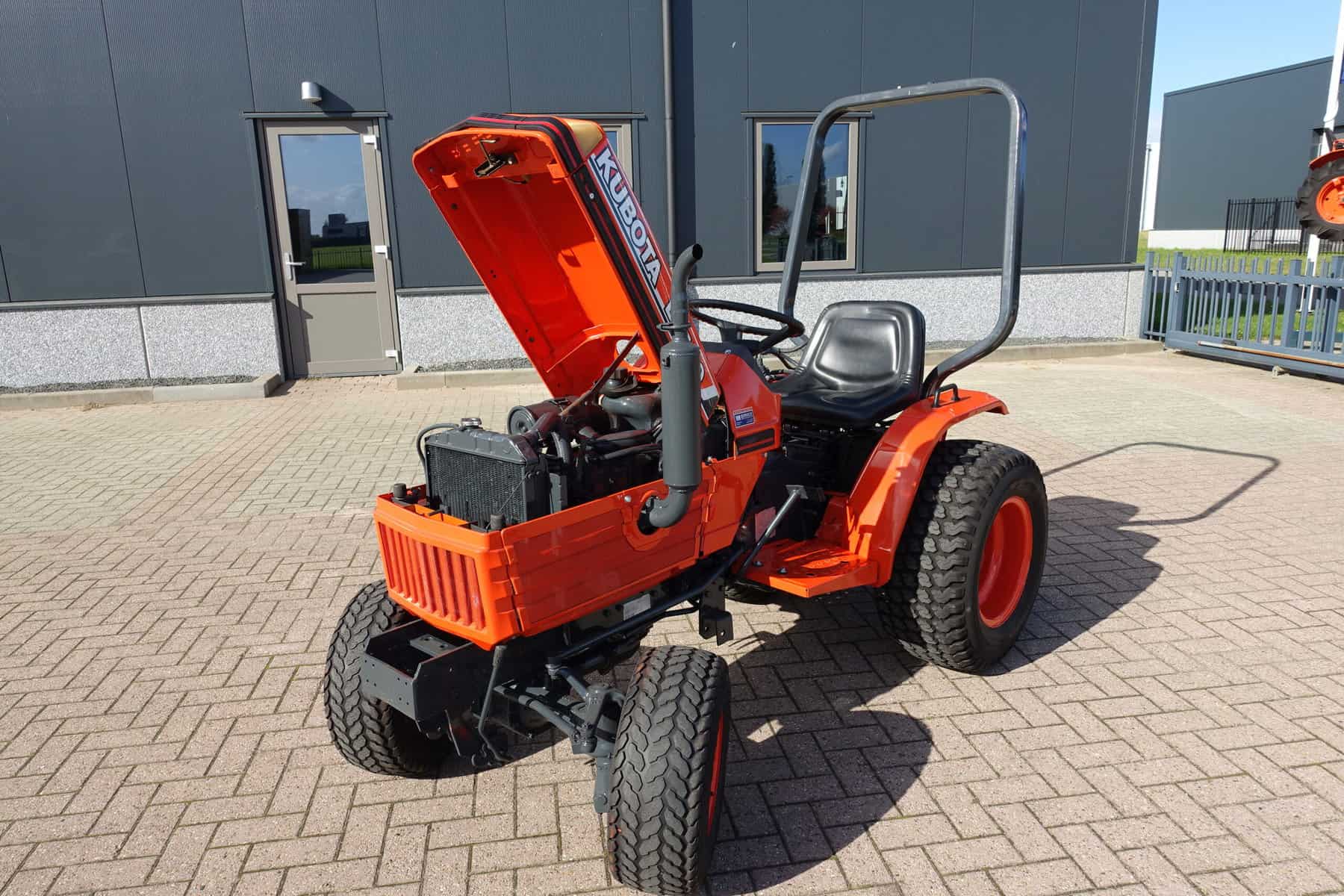 Trekker behoeft verder geen uitleg, gewoon de foto’s en video eens goed bekijken en zo tot de conclusie komen dat we hier praten over een zeer nette Kubota B2150 4wd met maar 0750 originele draaiuren. De 17 Pk 3 cilinder dieselmotor loopt supermooi en rustig. Supercomplete trekker met o.a. Ruime opstap, Hef, Aftakas, Beugel. Brede gazonbanden.
